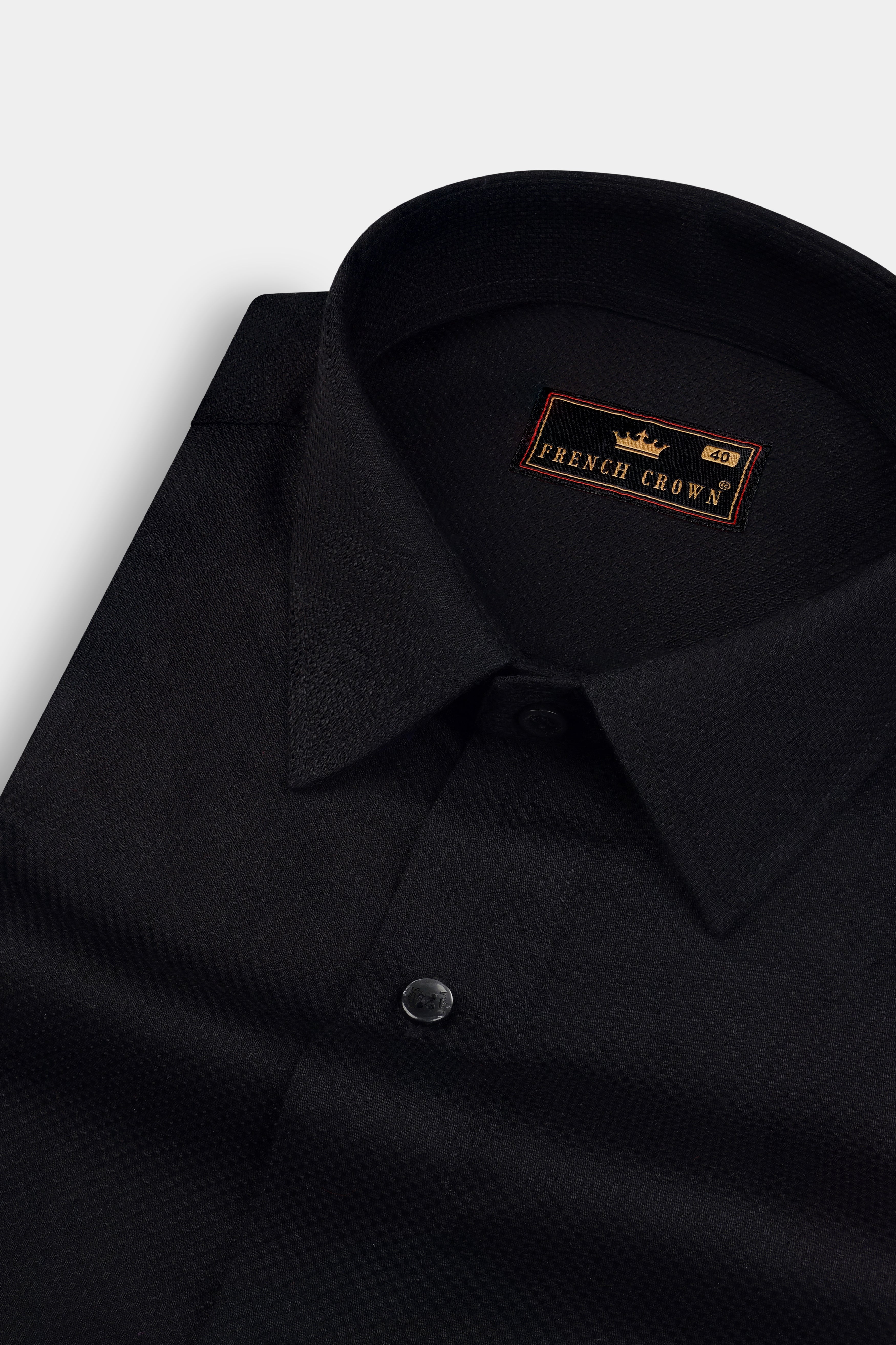 Sea Shell Off White and Jade Black Checkered Dobby Textured Premium Giza Cotton ShirtSea Shell Off White and Jade Black Checkered Dobby Textured Premium Giza Cotton Shirt