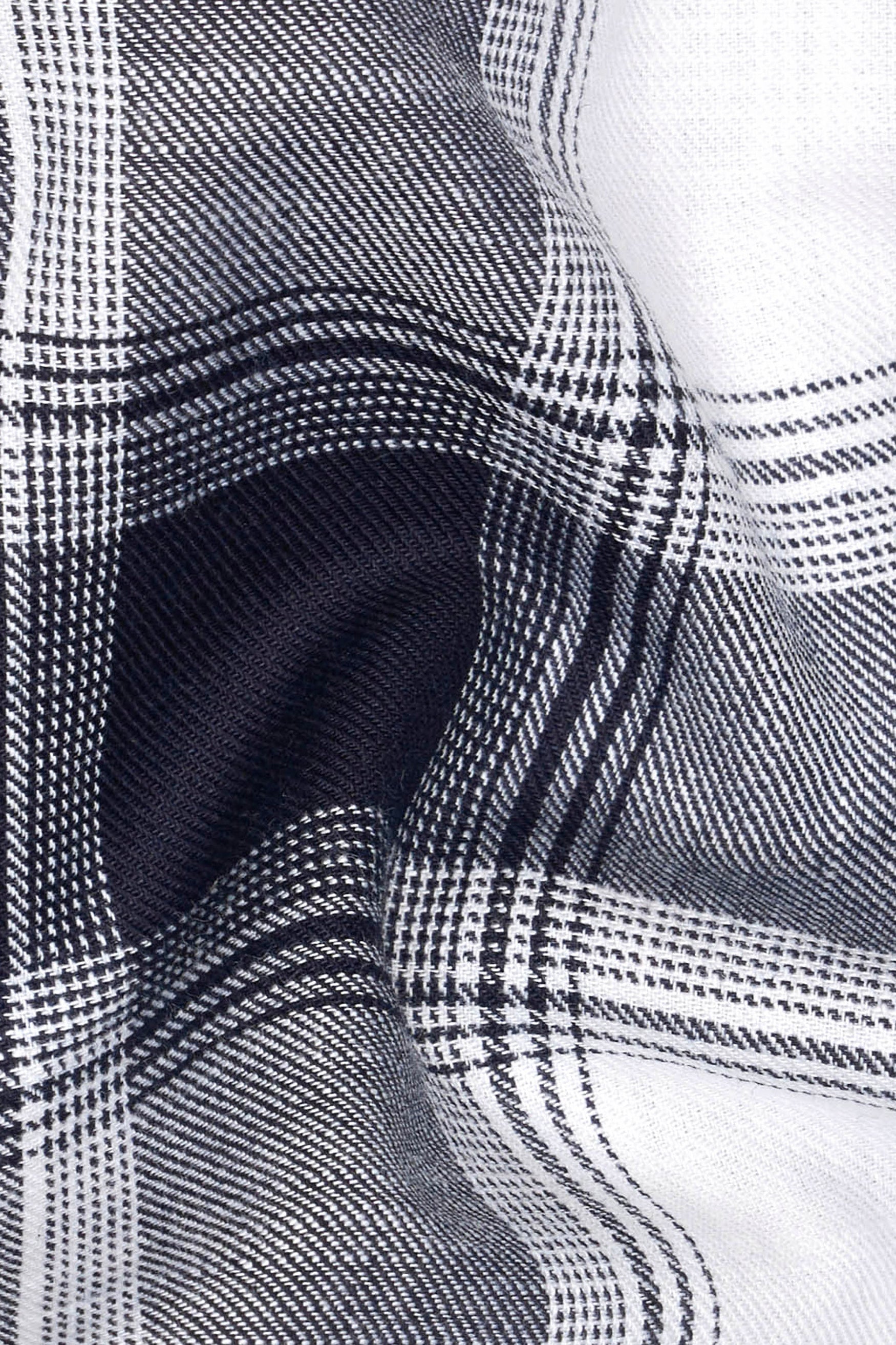 Bright White with Onyx Blue Plaid Twill Premium Cotton ShirtBright White with Onyx Blue Plaid Twill Premium Cotton Shirt