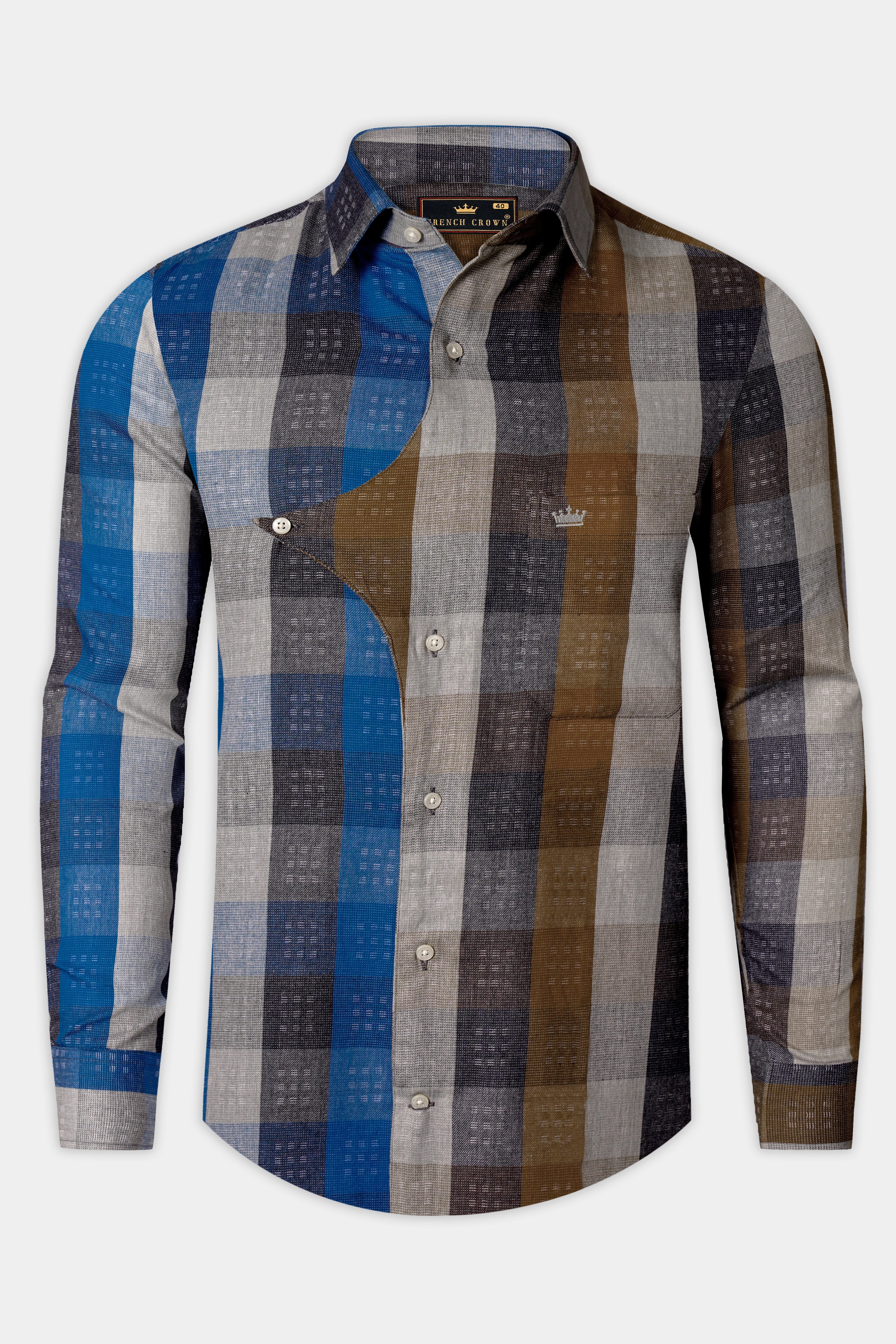 Metallic and Moonstone Blue Plaid Premium Cotton Shirt