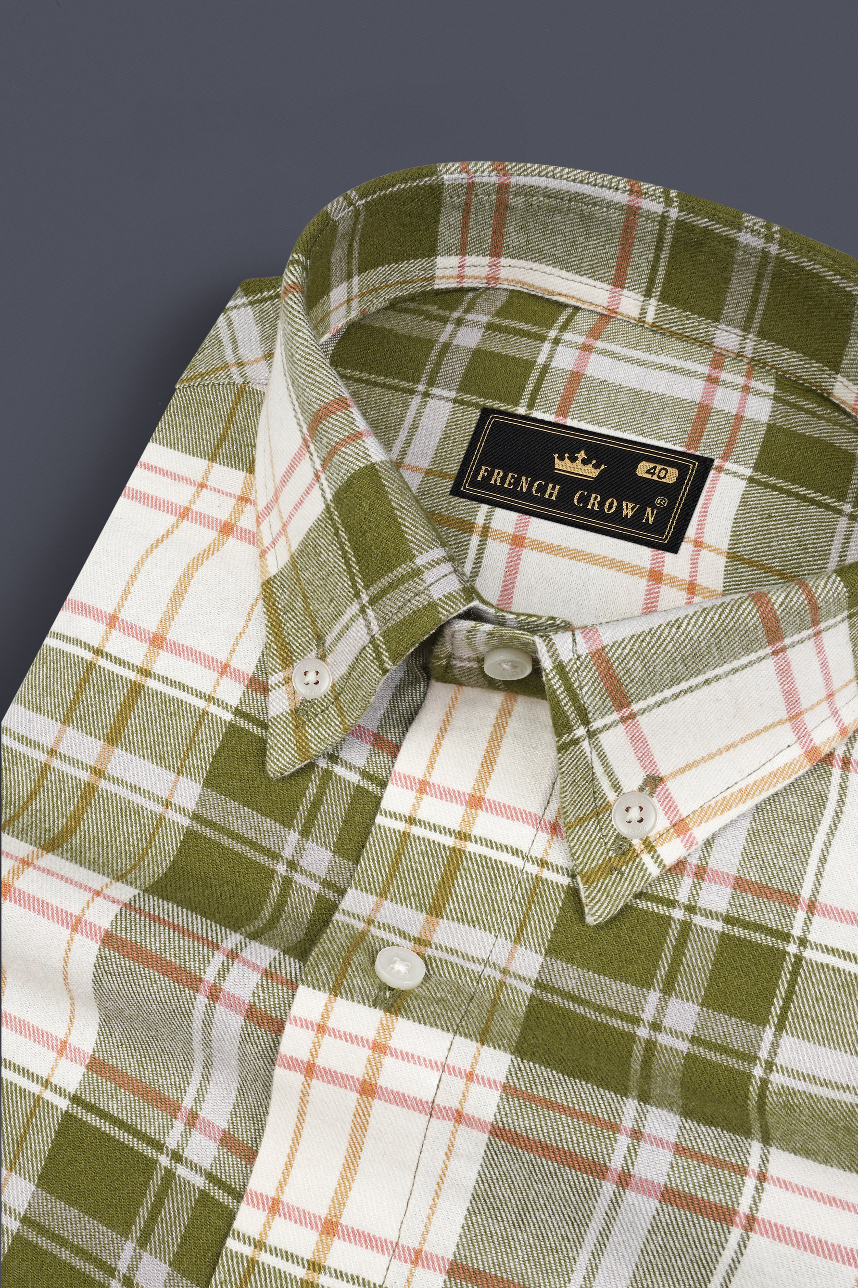 off White and Stromboli Green Plaid Twill Textured Premium Cotton Kurta Shirtoff White and Stromboli Green Plaid Twill Textured Premium Cotton Kurta Shirt