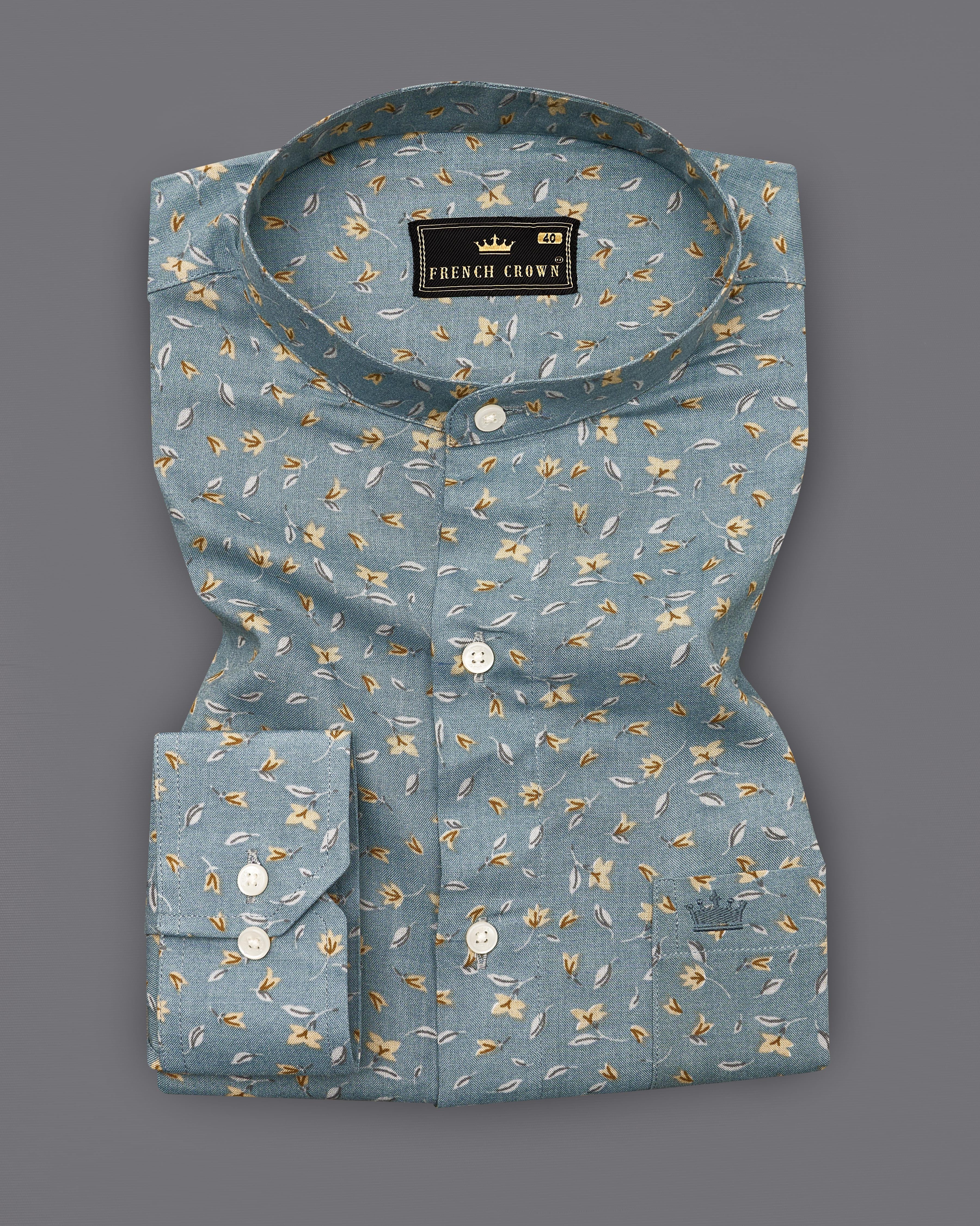 Tuscrest-Almost Blue And Tuscany Orange French Crown Elements Printed Super Soft Premium Cotton Casual ShirtTuscrest-Almost Blue And Tuscany Orange French Crown Elements Printed Super Soft Premium Cotton Casual Shirt