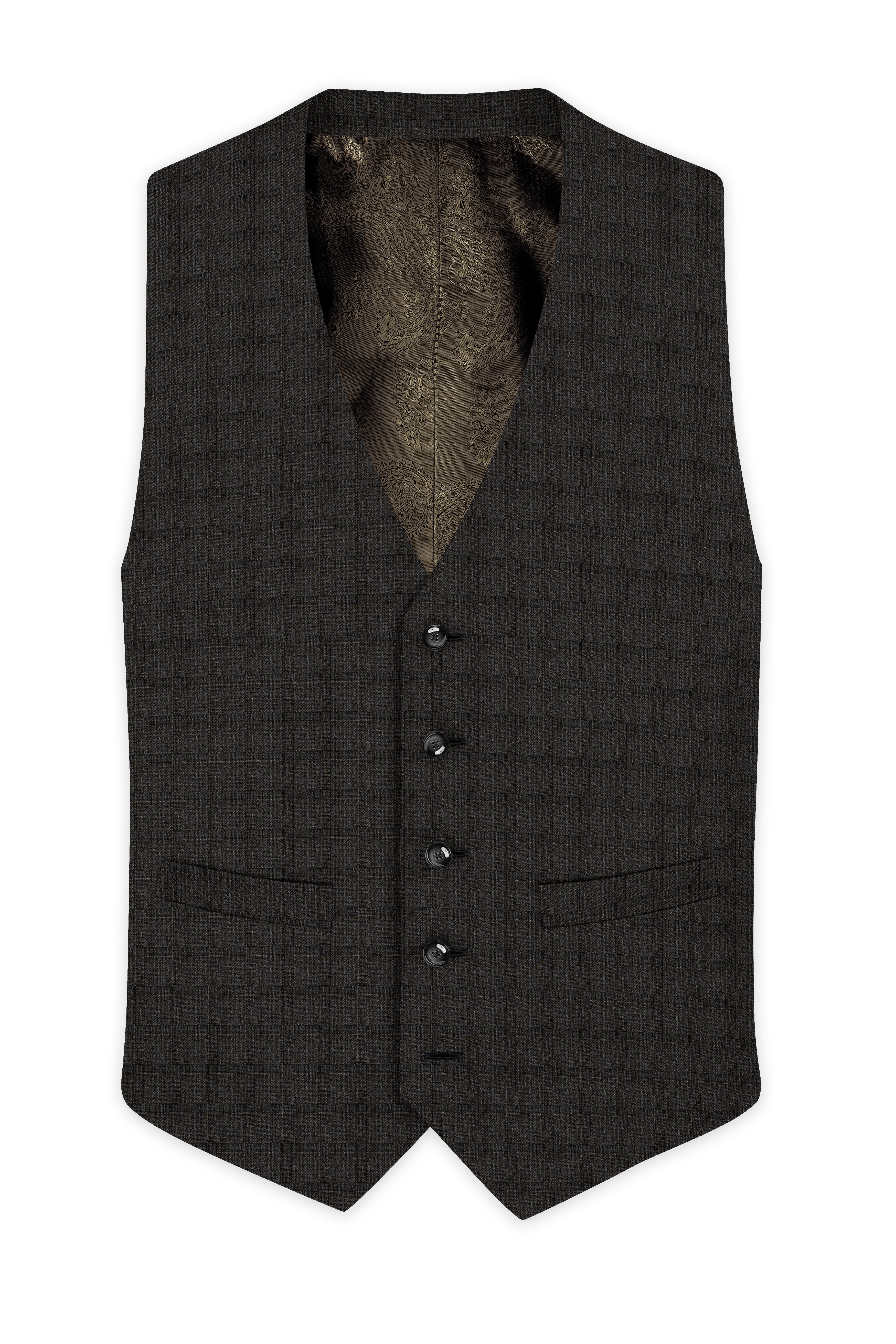 Crater Brown Super fine Plaid Wool Rich Waistcoat