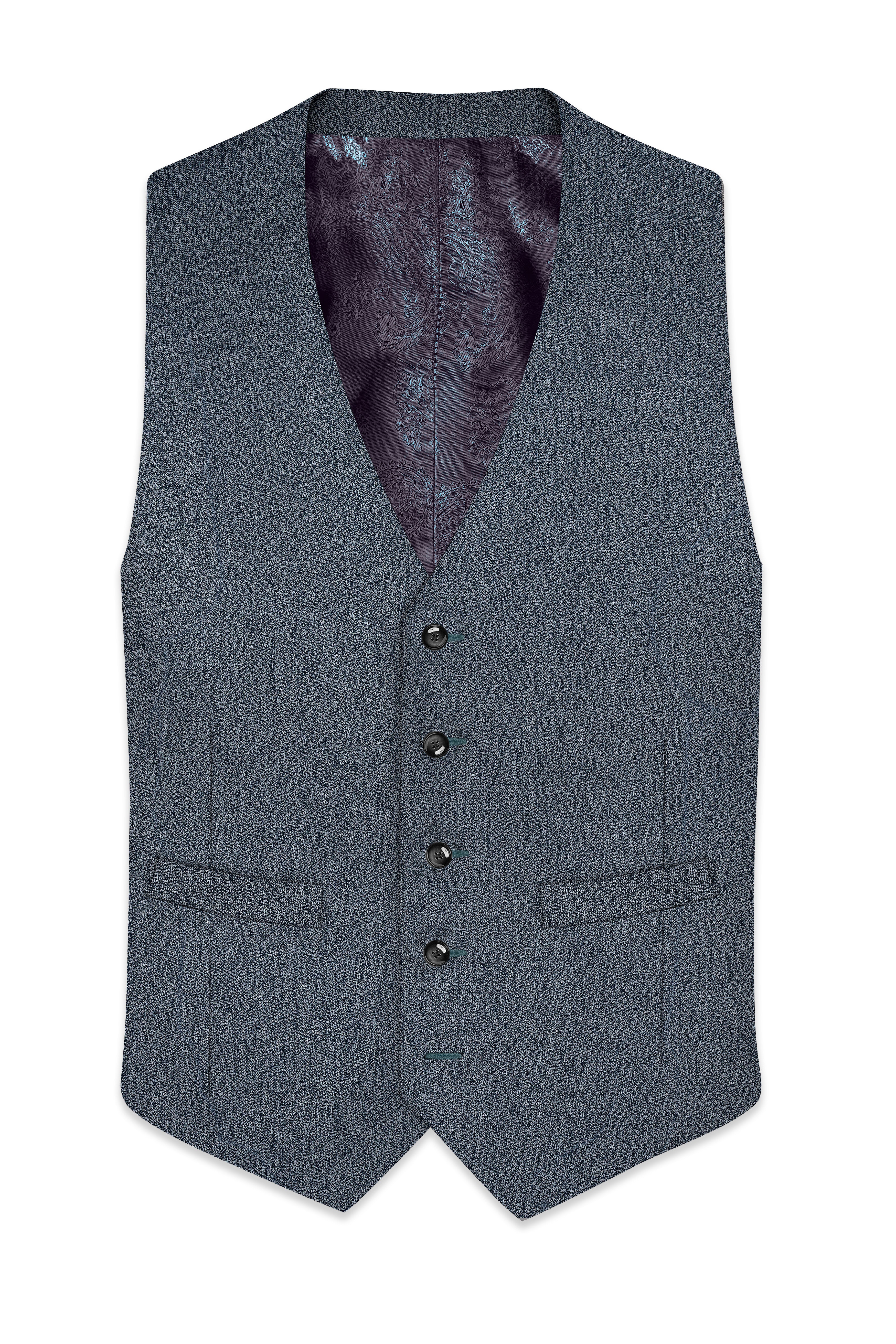Big Stone Blue Super fine Subtle Checkered Wool Rich Waistcoat