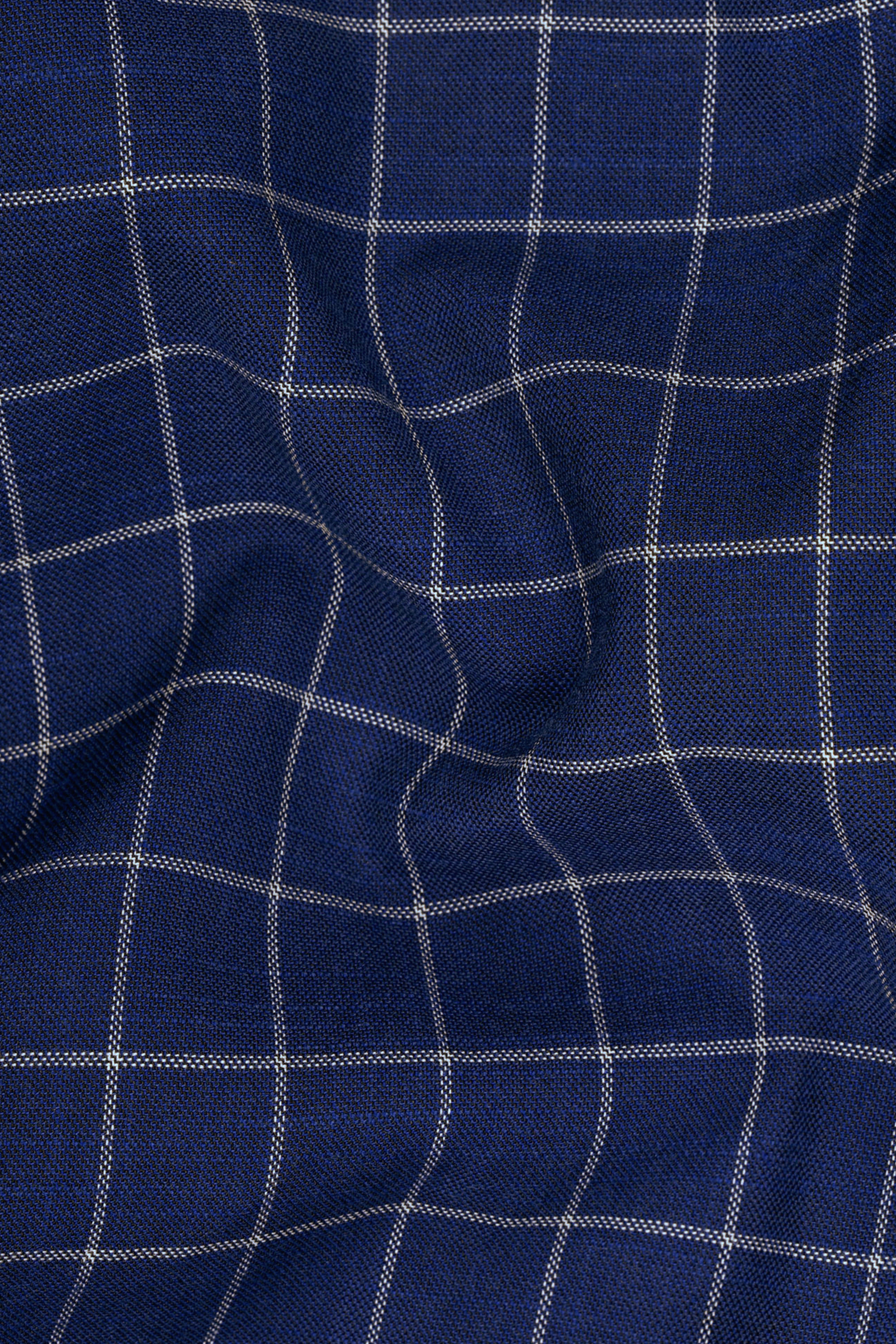 Ship Cove Blue Super fine Windowpane Wool Rich Waistcoat