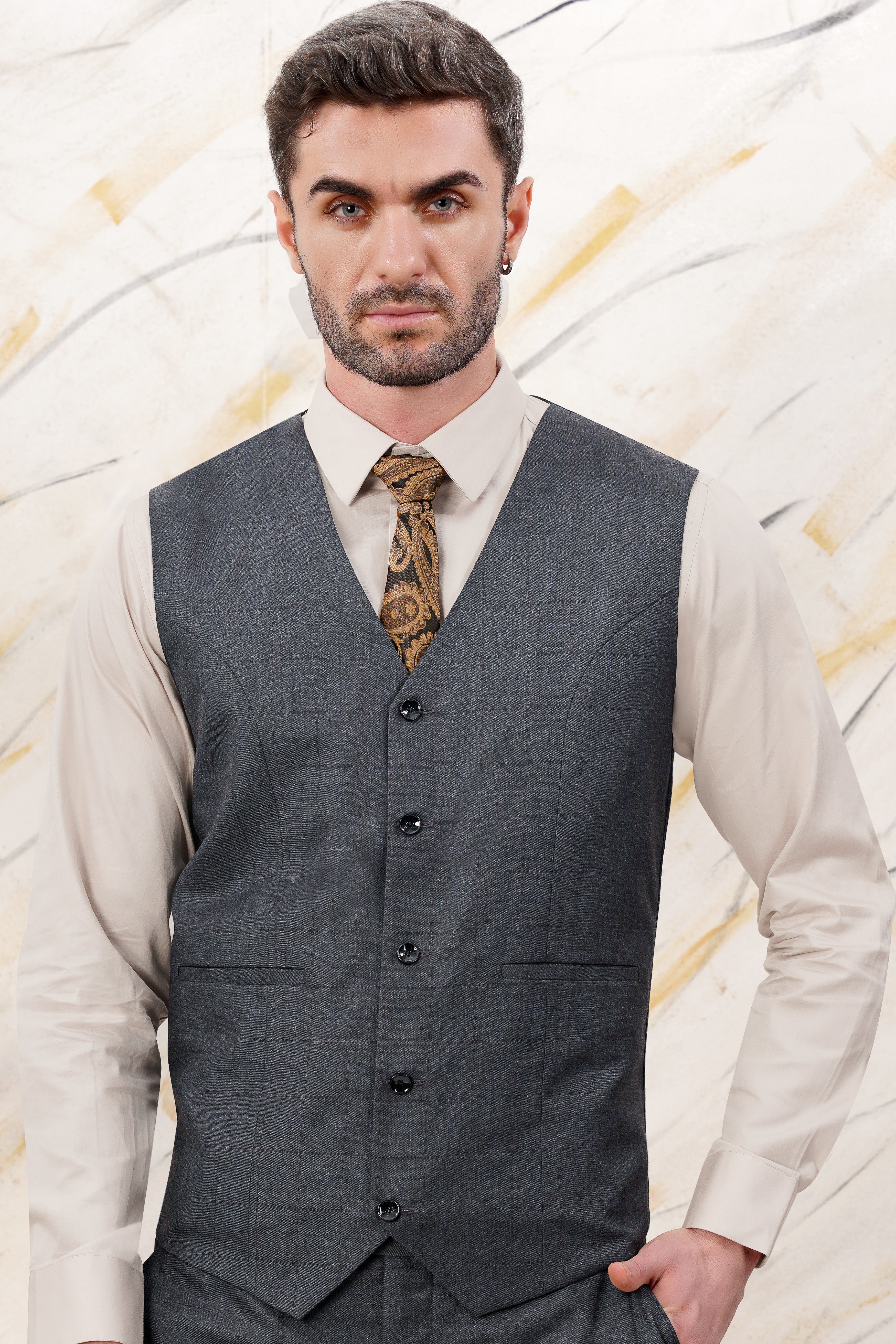 Charcoal Subtle windowpane Wool Blend Waistcoat