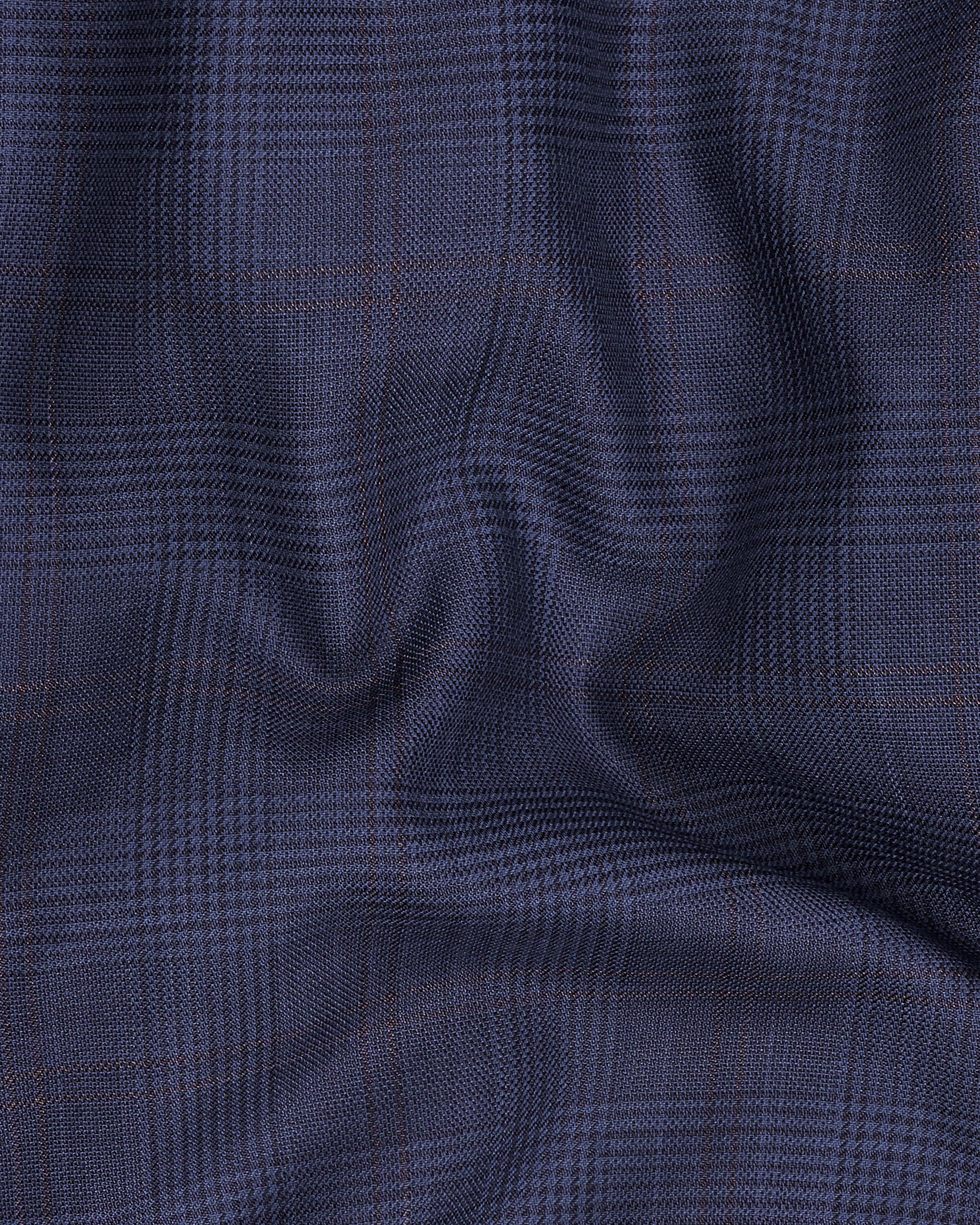 Haiti Blue and Akaroa Brown Twill Plaid Premium Cotton Half Sleeved Designer Shirt