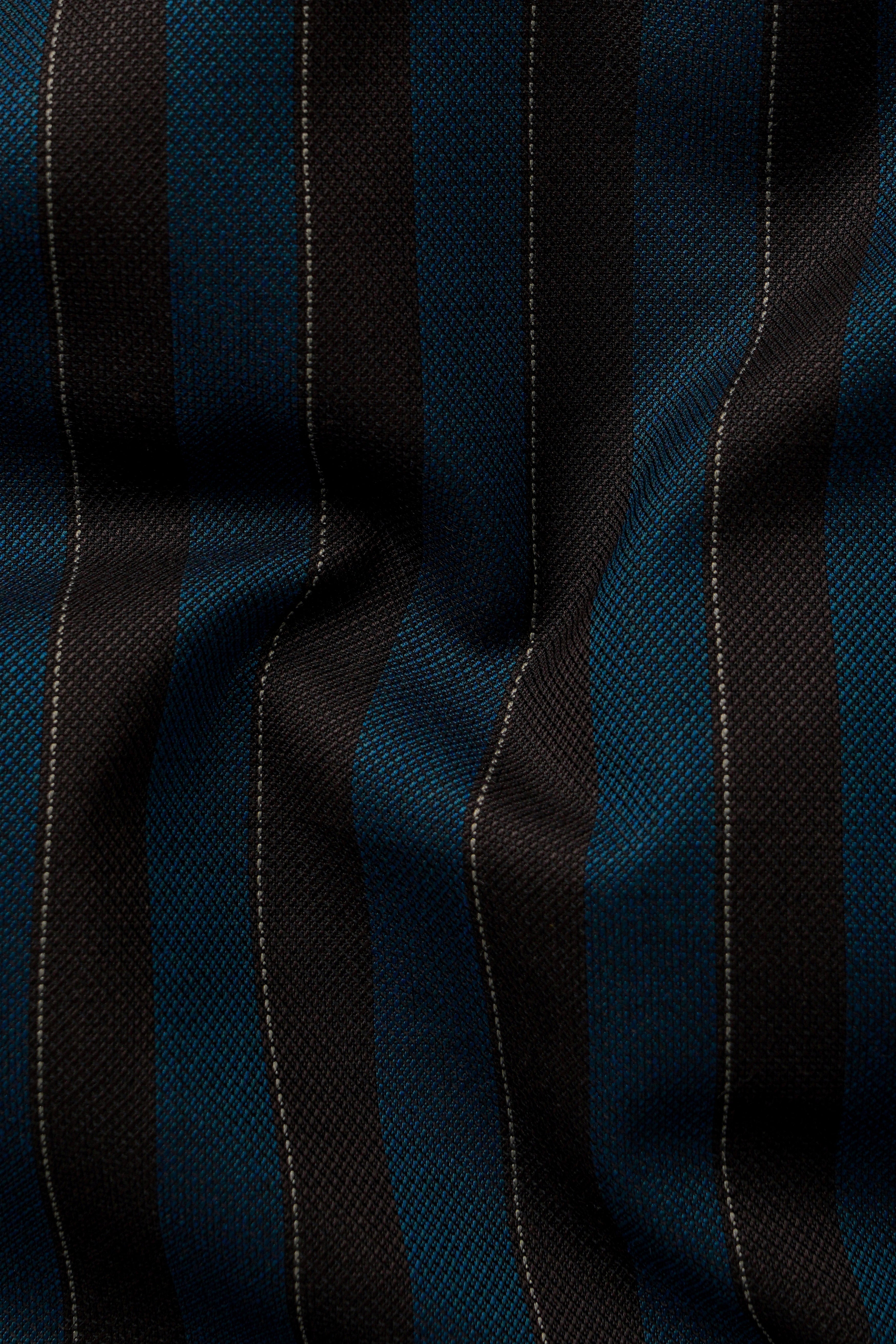 Biscay Blue And Jade Black Striped Wool Rich Single Breasted BlazerBiscay Blue And Jade Black Striped Wool Rich Single Breasted Blazer