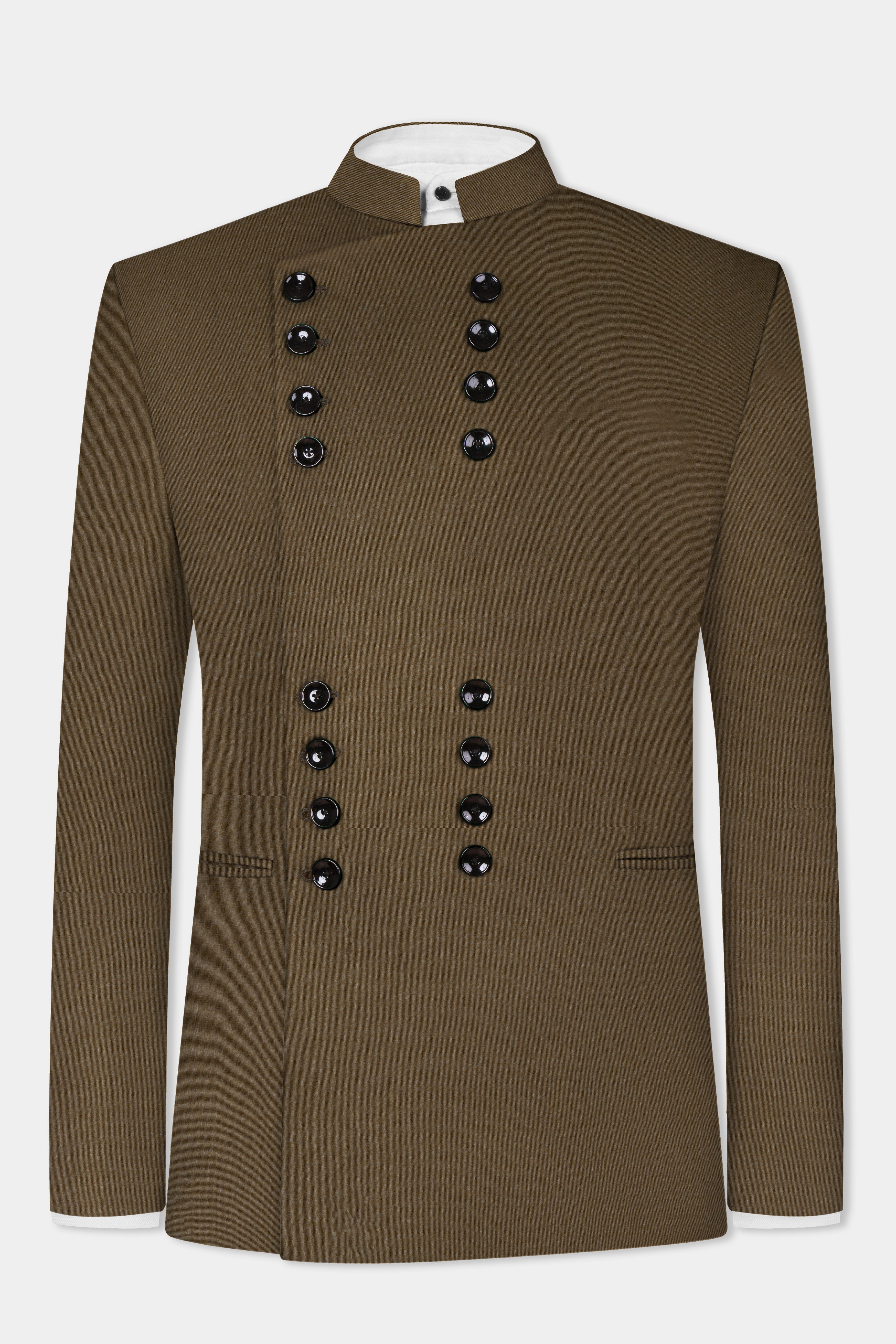 Wenge Brown Dobby Textured wool blend Double breasted Blazer