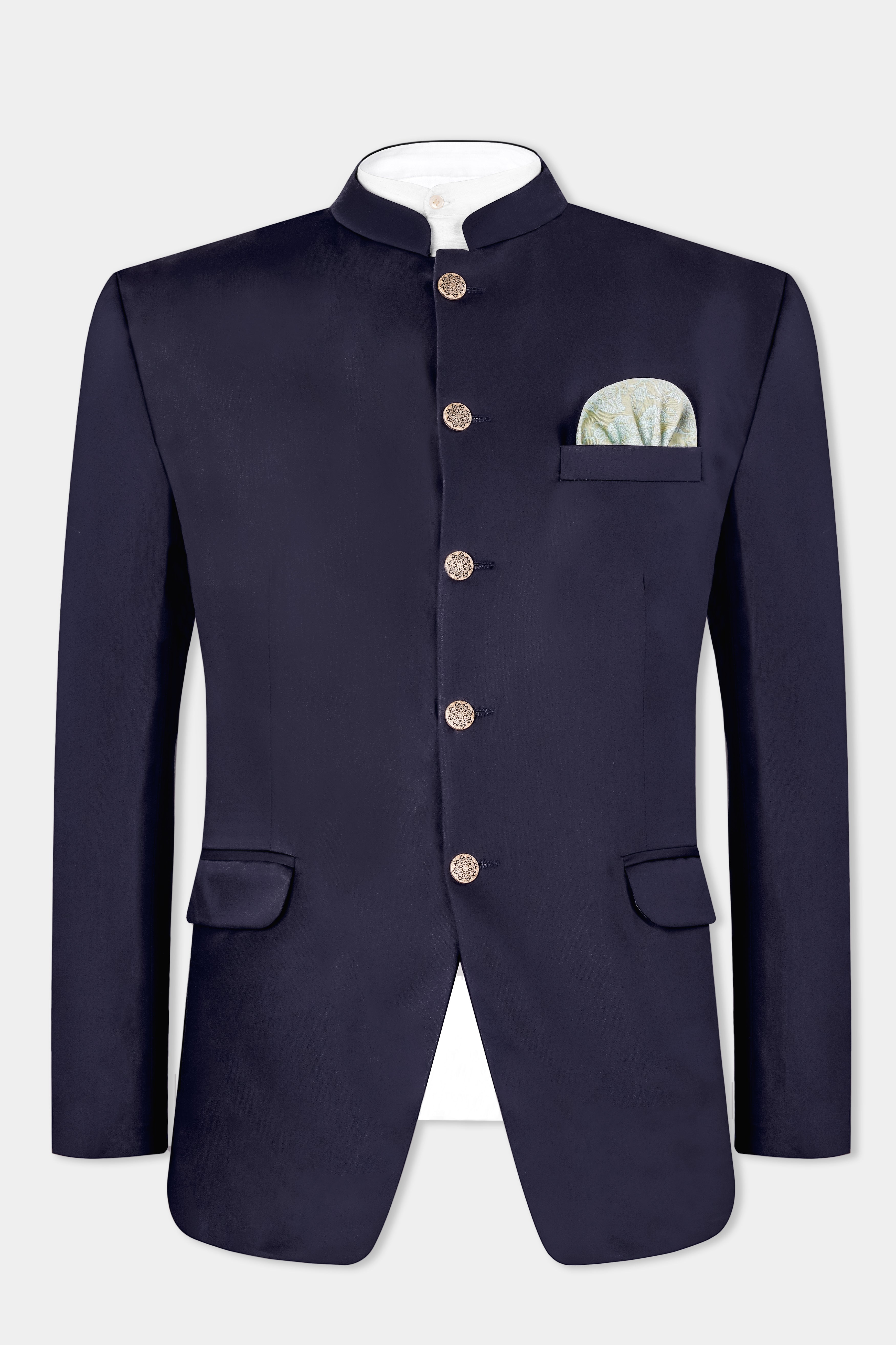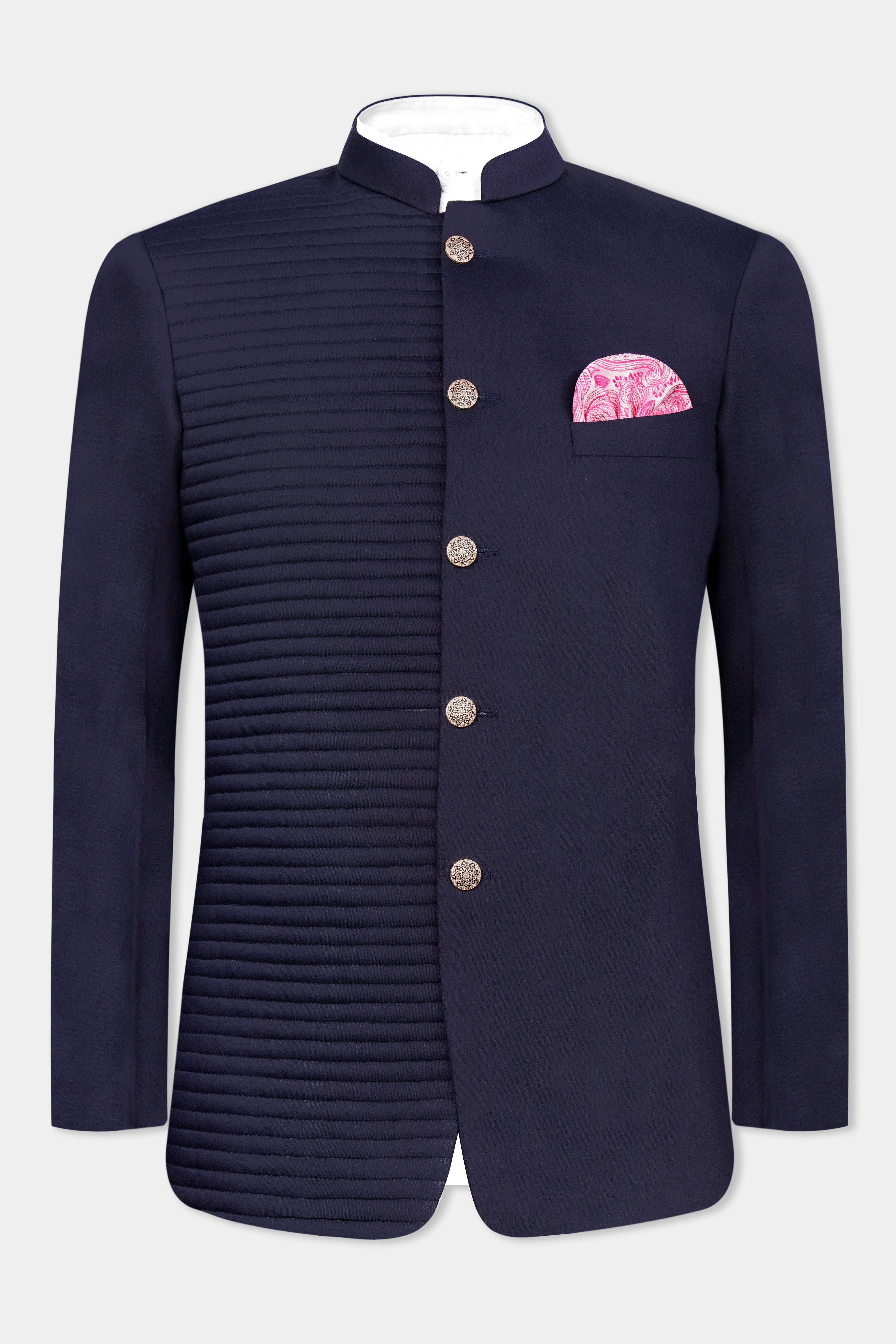 Space Cadet Blue Horizontal Stitched Wool Rich Bandhgala Designer Blazer