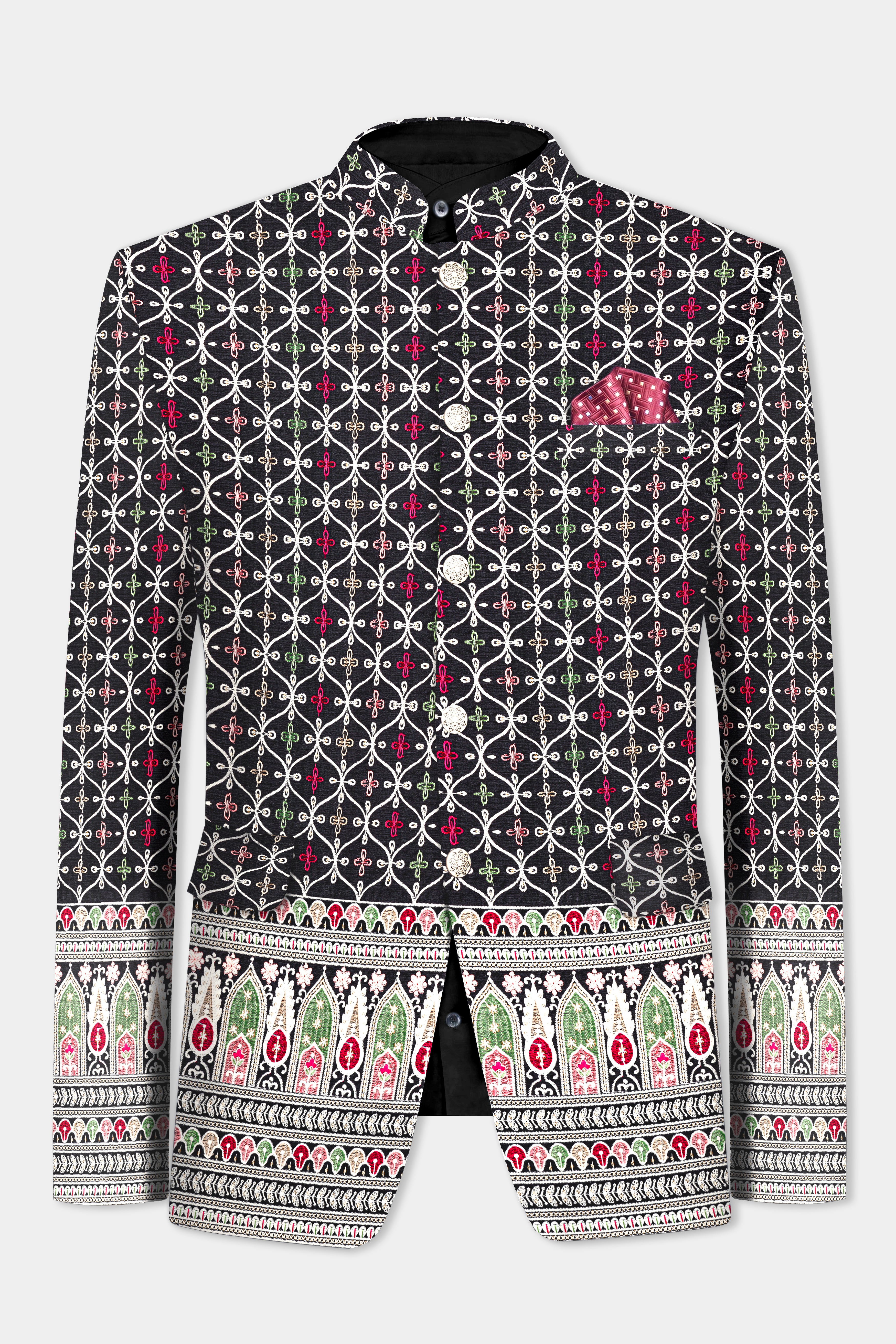 Bianca Cream and Casper Blue Thread Embroidered Bandhgala Jodhpuri