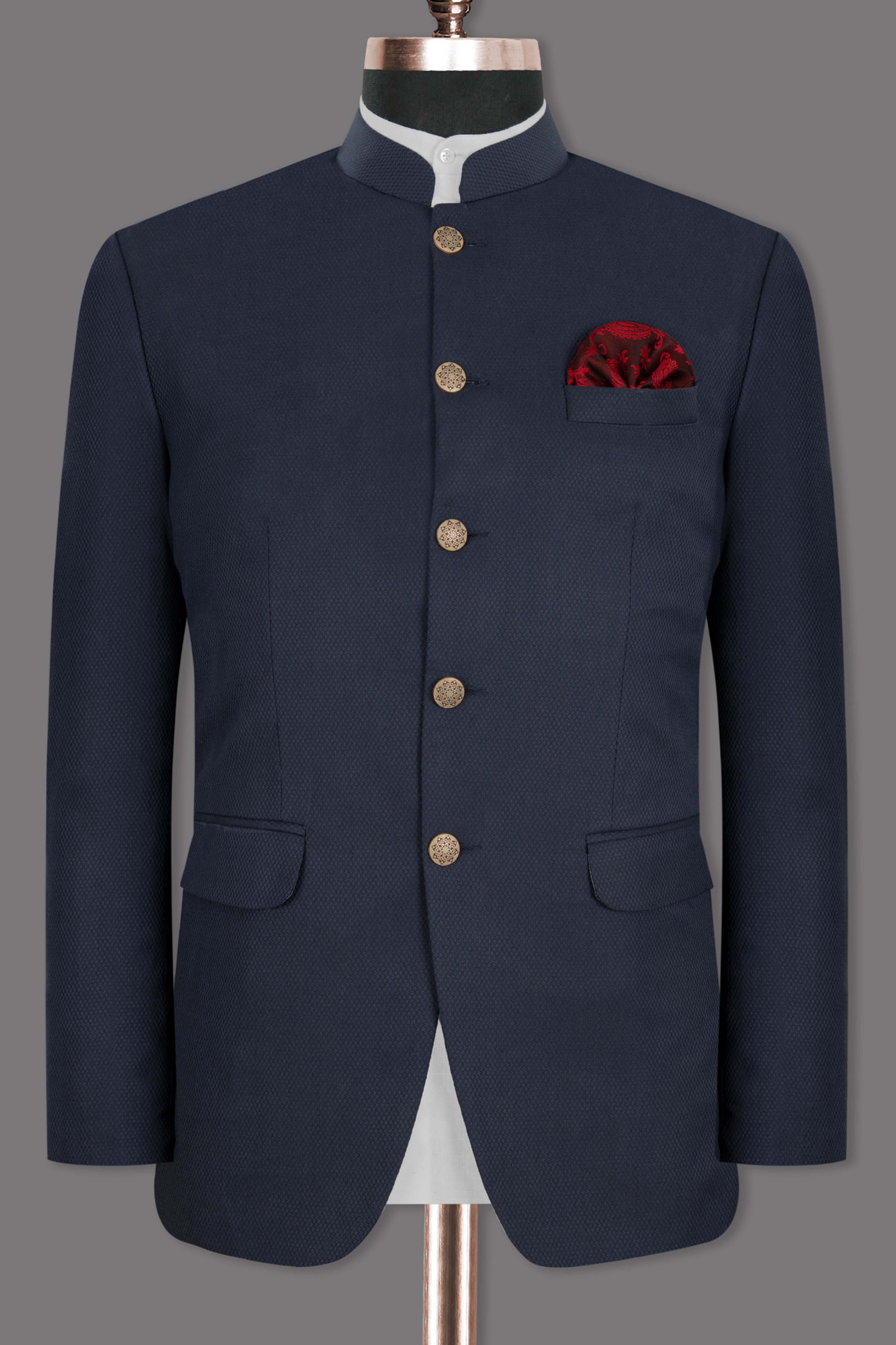Gunmetal Blue Cross Placket Bandhgala Blazer