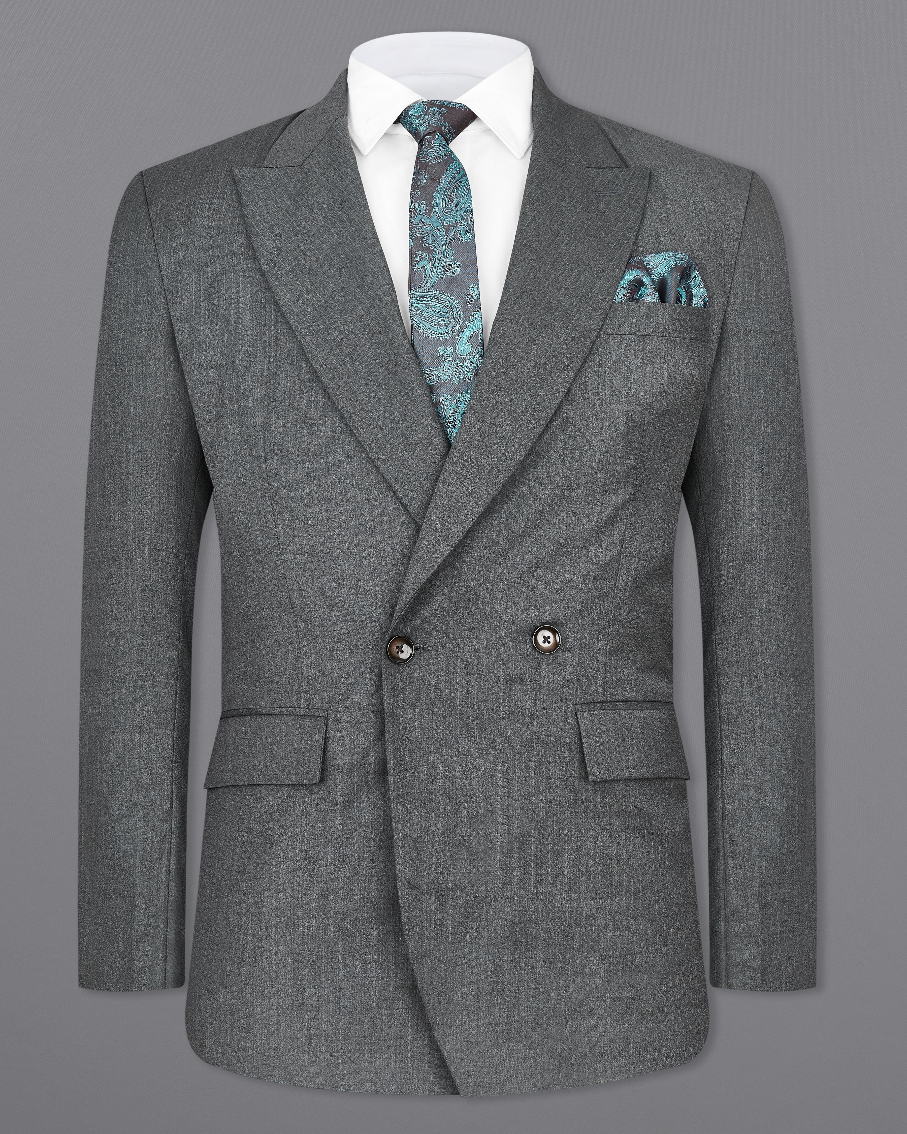 Tundora Dark Gray Subtle Plaid Double-Breasted BlazerTundora Dark Gray Subtle Plaid Double-Breasted Blazer