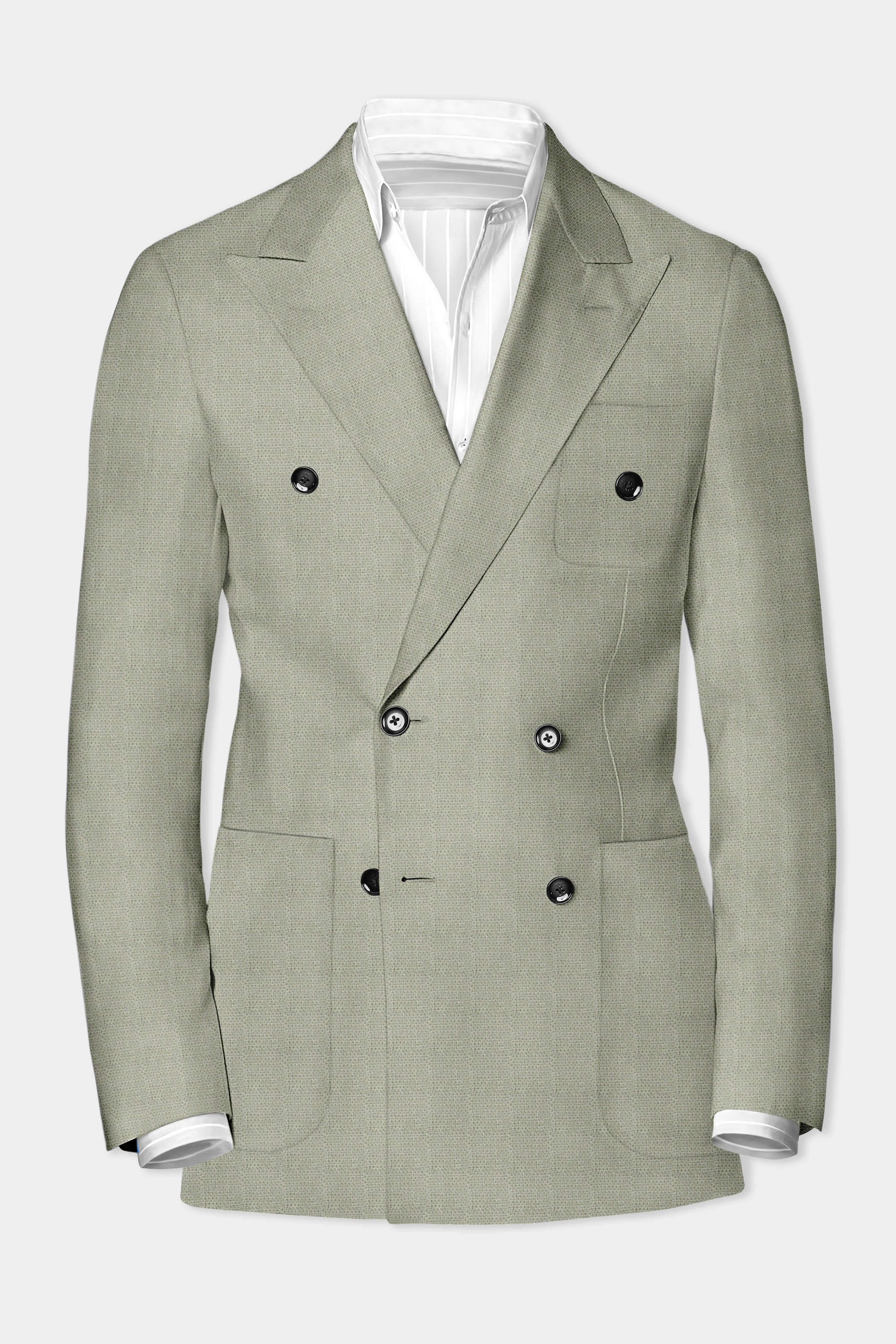 Minted Majesty-Beryl Green Solid Luxurious Linen Double Breasted Sports BlazerMinted Majesty-Beryl Green Solid Luxurious Linen Double Breasted Sports Blazer