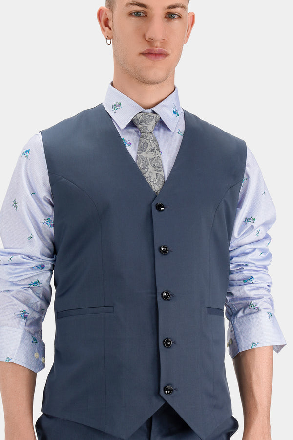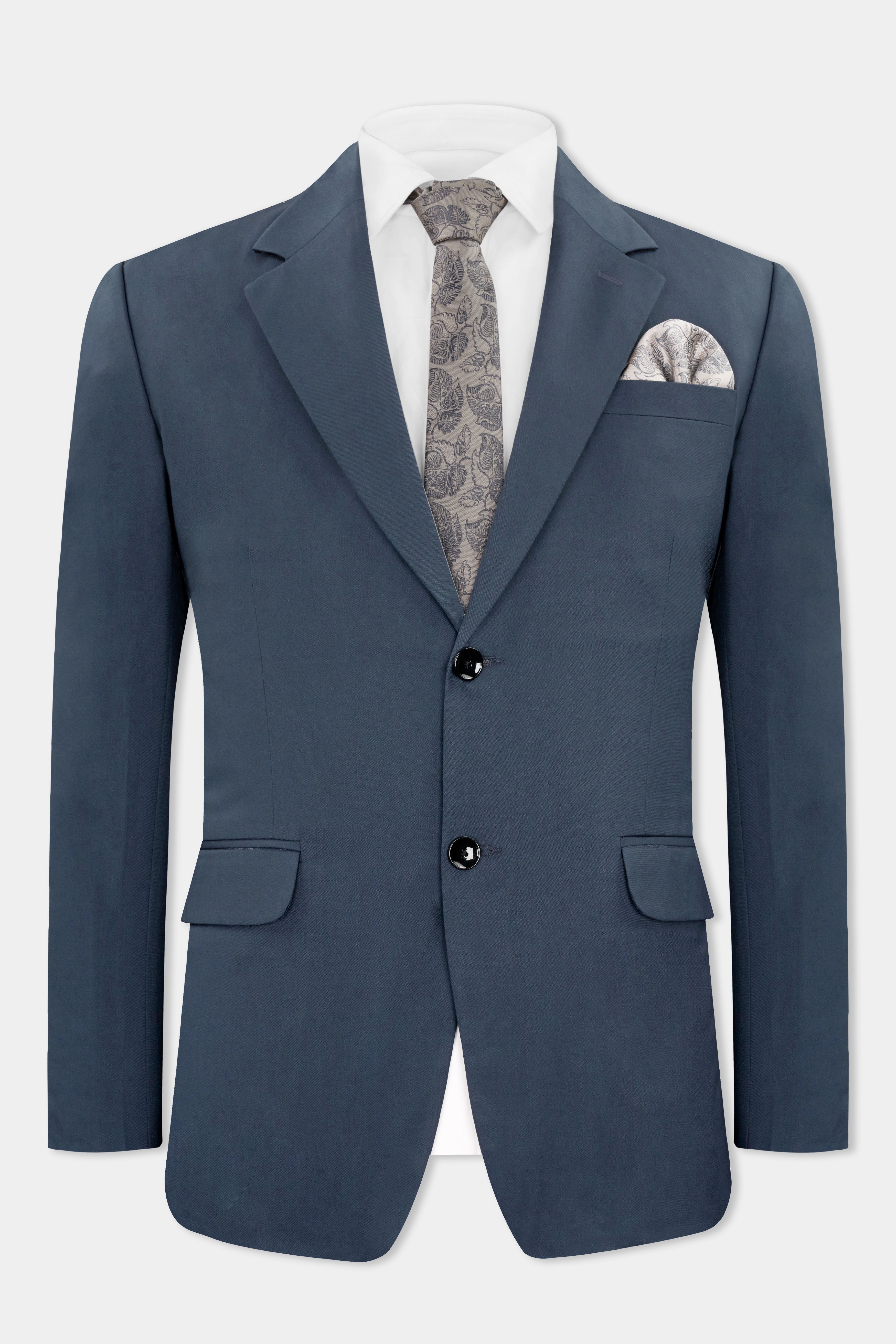 Dark Slate Blue Single Breasted Wool Rich Blazer