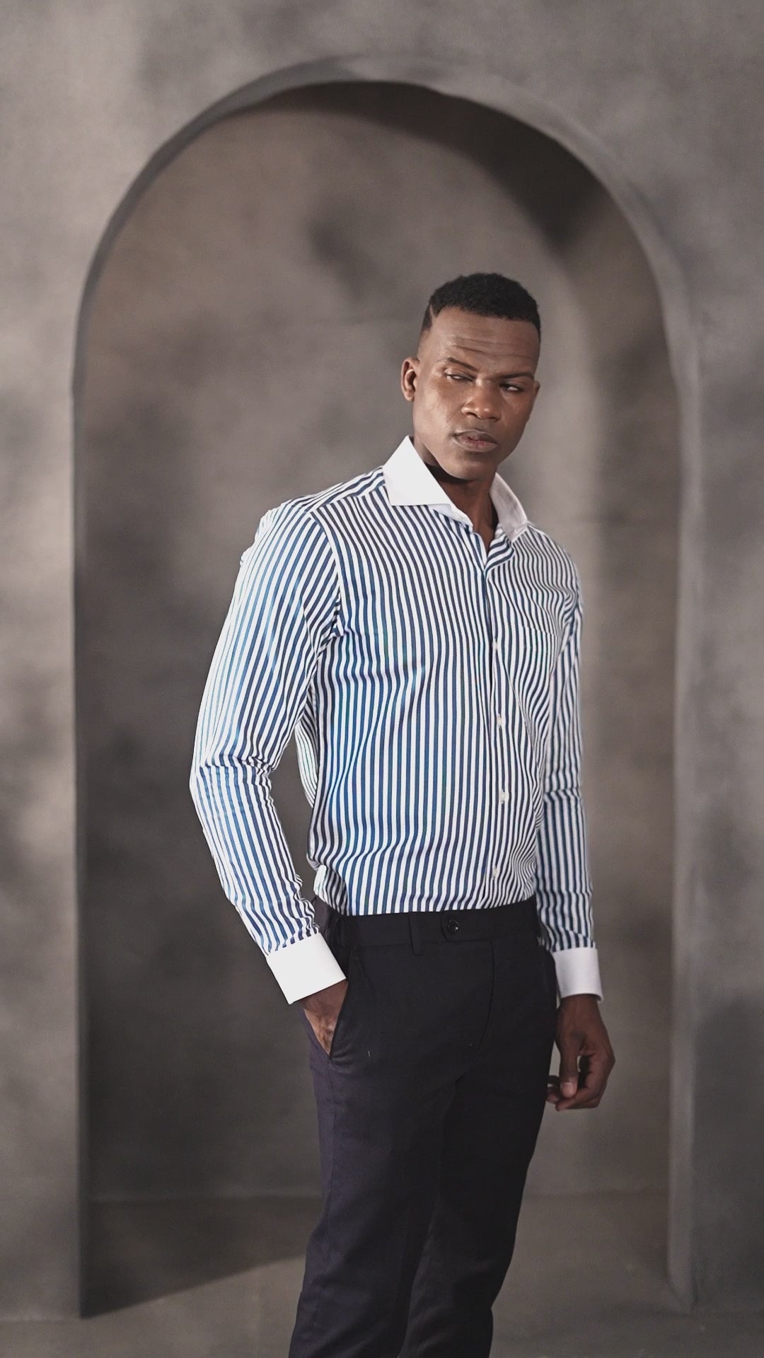 Fused collar and cuffs, collar stand and flat felled side seams provide structure and stability to all our shirts.