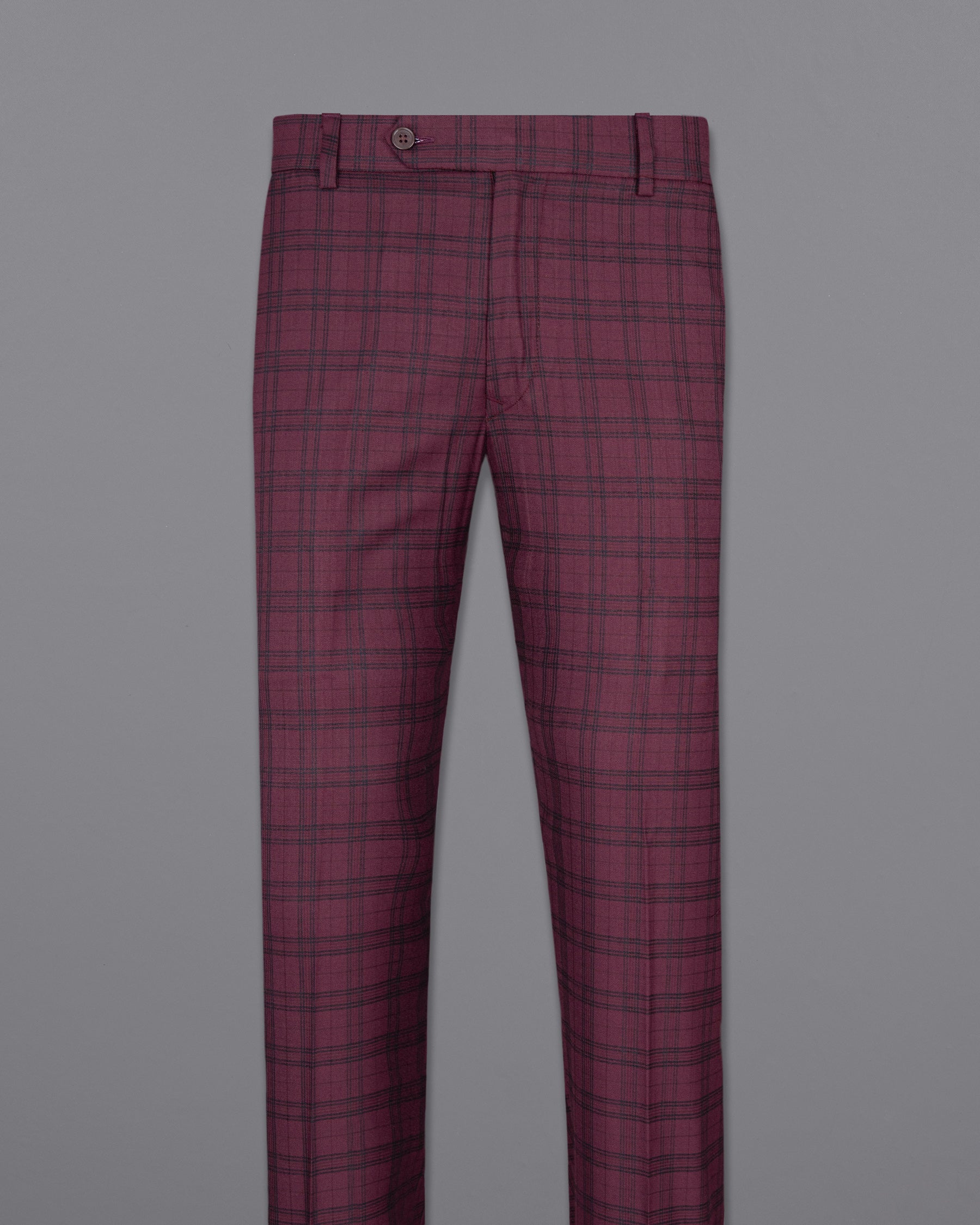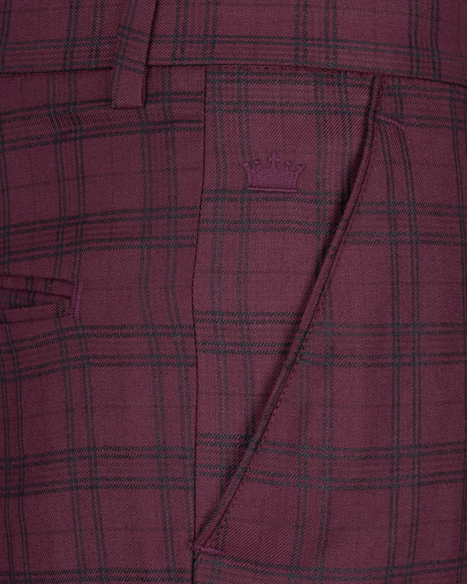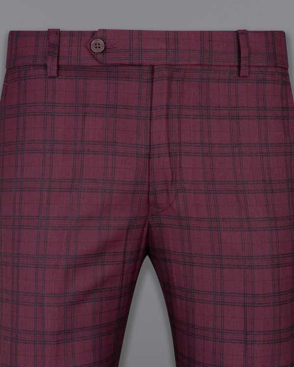 Eggplant Red Plaid Wool Rich Pant