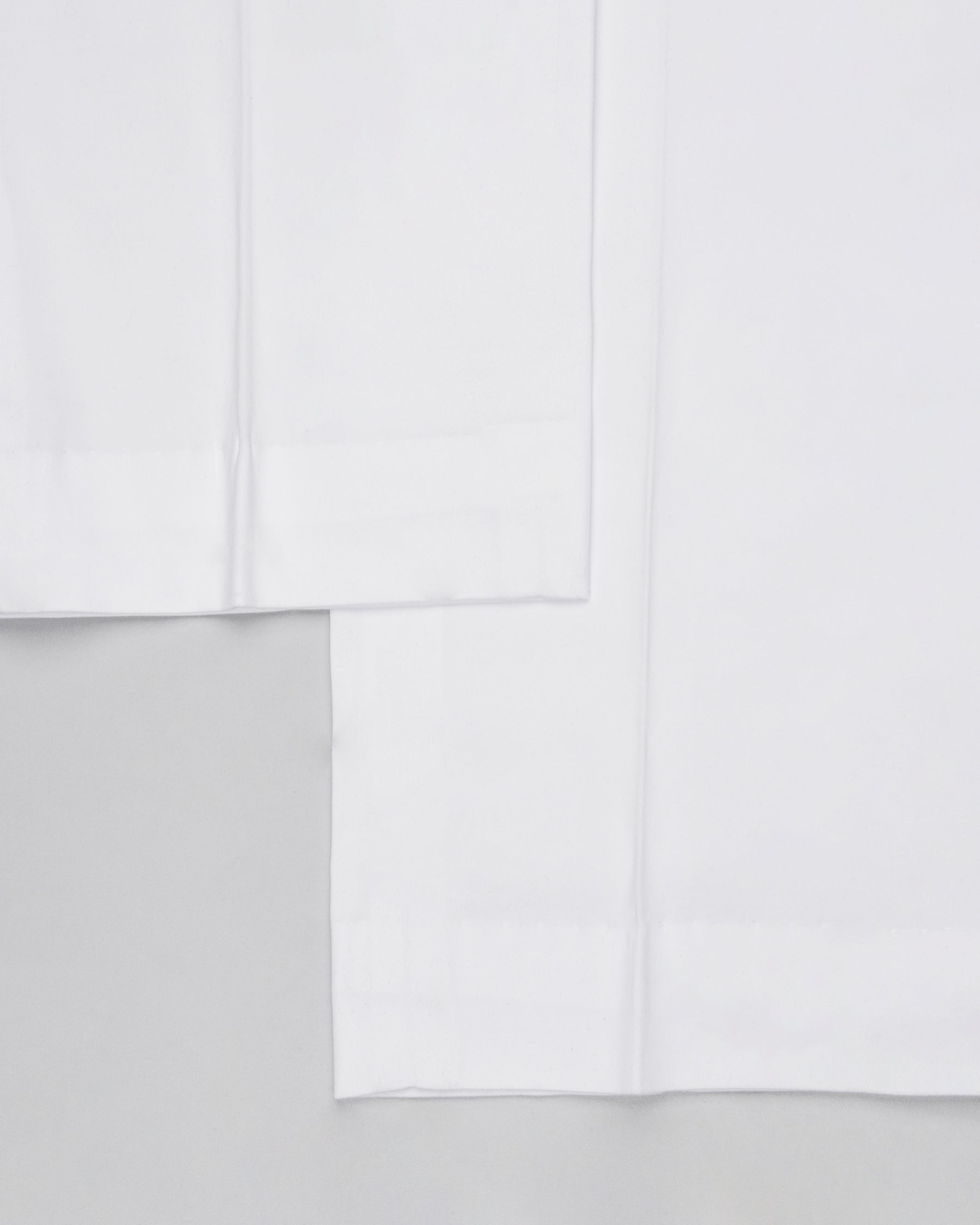 Bright White Stretchable Subtle Sheen Cross Placket Bandhgala/Mandarin SuitBright White Stretchable Subtle Sheen Cross Placket Bandhgala/Mandarin Suit