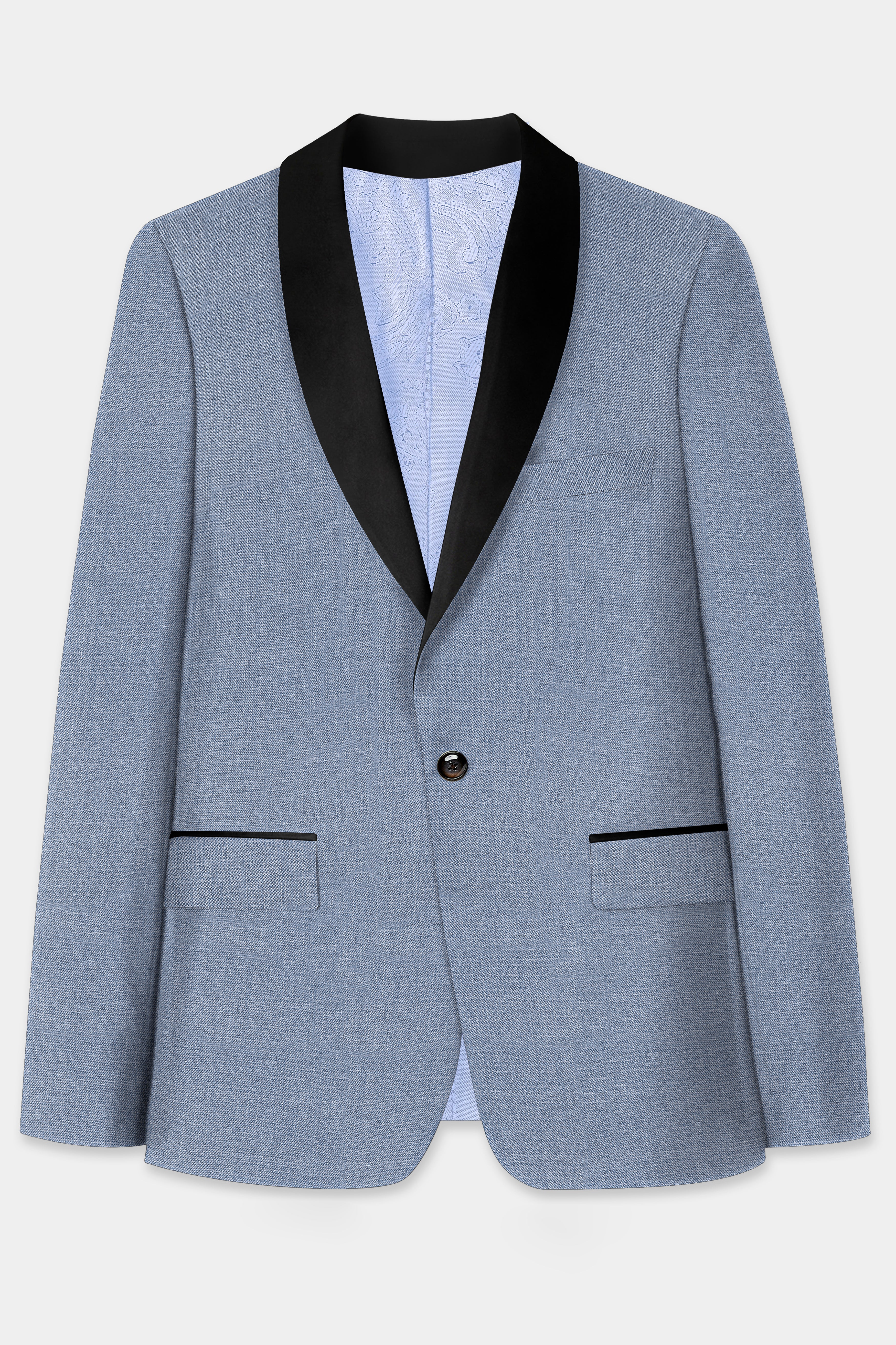 Big Stone Blue Textured Wool Blend Single Breasted Blazer