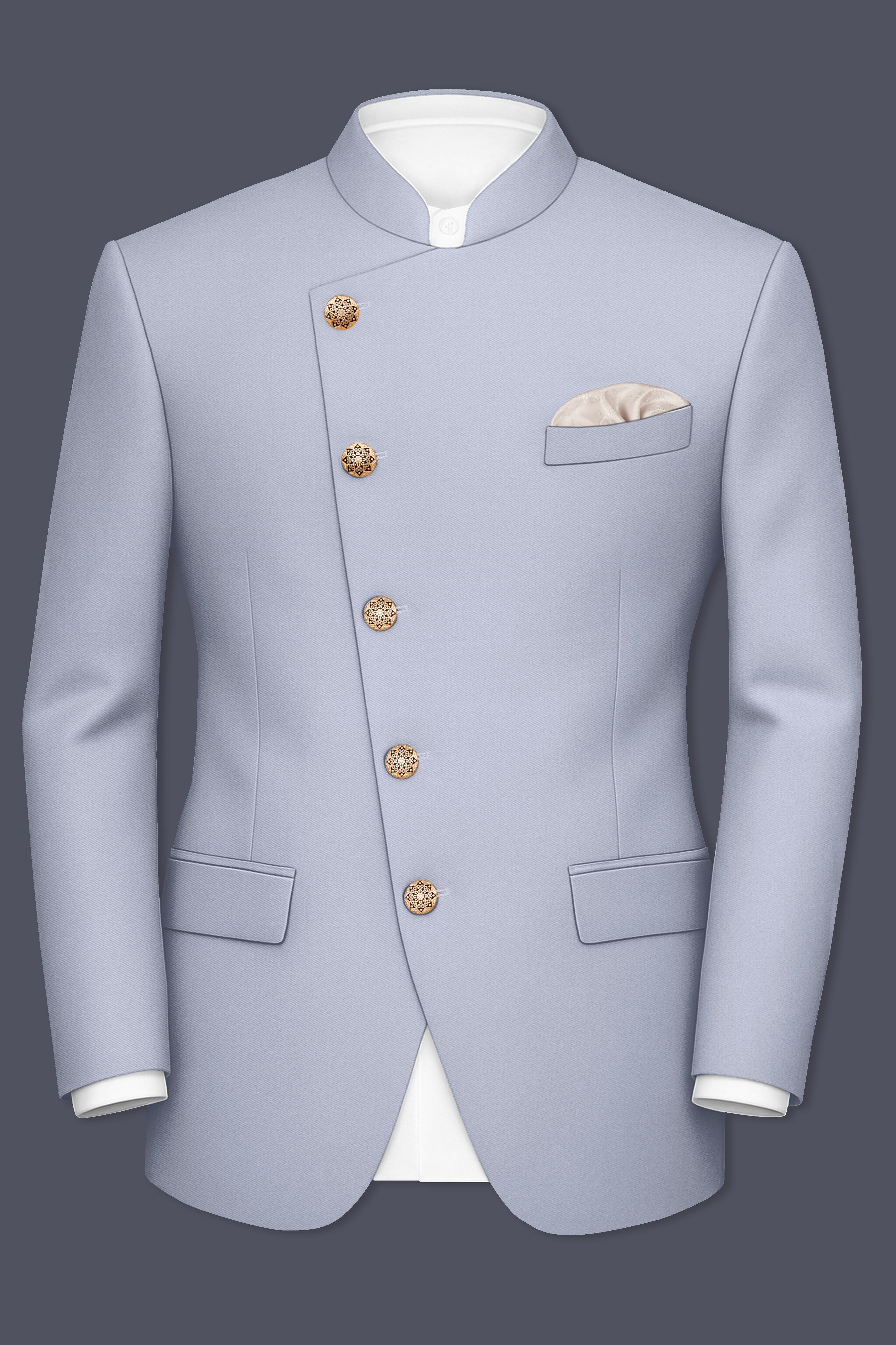 Silgrove-Loblolly Gray Wool Rich Cross Placket Bandhgala Slight Stretch Blazer