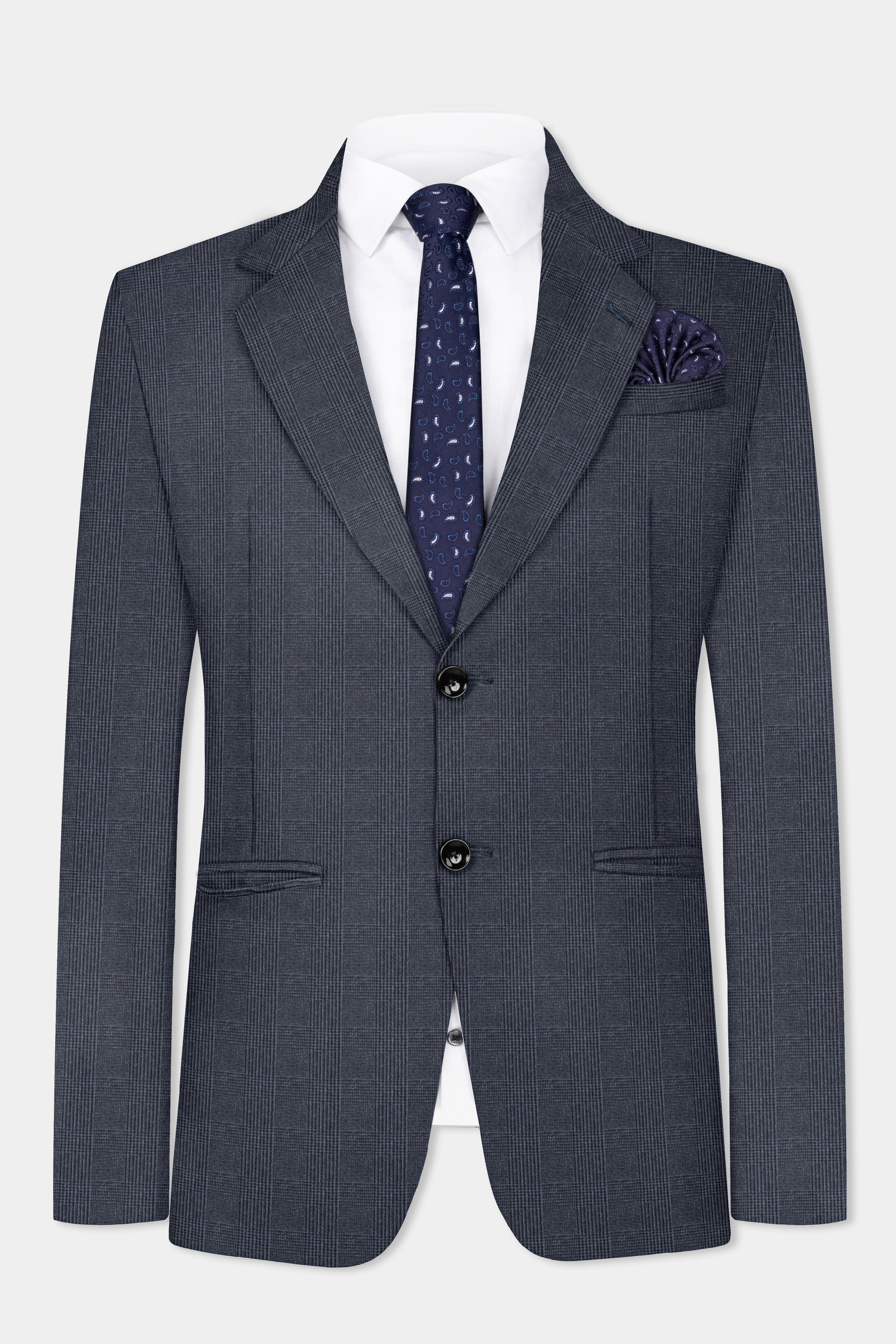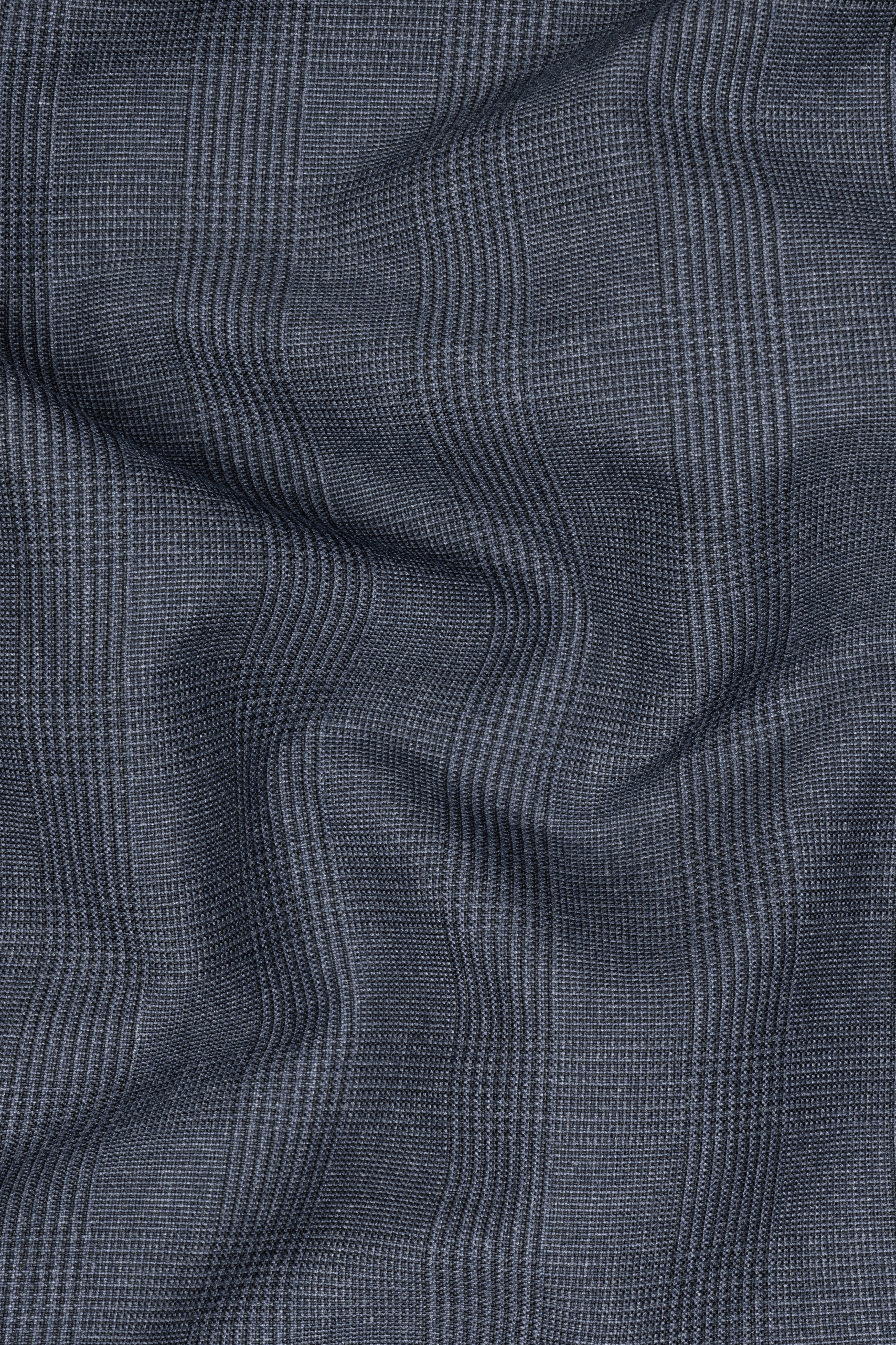 Gravel Gray Checked Wool Blend Single Breasted Blazer