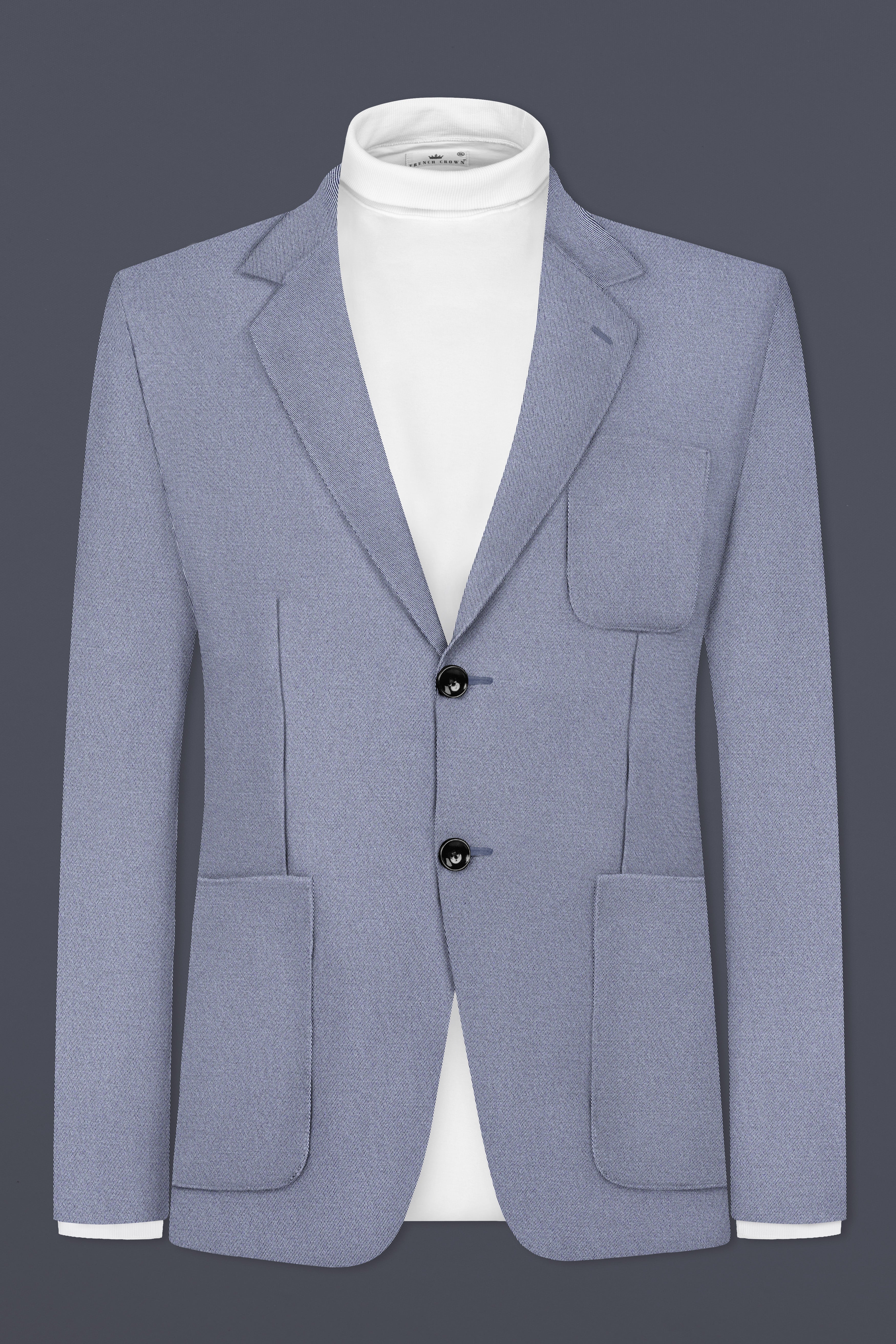 Outer Space Blue Double-Breasted Premium Cotton BlazerOuter Space Blue Double-Breasted Premium Cotton Blazer
