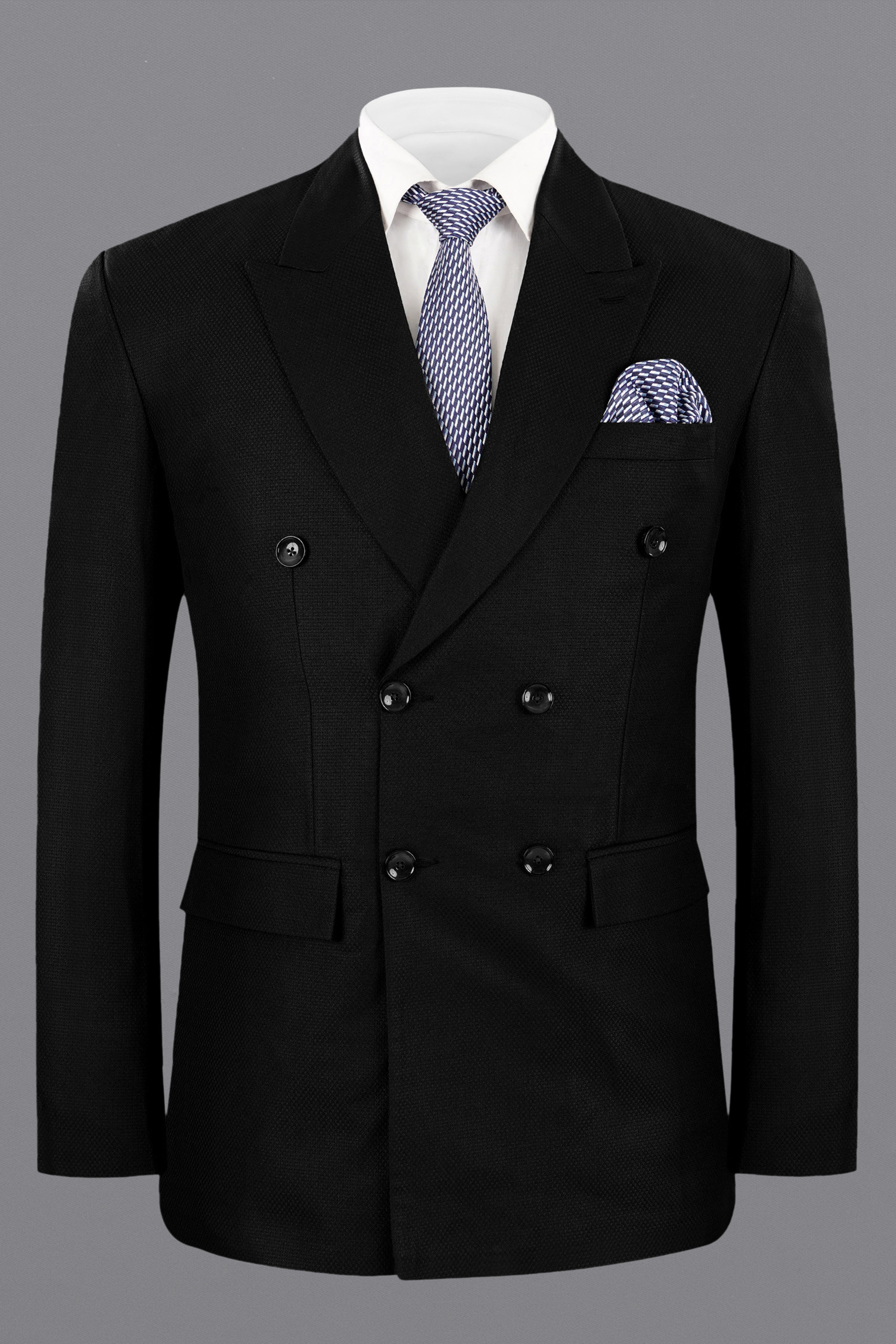 Jade black Diamond Textured Wool Blend Double Breasted Blazer