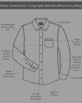 Fused collar and cuffs, collar stand and flat felled side seams provide structure and stability to all our shirts.