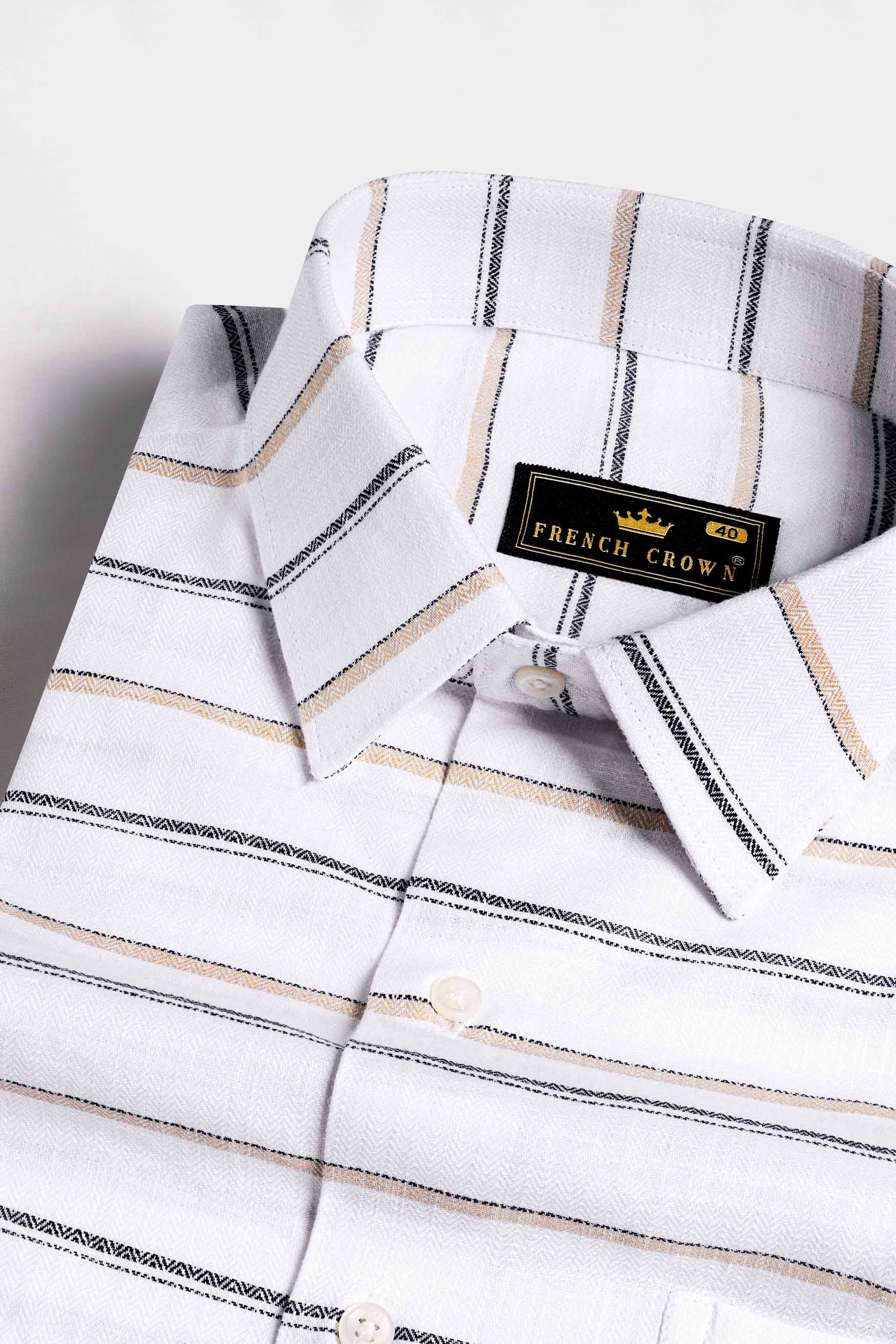 Bright White Pinstriped Dobby Textured Premium Giza Cotton ShirtBright White Pinstriped Dobby Textured Premium Giza Cotton Shirt