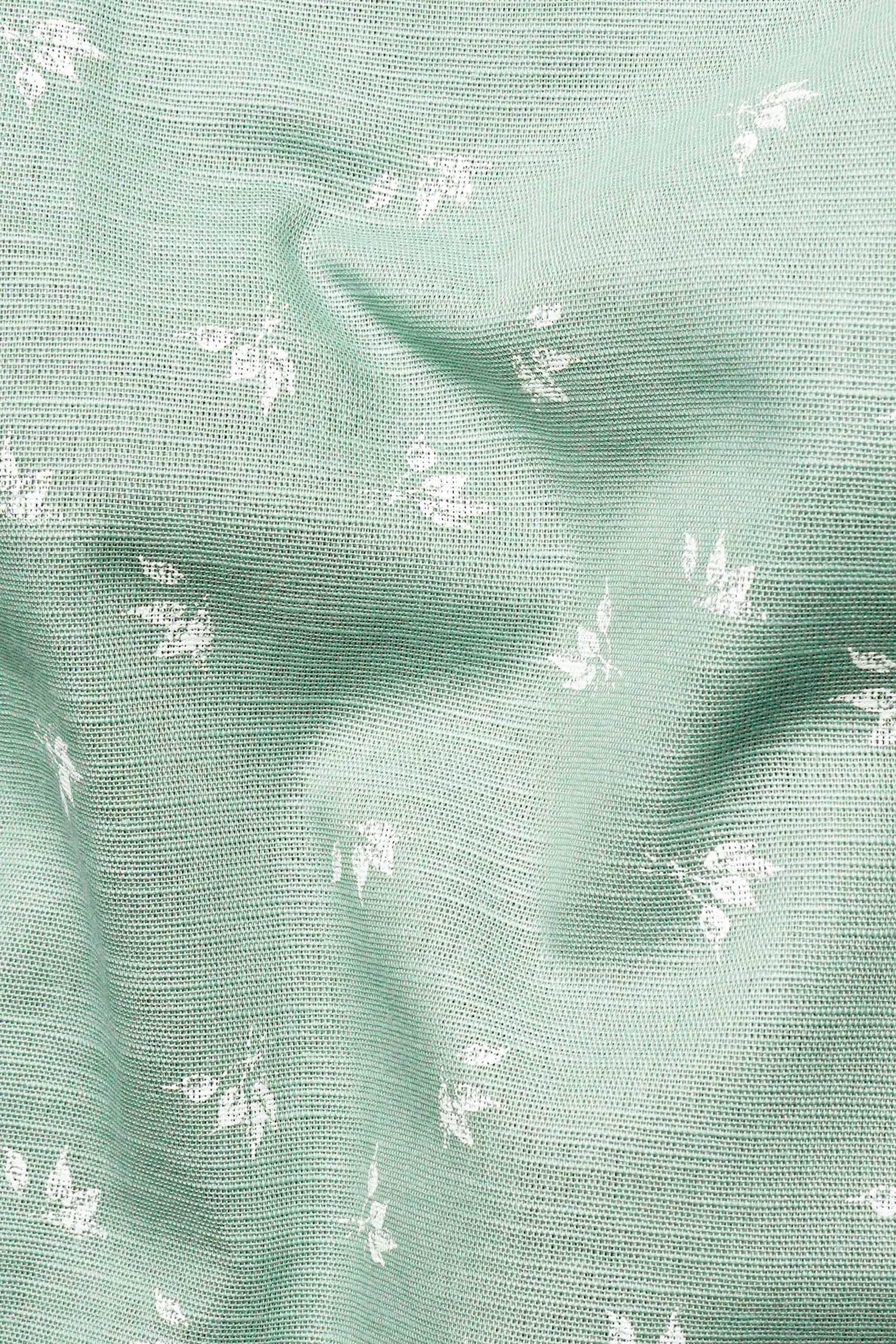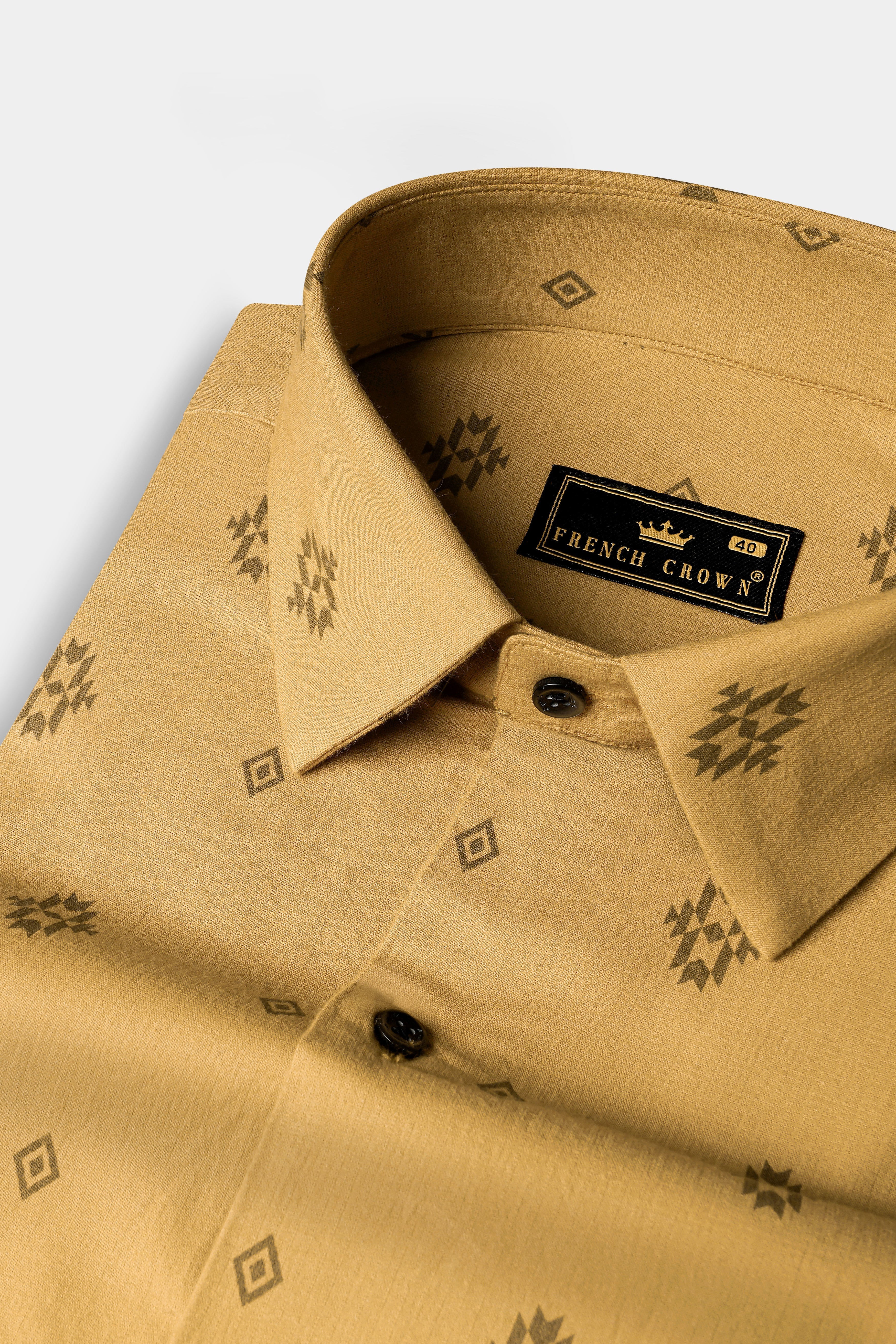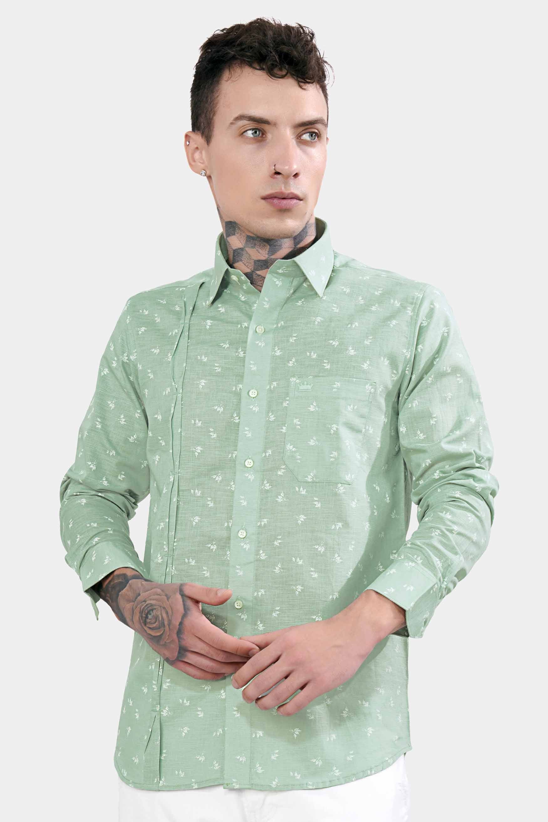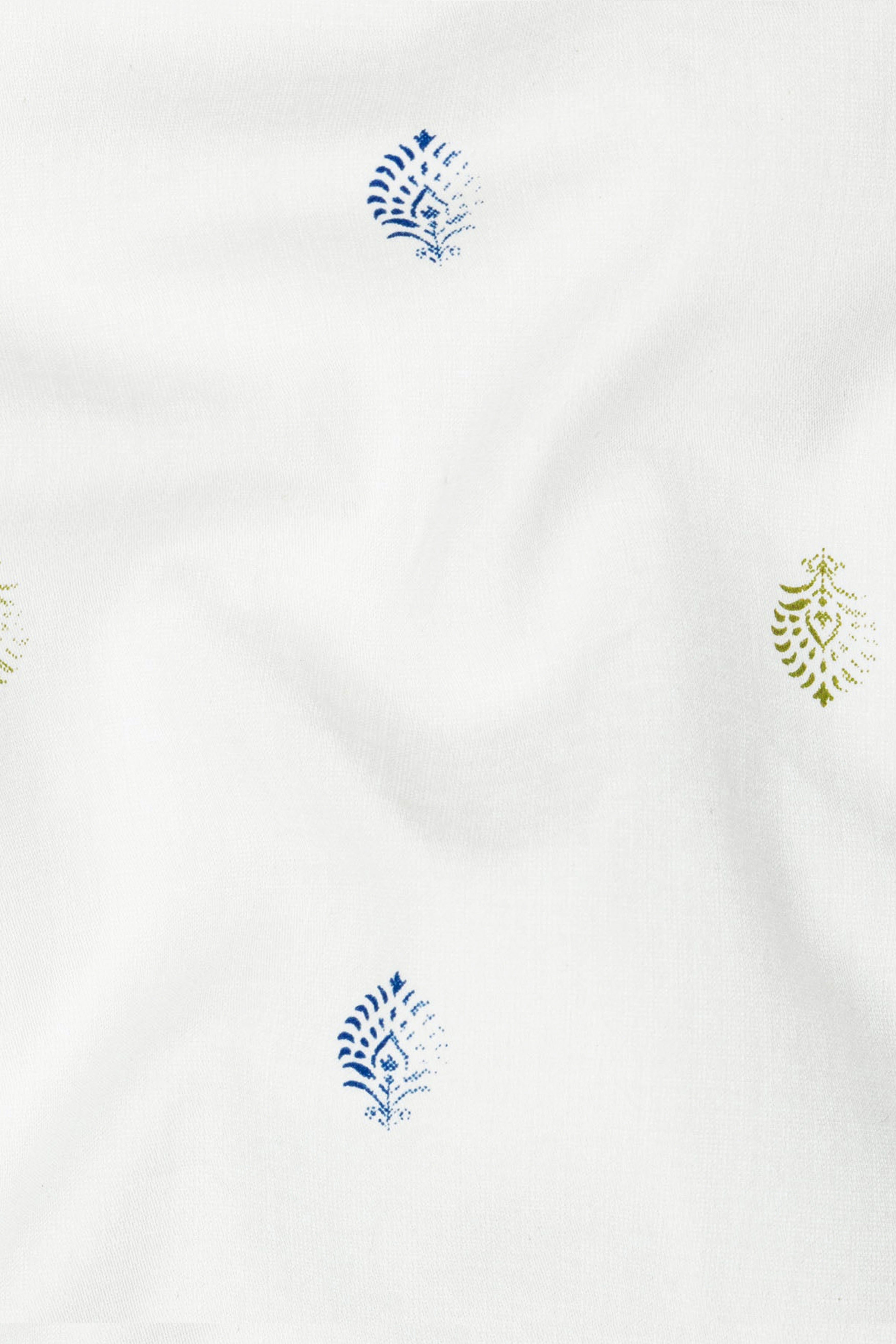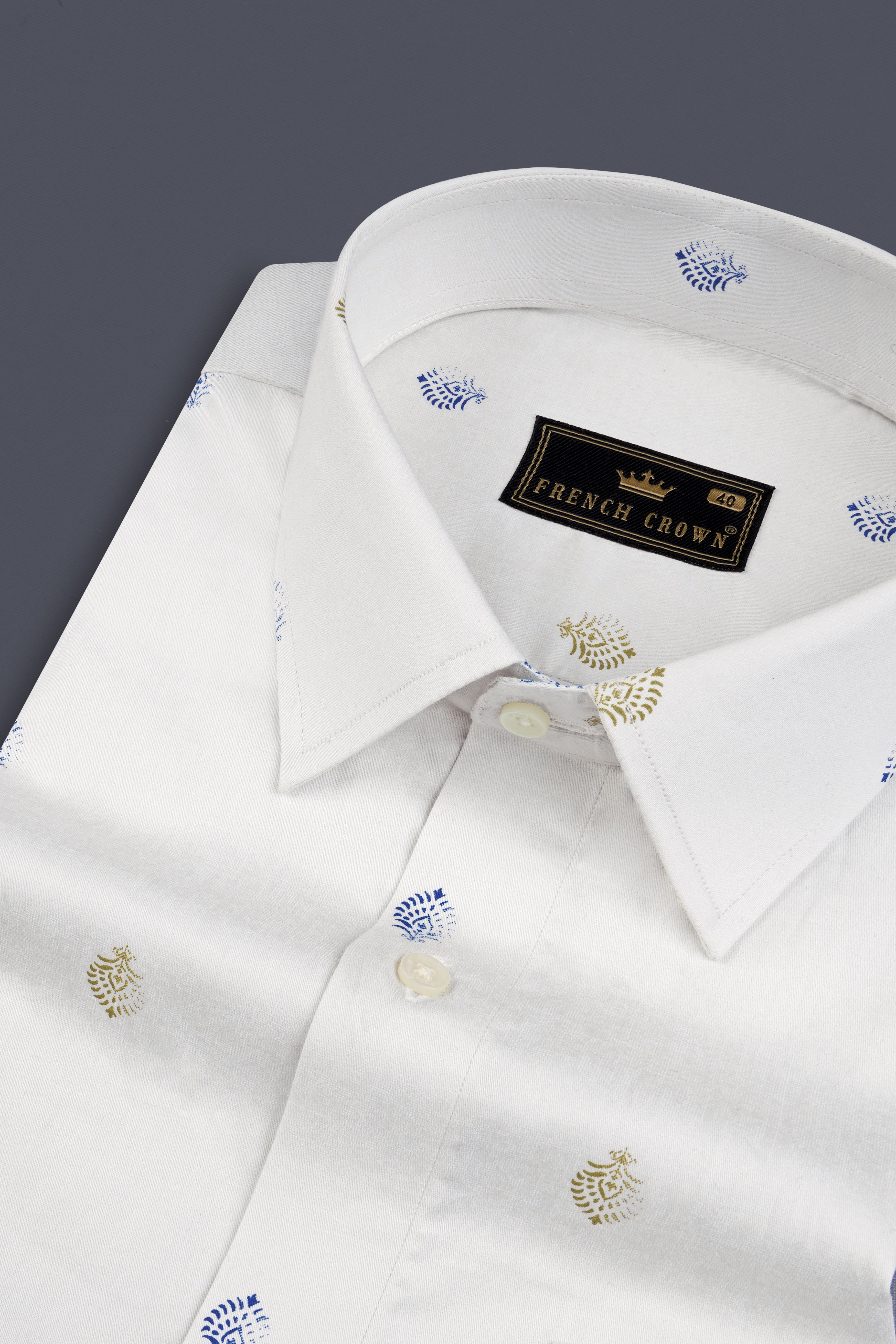 Bone Cream Mini Leaves Printed Giza Cotton Designer Shirt