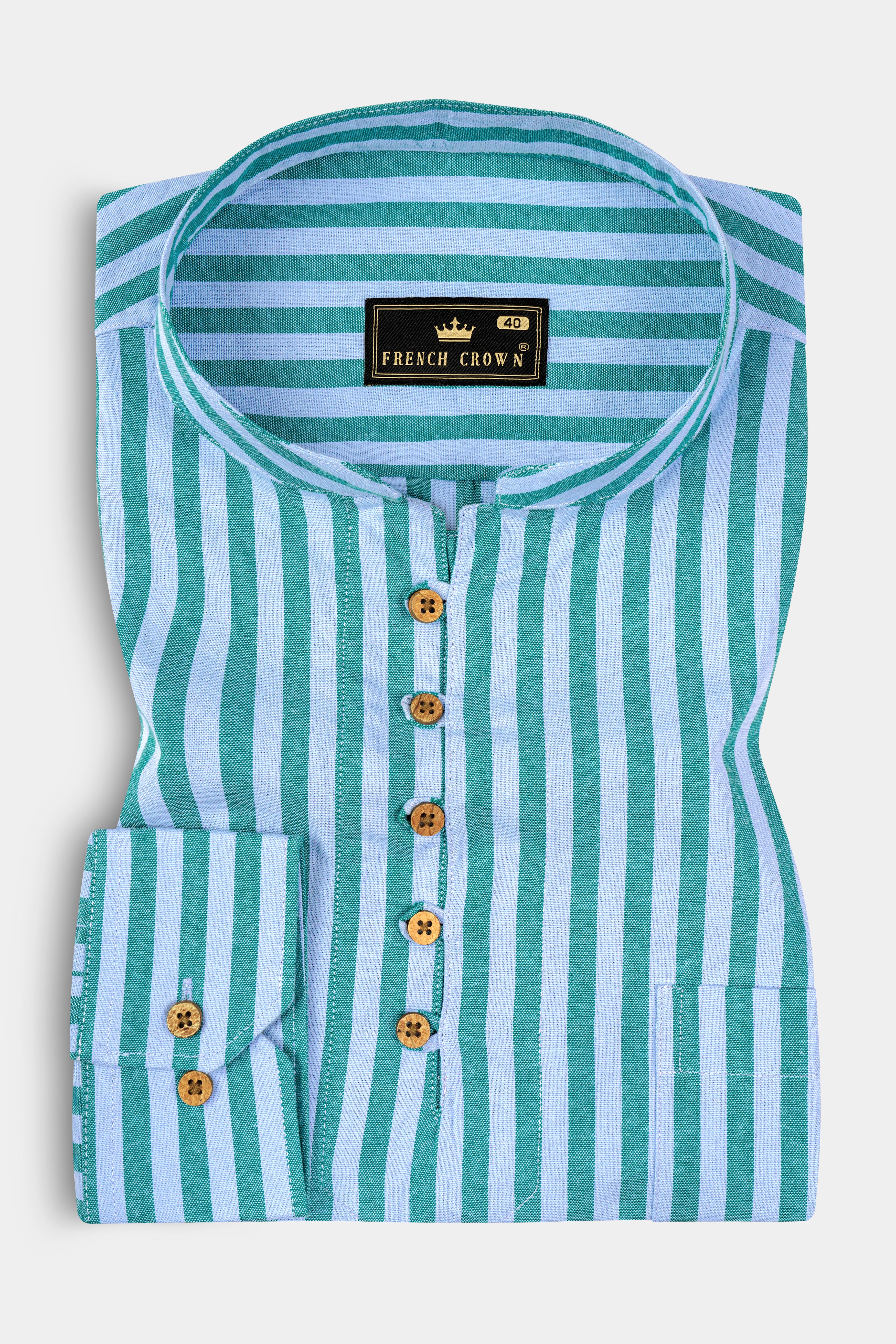 Tropical Blue And Ocean Green Striped Royal Oxford Premium Cotton Shirt