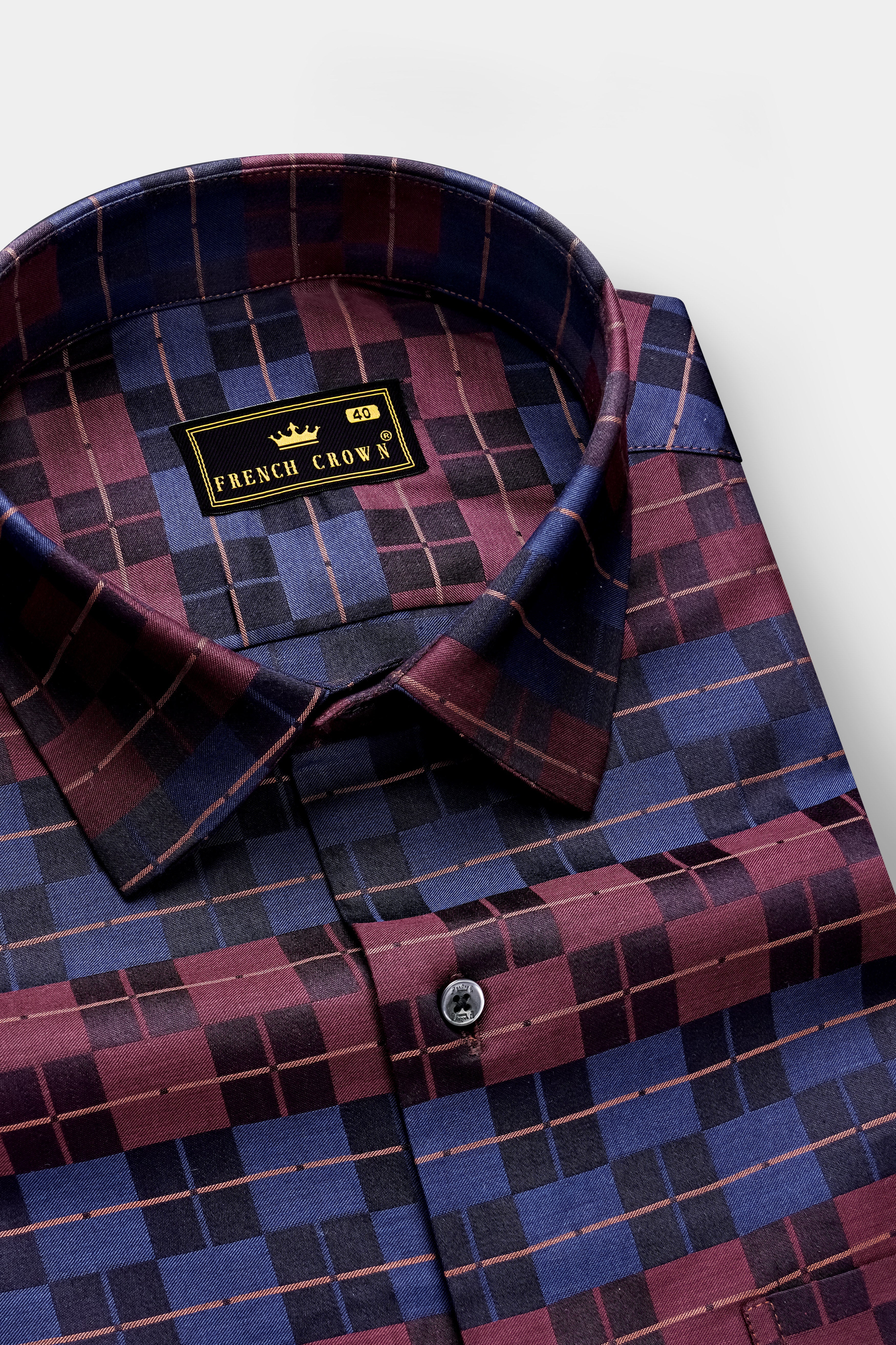 Autumn-Boysenberry Maroon And Kashmir Blue Jacquard Textured Premium Cotton Dress Shirt