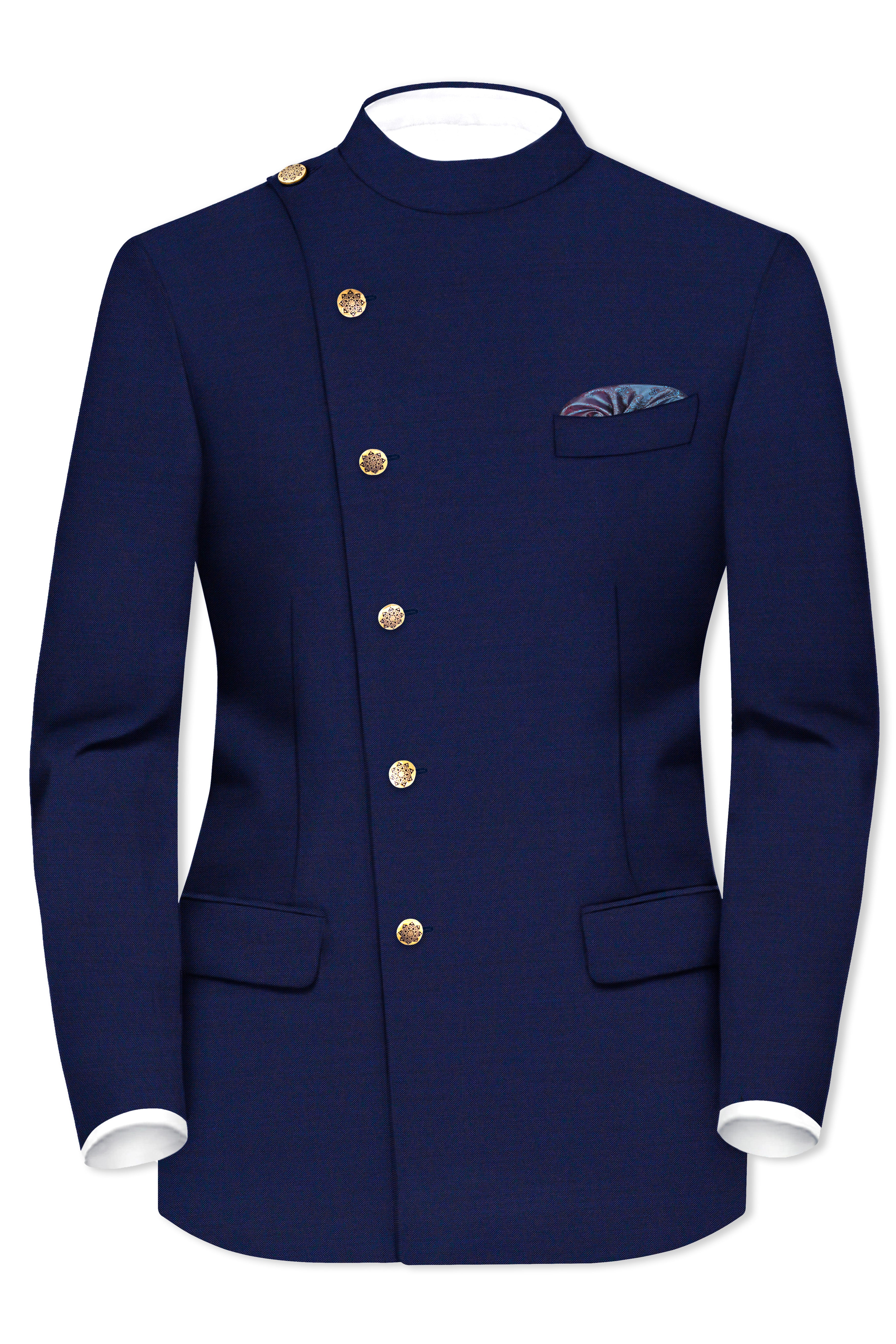 Gunmetal Blue Cross Placket Bandhgala Blazer