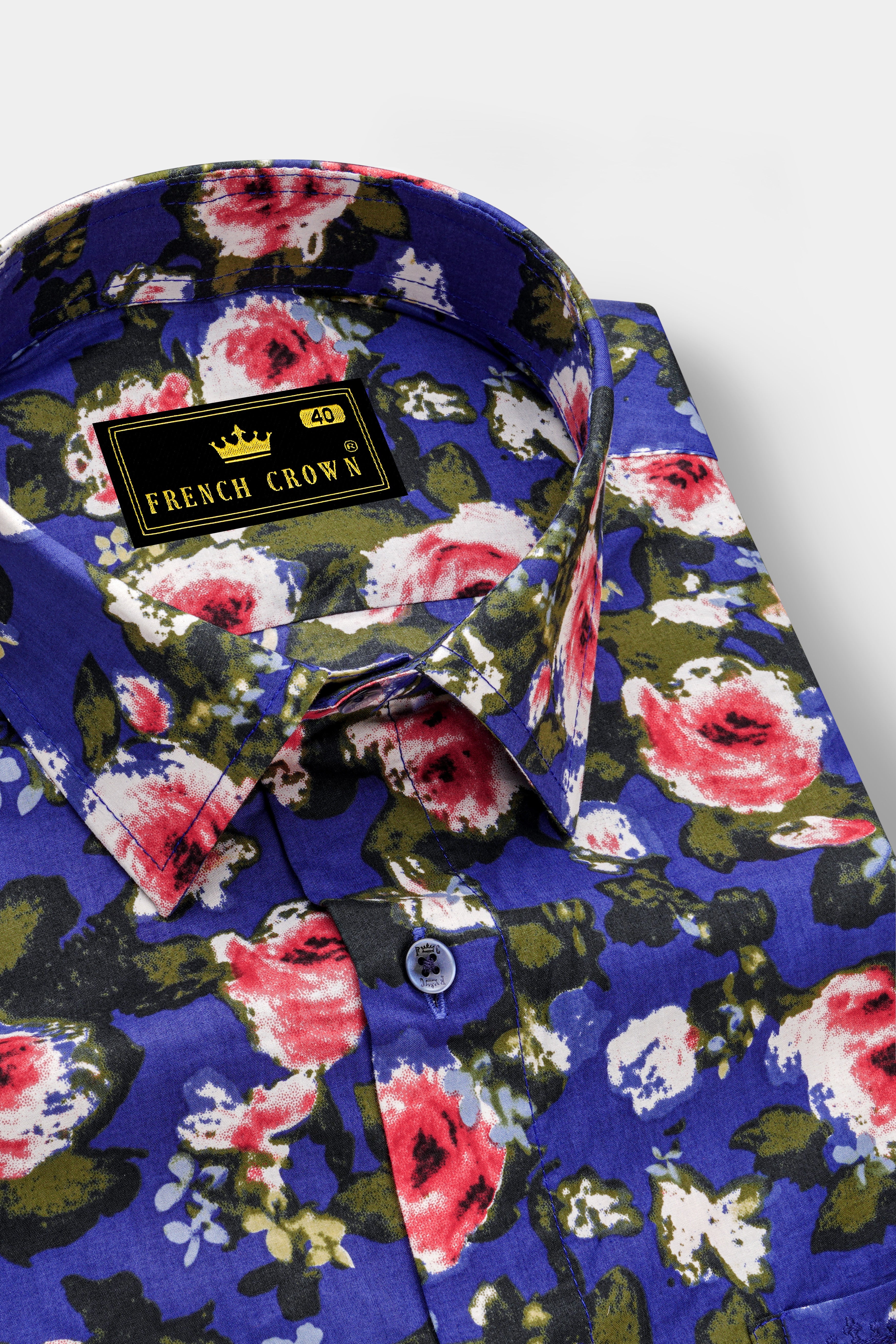 Bastille Blue Fish Printed Chambray Textured Premium Cotton ShirtBastille Blue Fish Printed Chambray Textured Premium Cotton Shirt