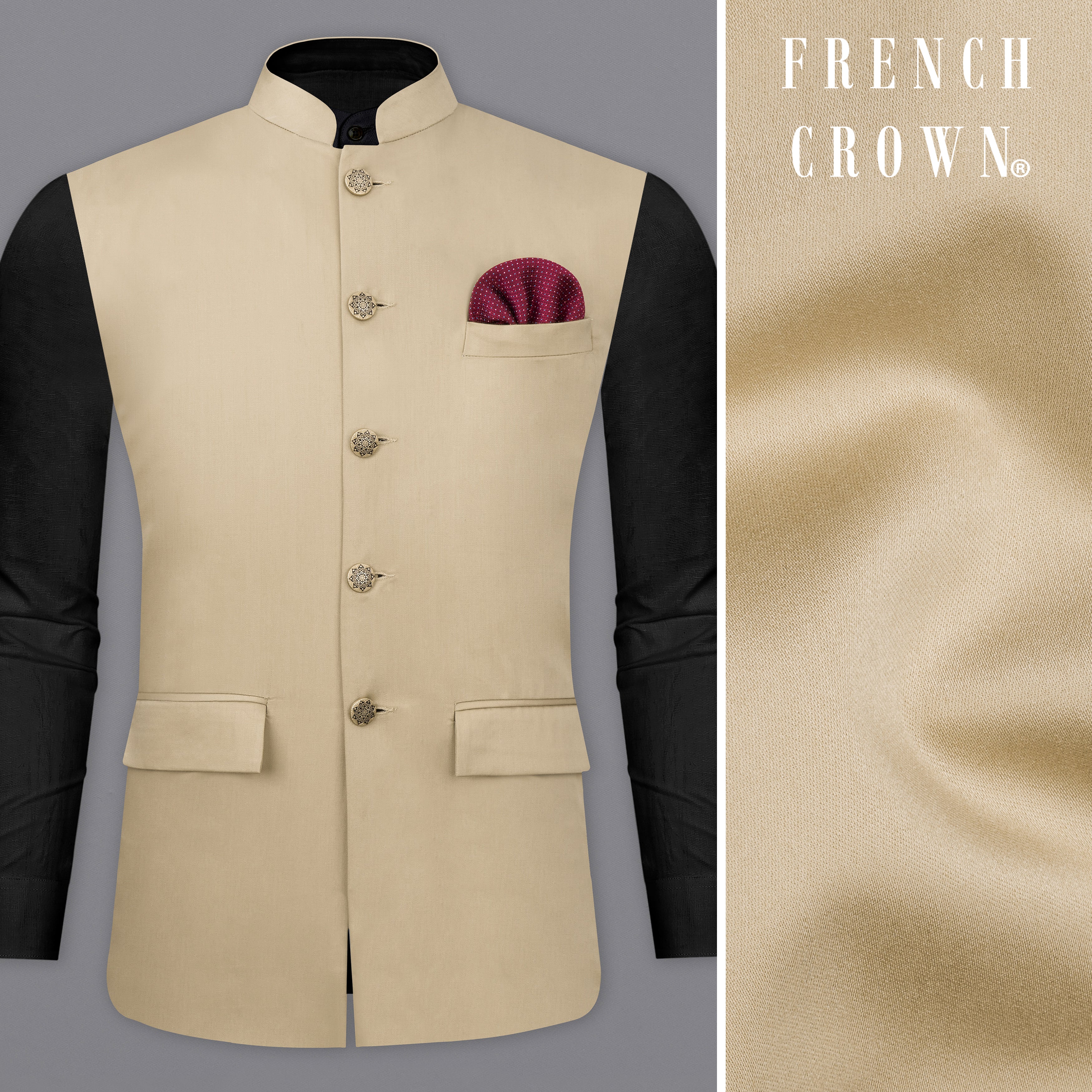Hazelnut Cream Subtle Sheen Wool rich Nehru Jacket