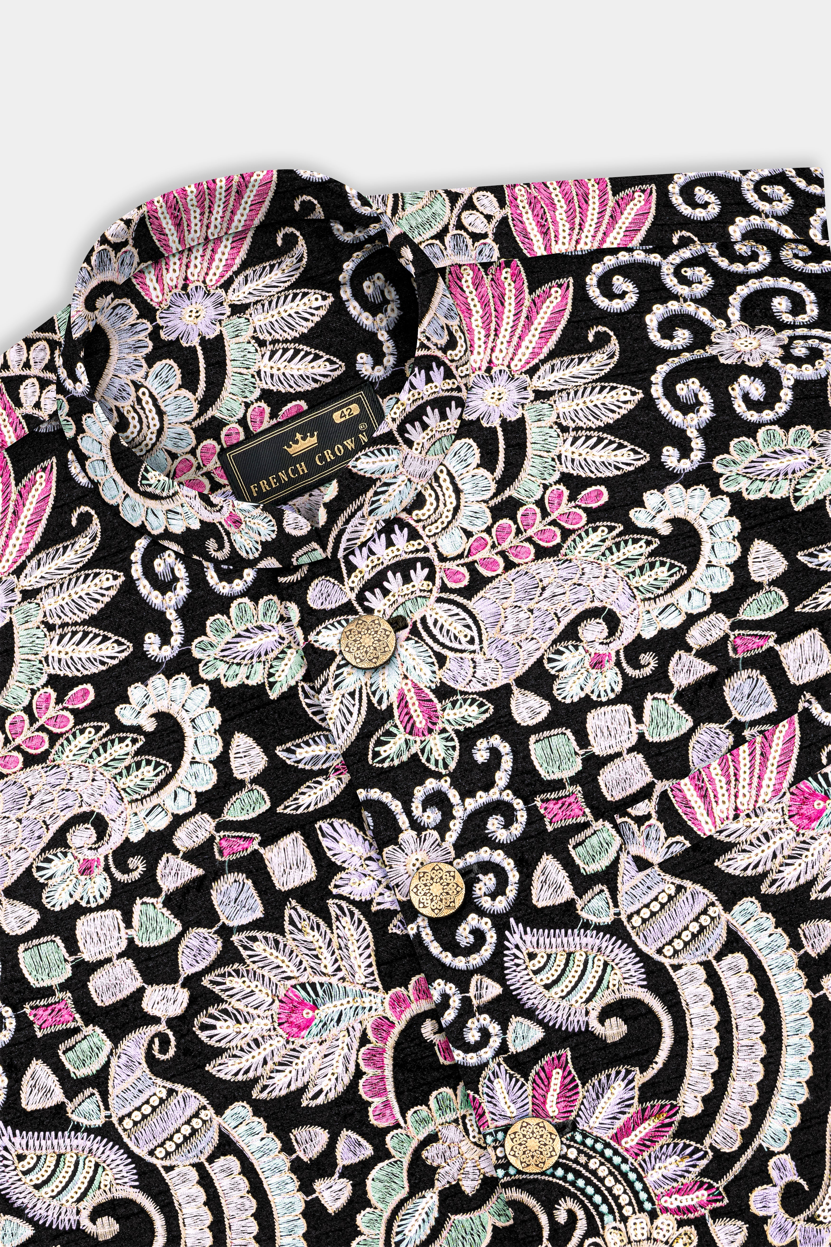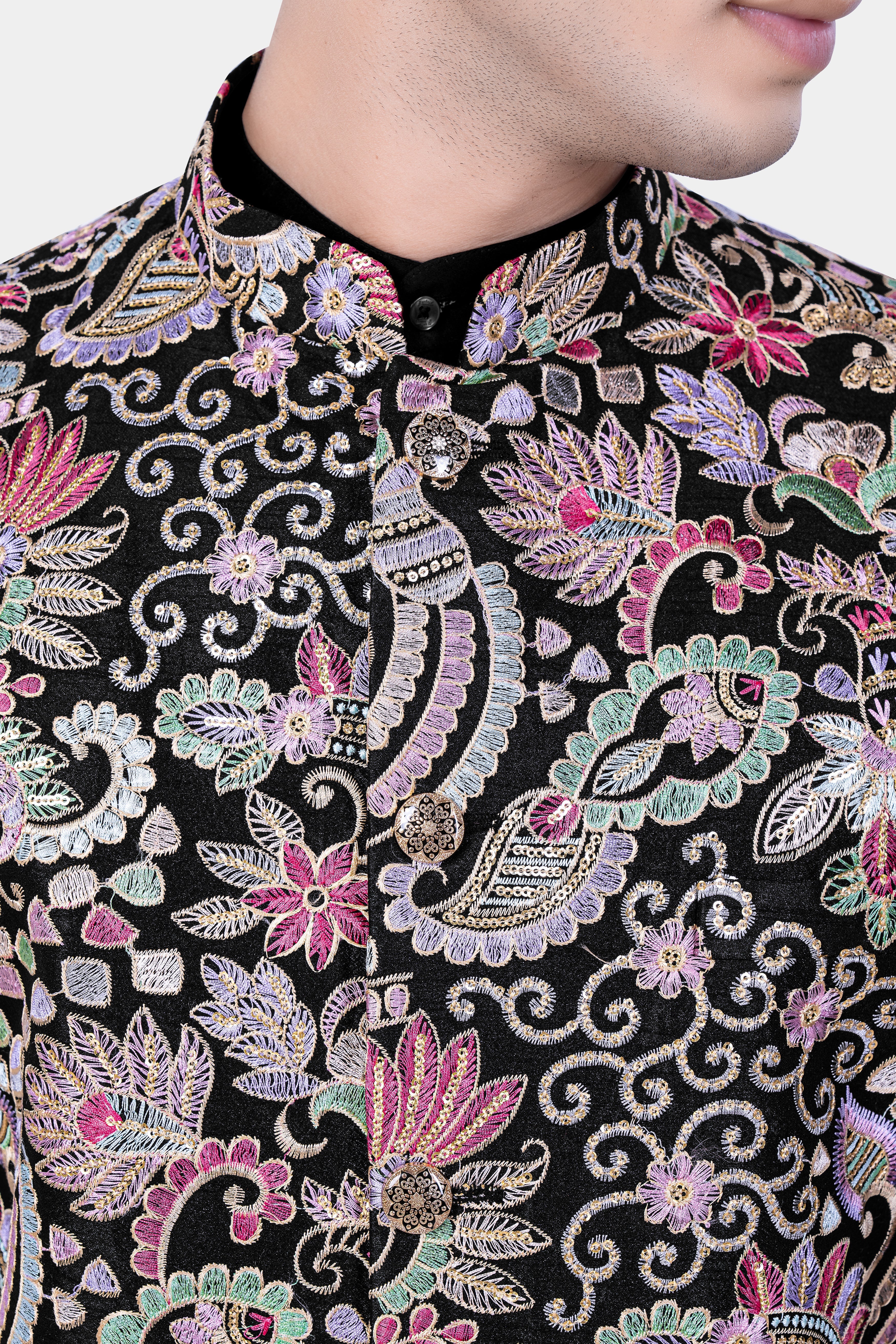 Jade Black And Amethyst Purple MultiColour Designer Embroidered Nehru Jacket Sale price$69 USD Regular price$161 USD57%