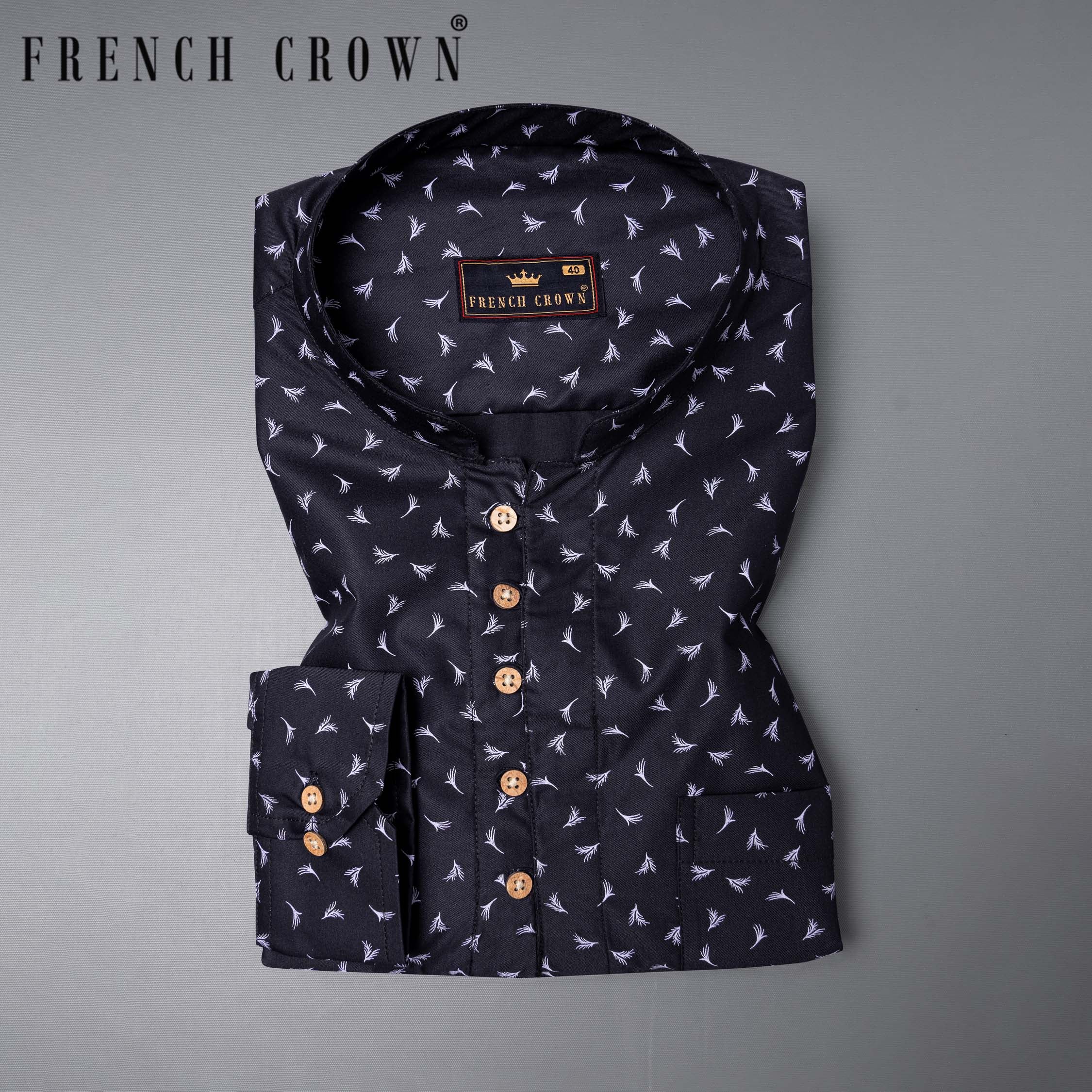 French Crown presents a printed jade black dress shirt designed for formal to casual occasions. Crafted in pure cotton, it features full sleeves with a mandarin shirt collar for a sophisticated appeal. It is best paired with dark-colored trousers for a relaxed and comfortable look and feel.