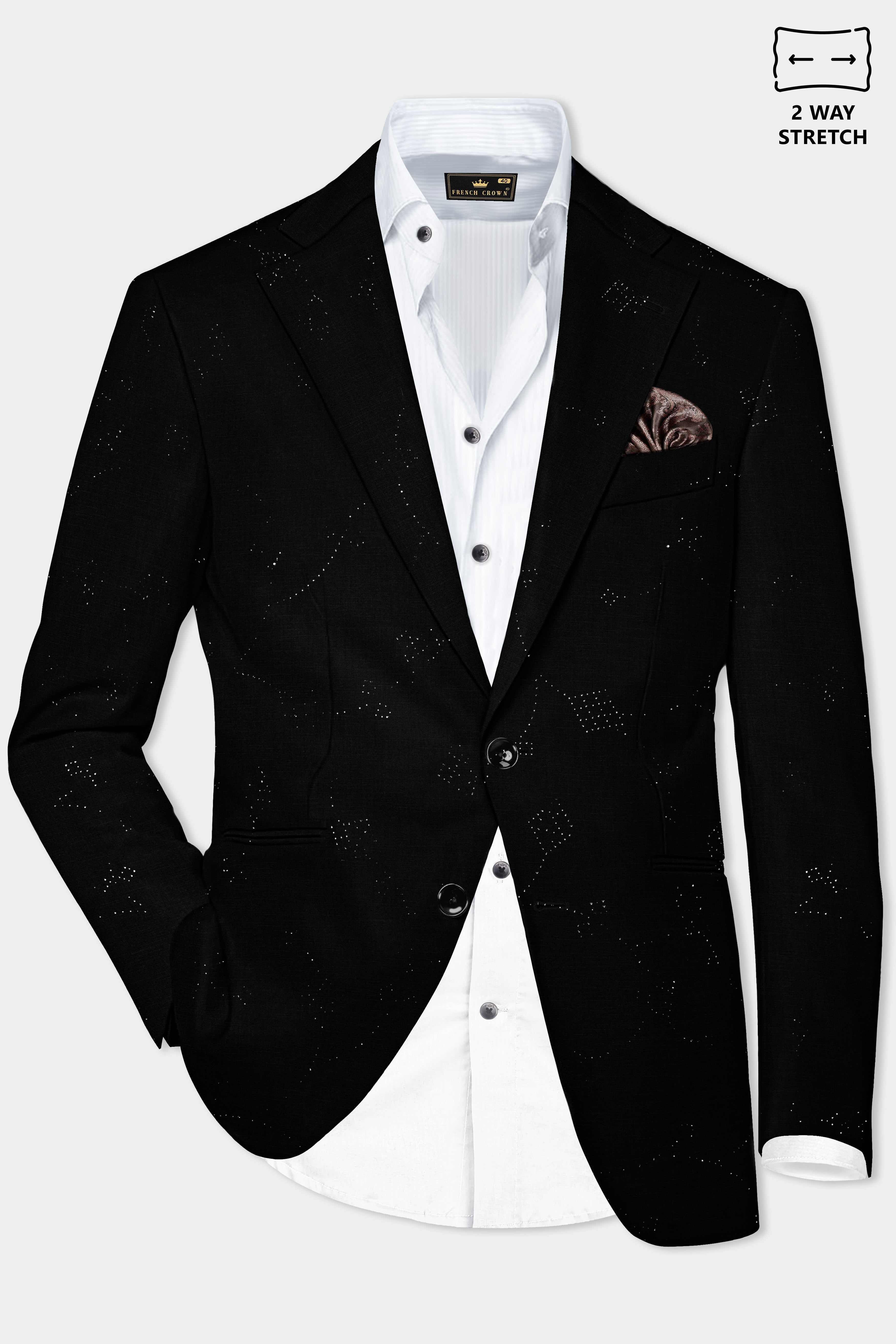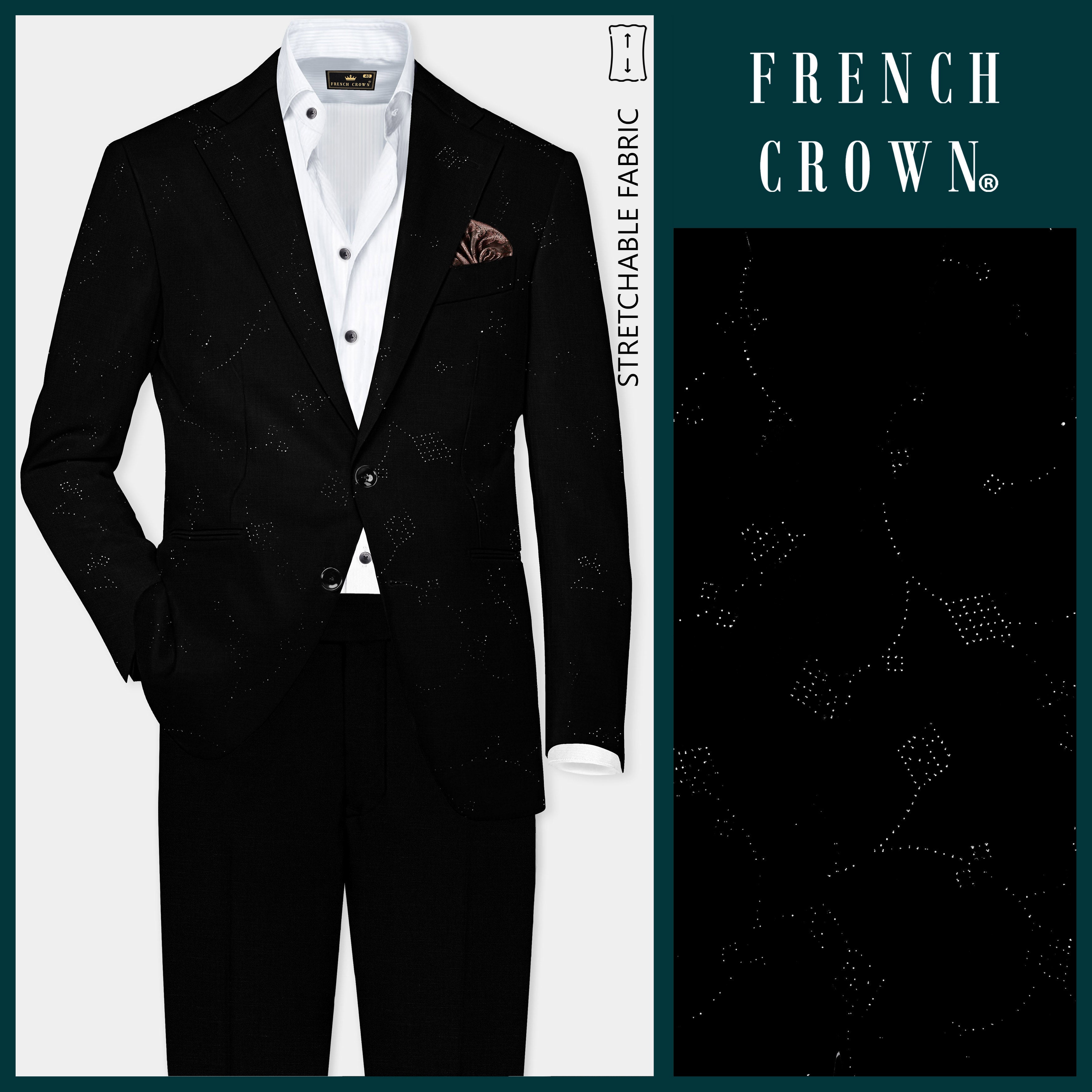 Jade Black Stretchable Tikki Work Wool Rich Designer Suit