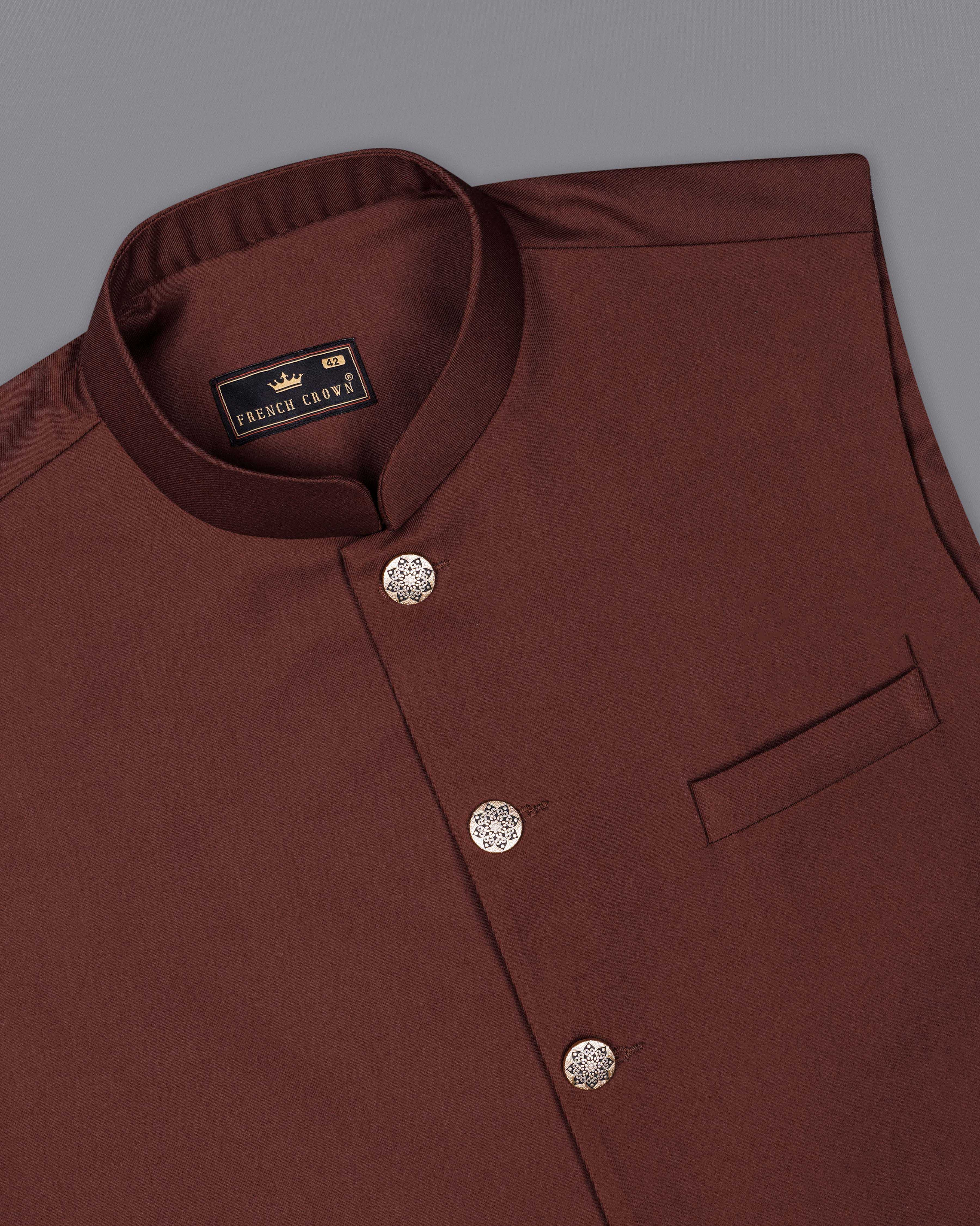 Lonestar Brown Solid Bandhgala Nehru Jacket