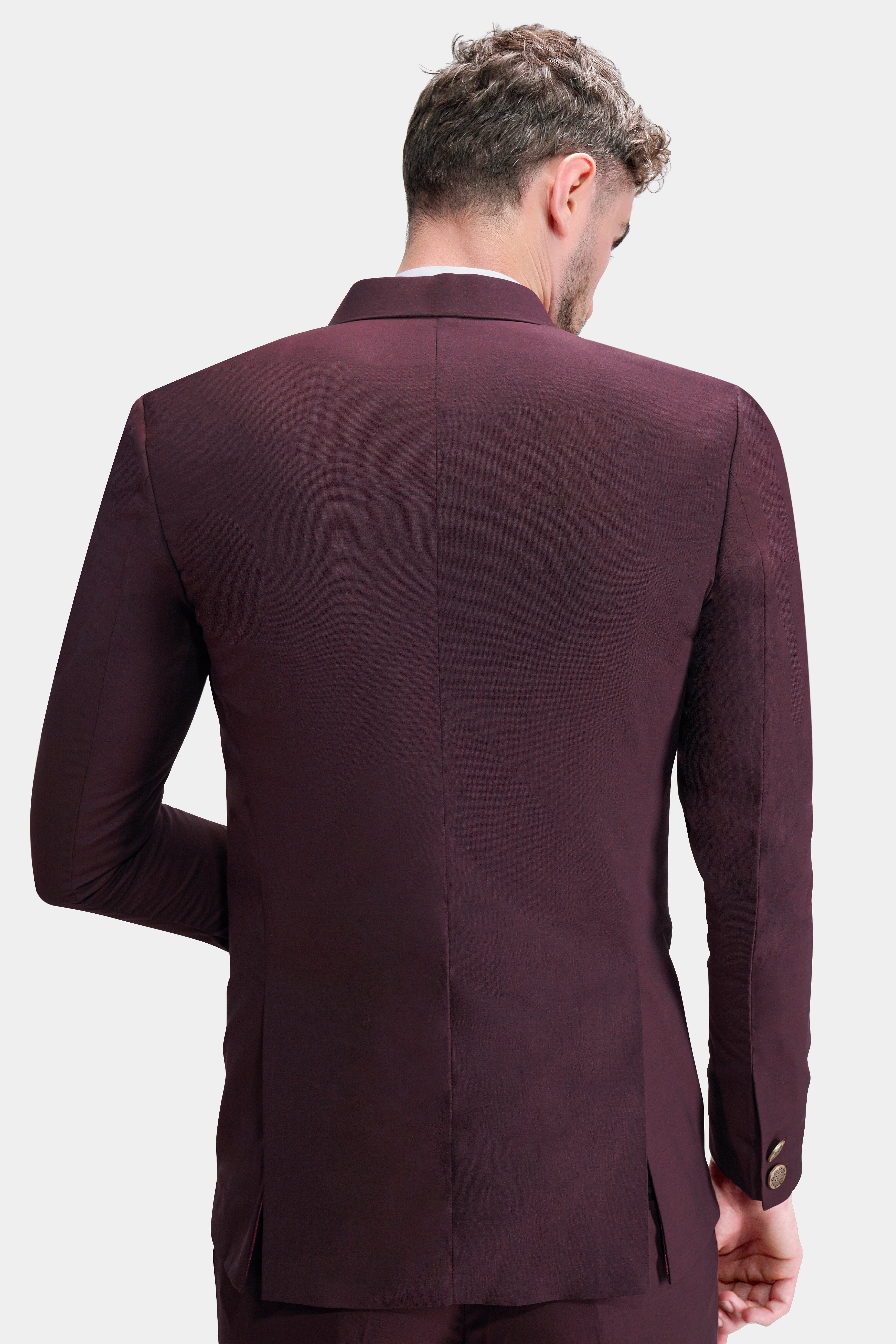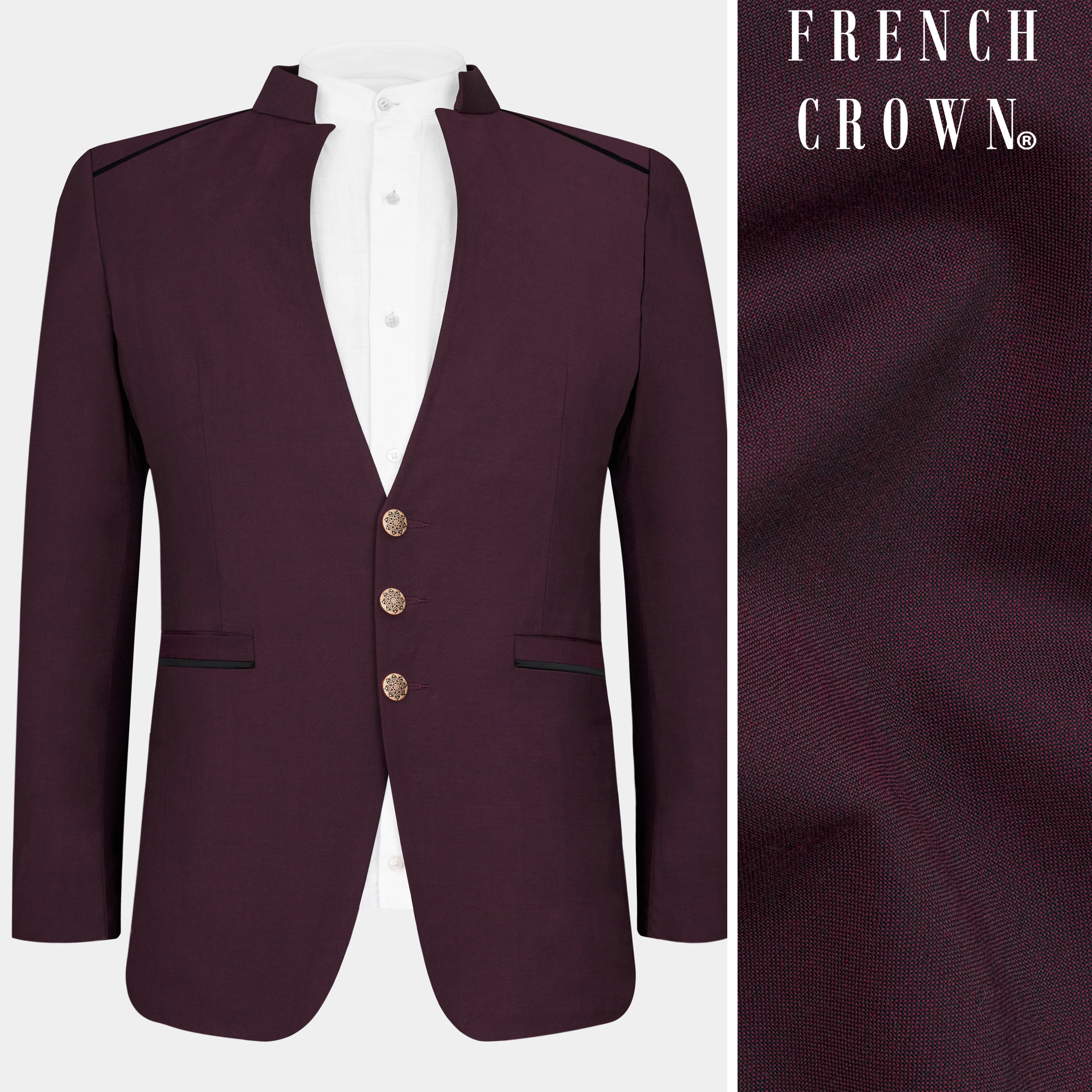 Viscara-Aubergine Maroon Geometric Pattern Thread Embroidered Viscose Designer Tuxedo BlazerViscara-Aubergine Maroon Geometric Pattern Thread Embroidered Viscose Designer Tuxedo Blazer