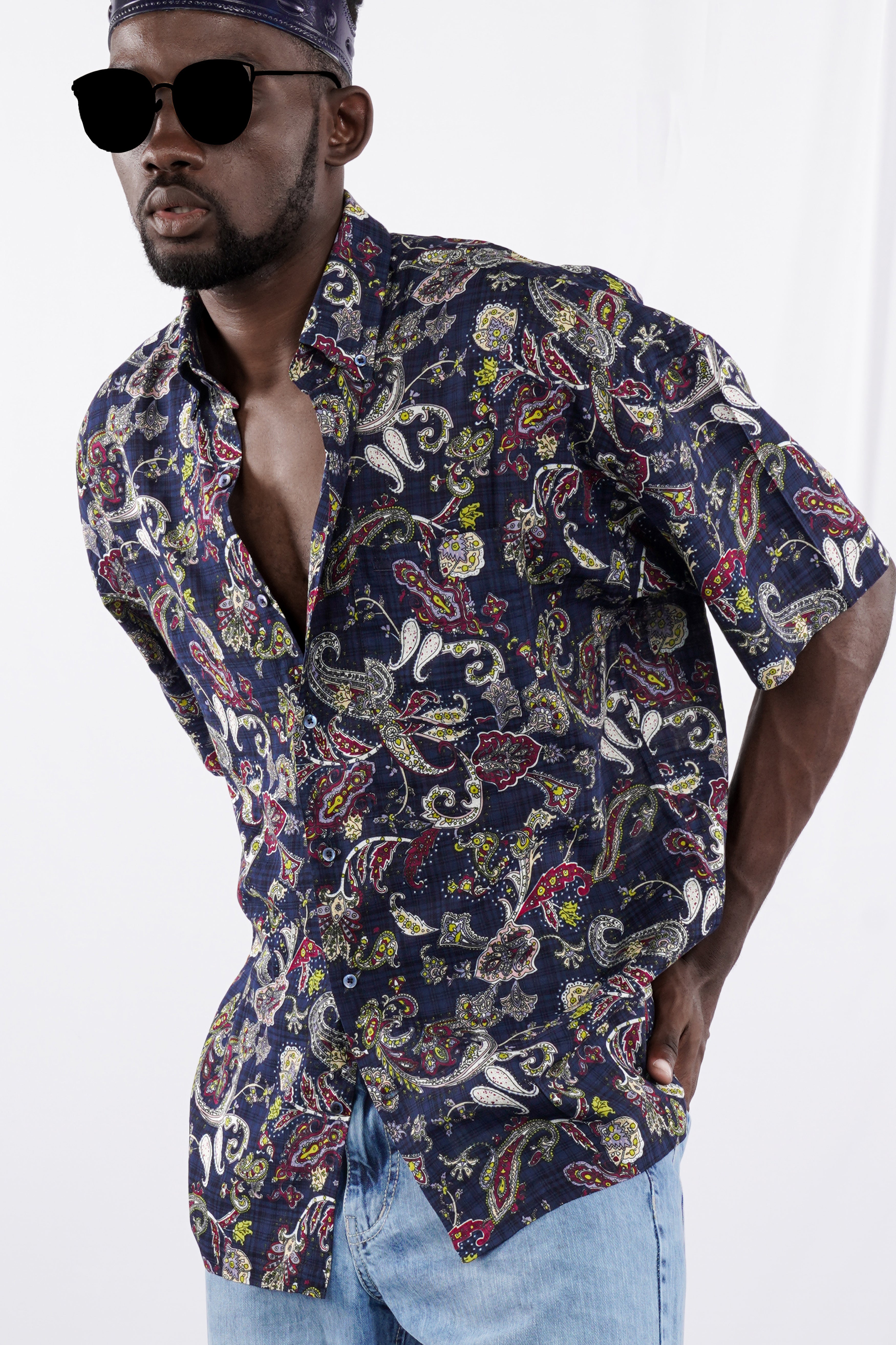 Spindle Blue And Stiletto Red Prints Subtle Sheen Super Soft Premium Cotton Shirt