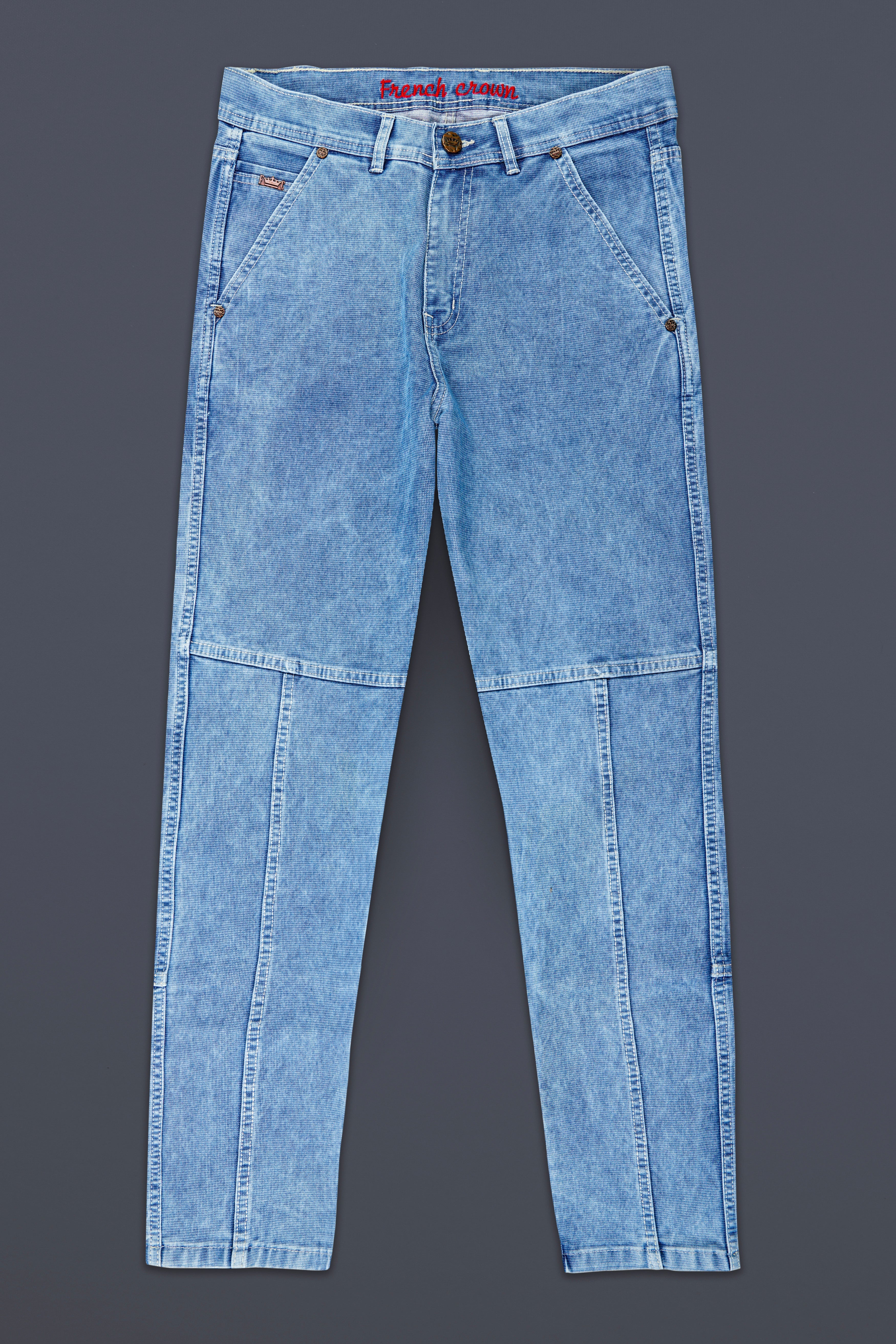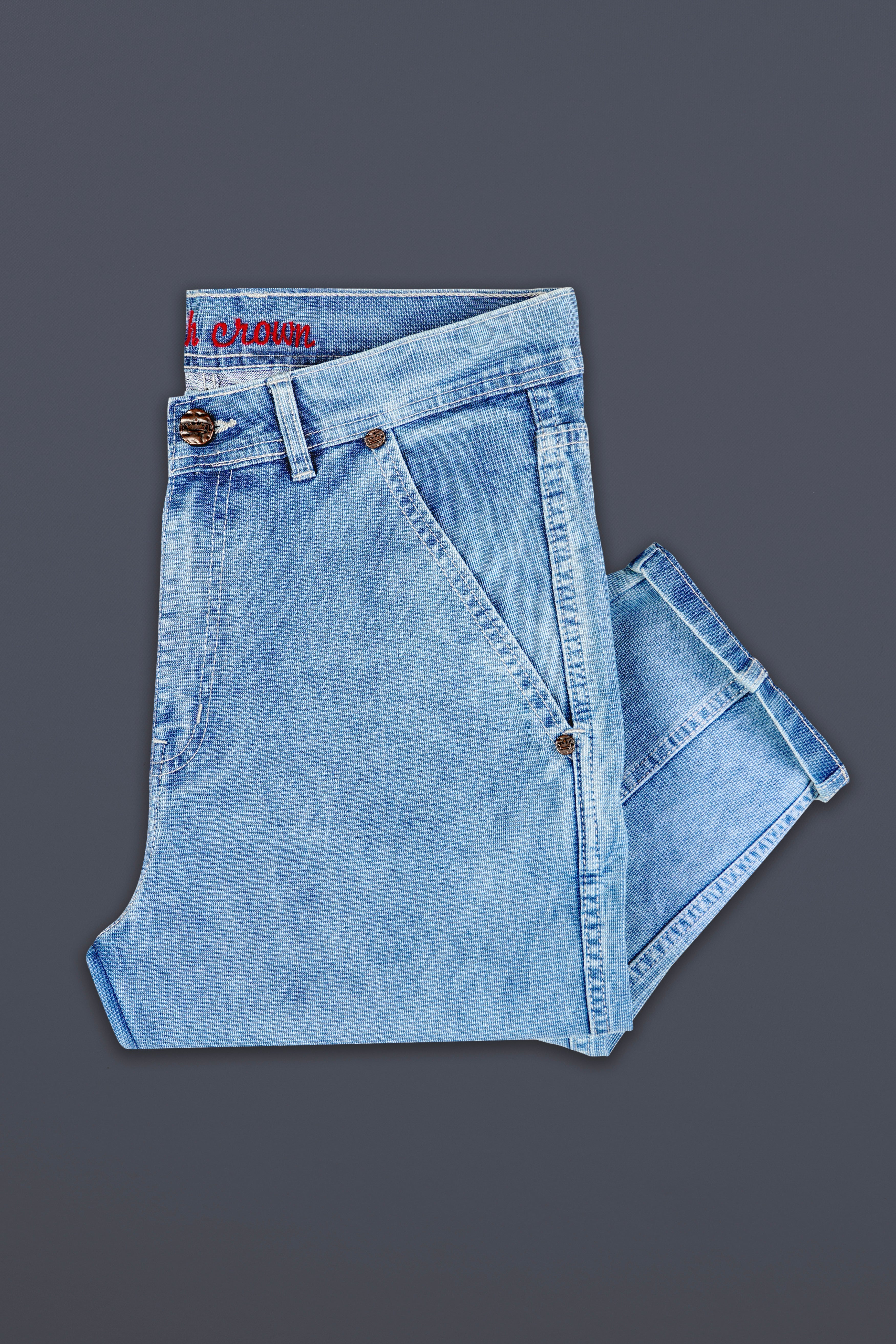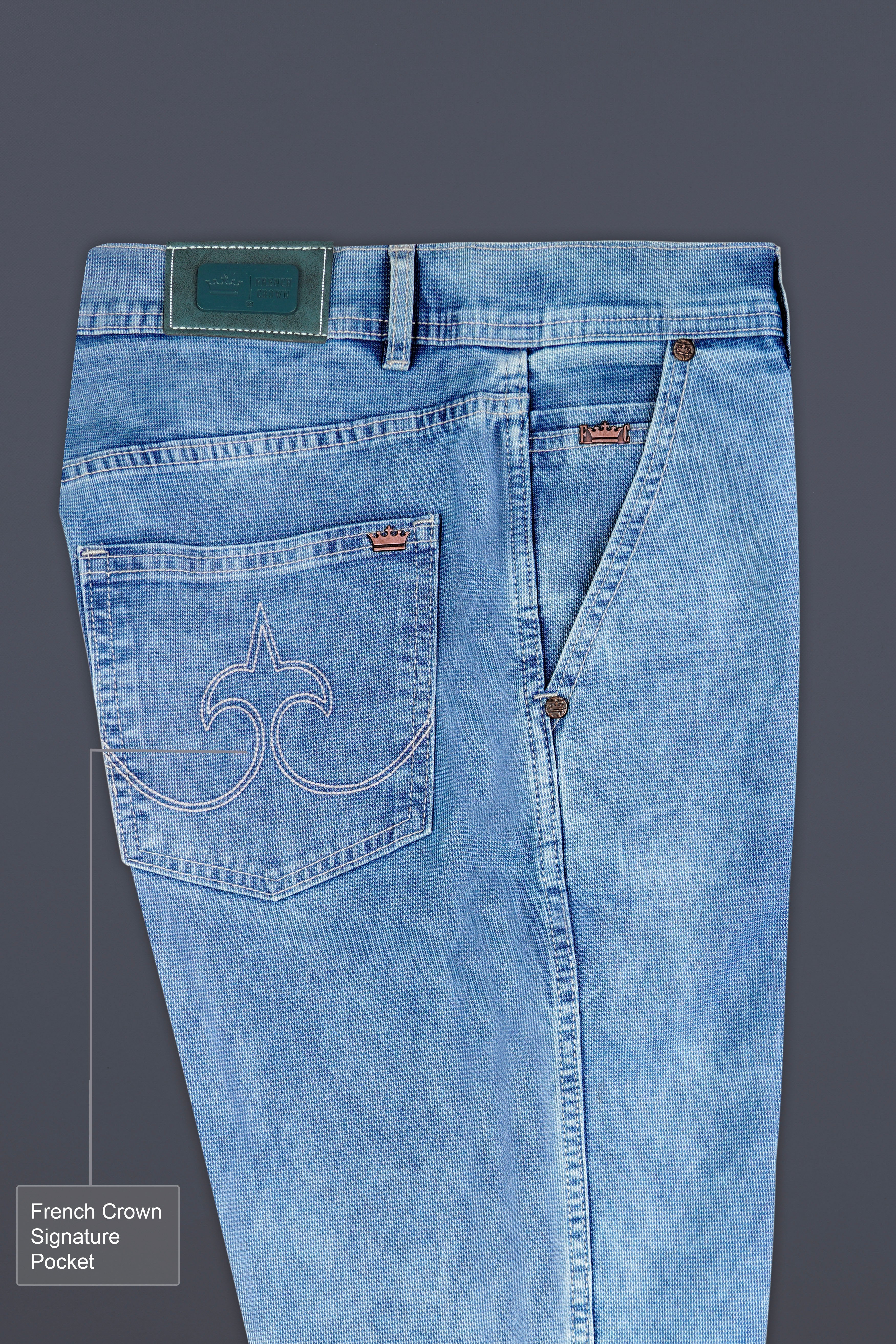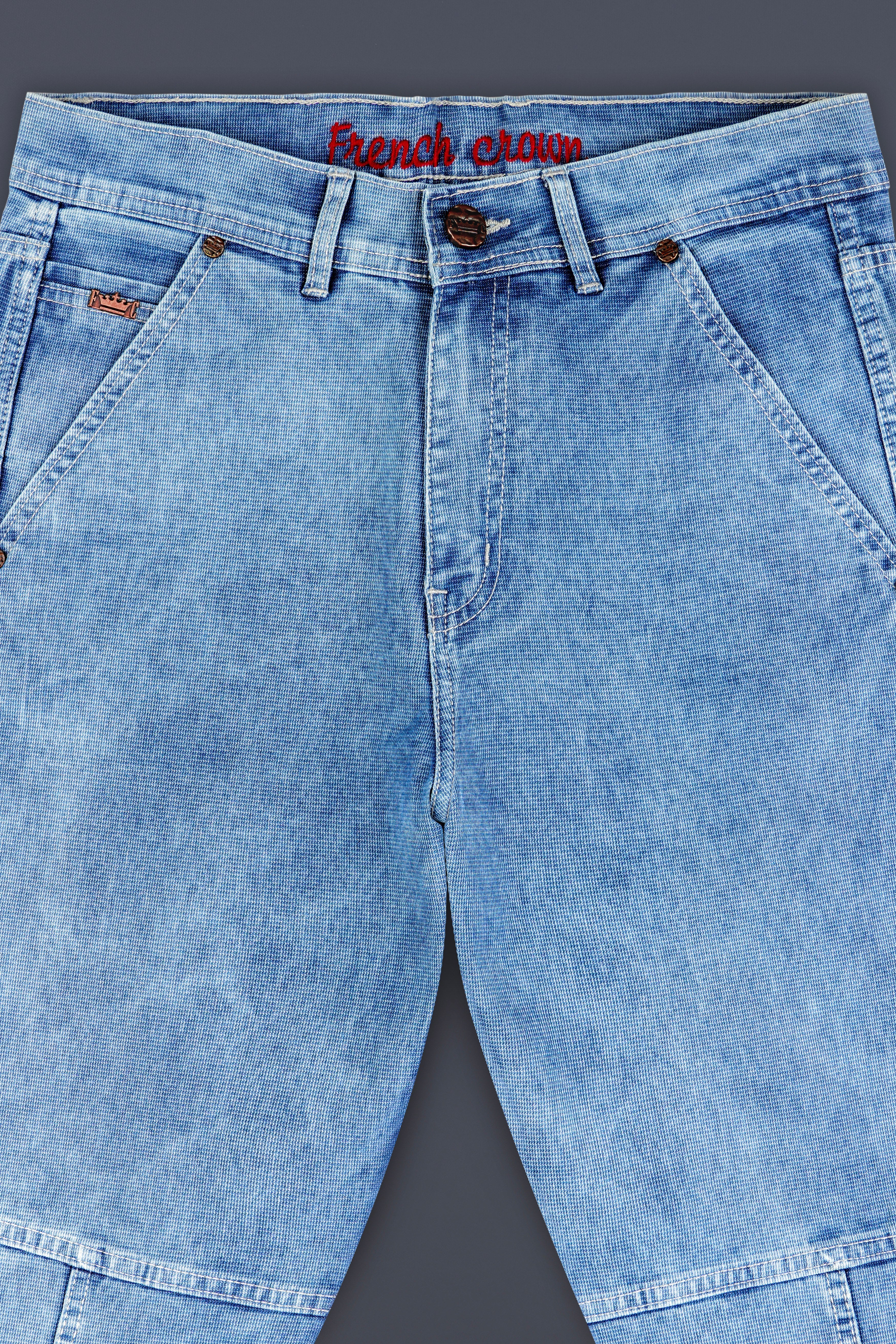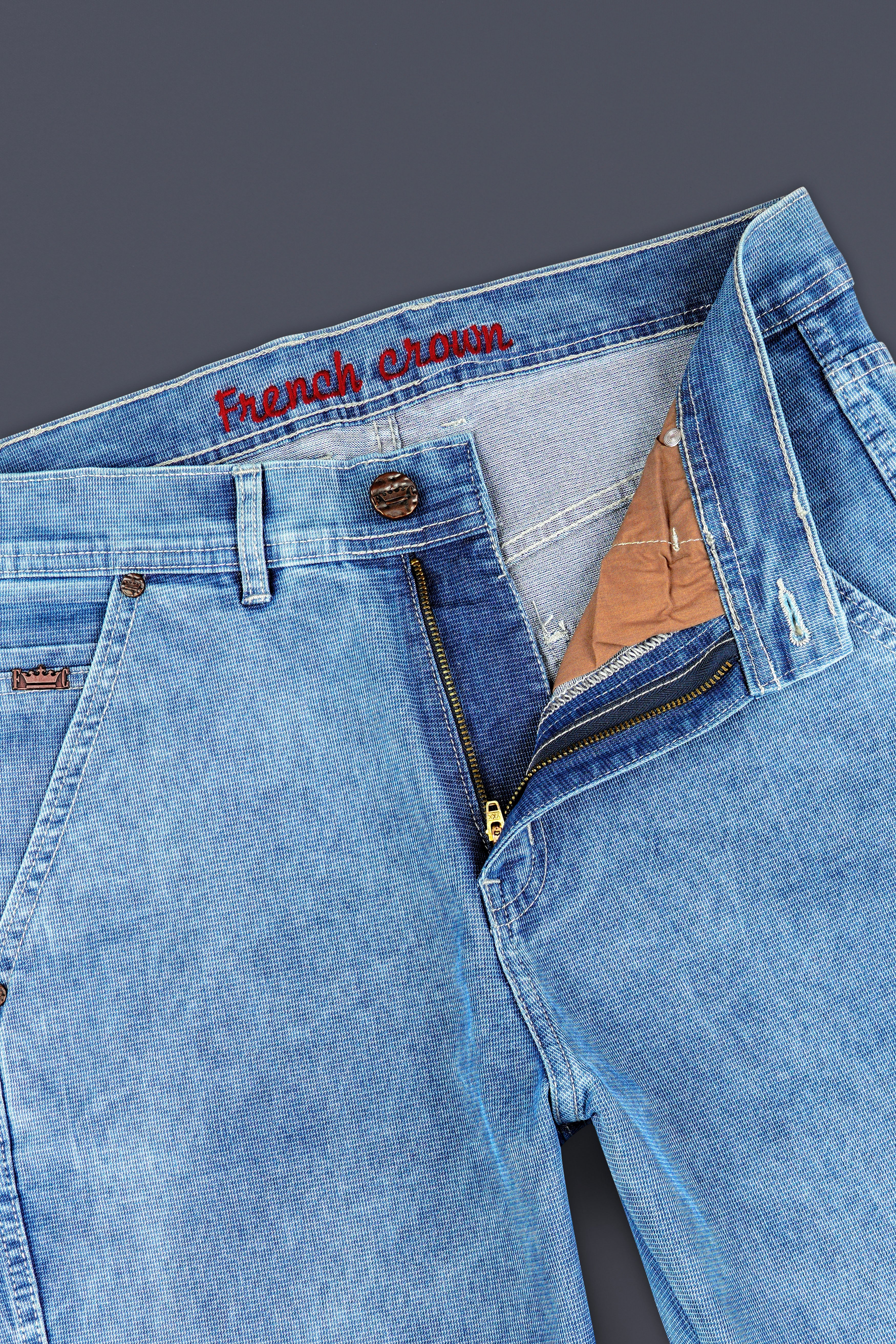 Moonstone Blue Textured Whiskering Wash Stretchable Denim