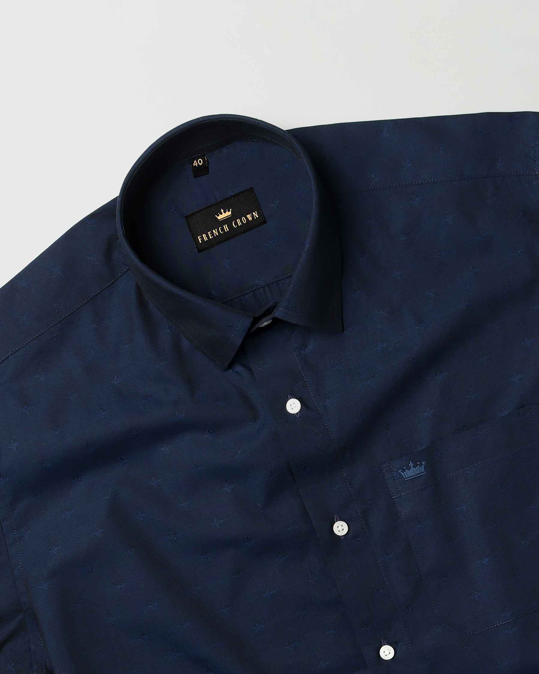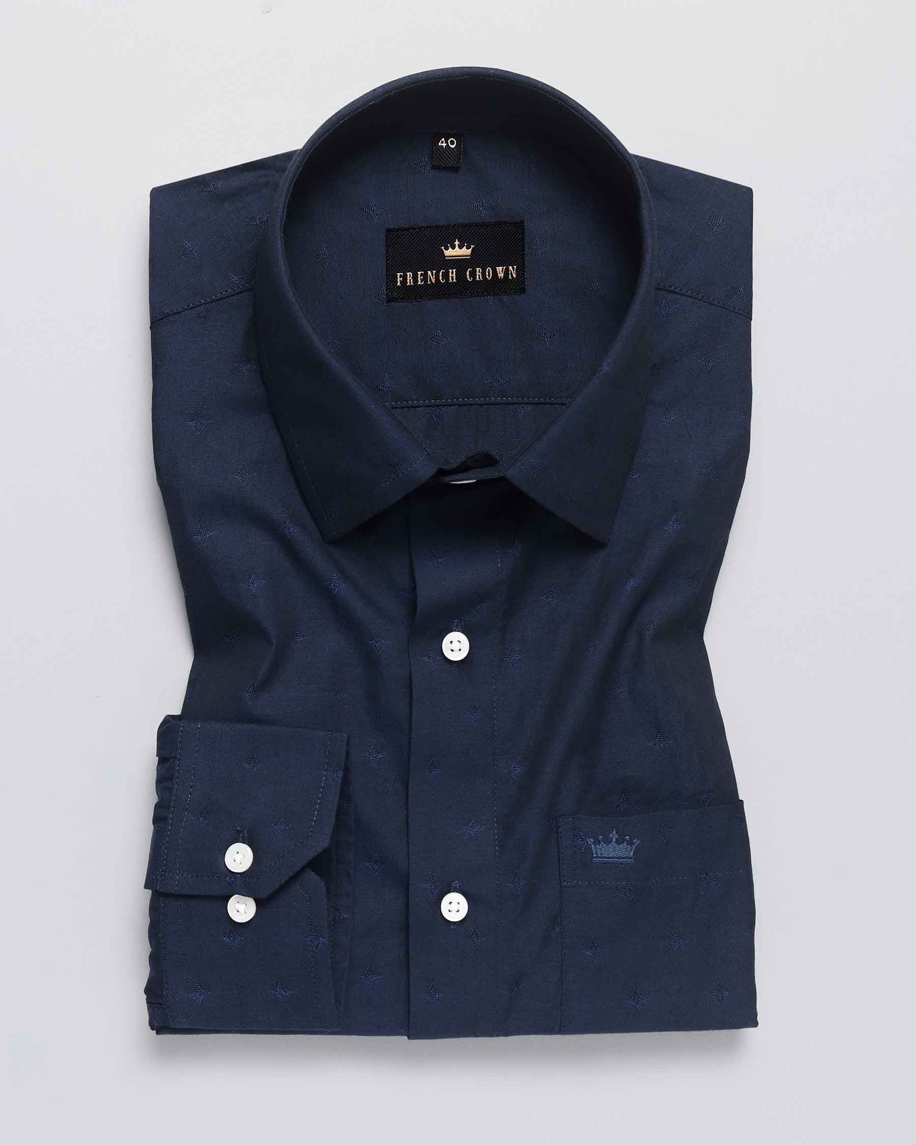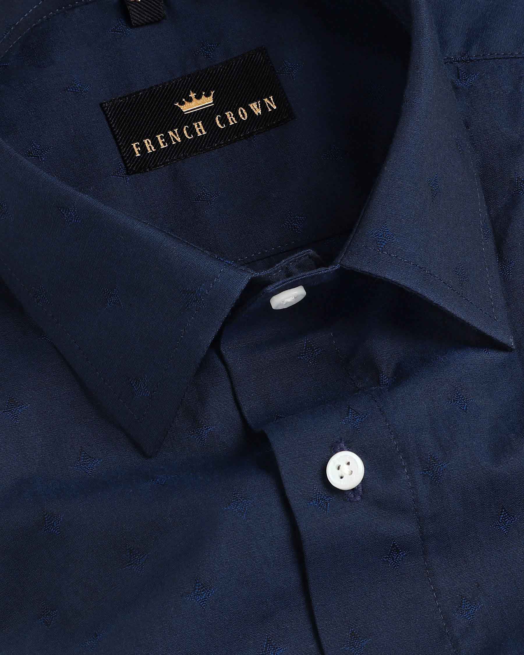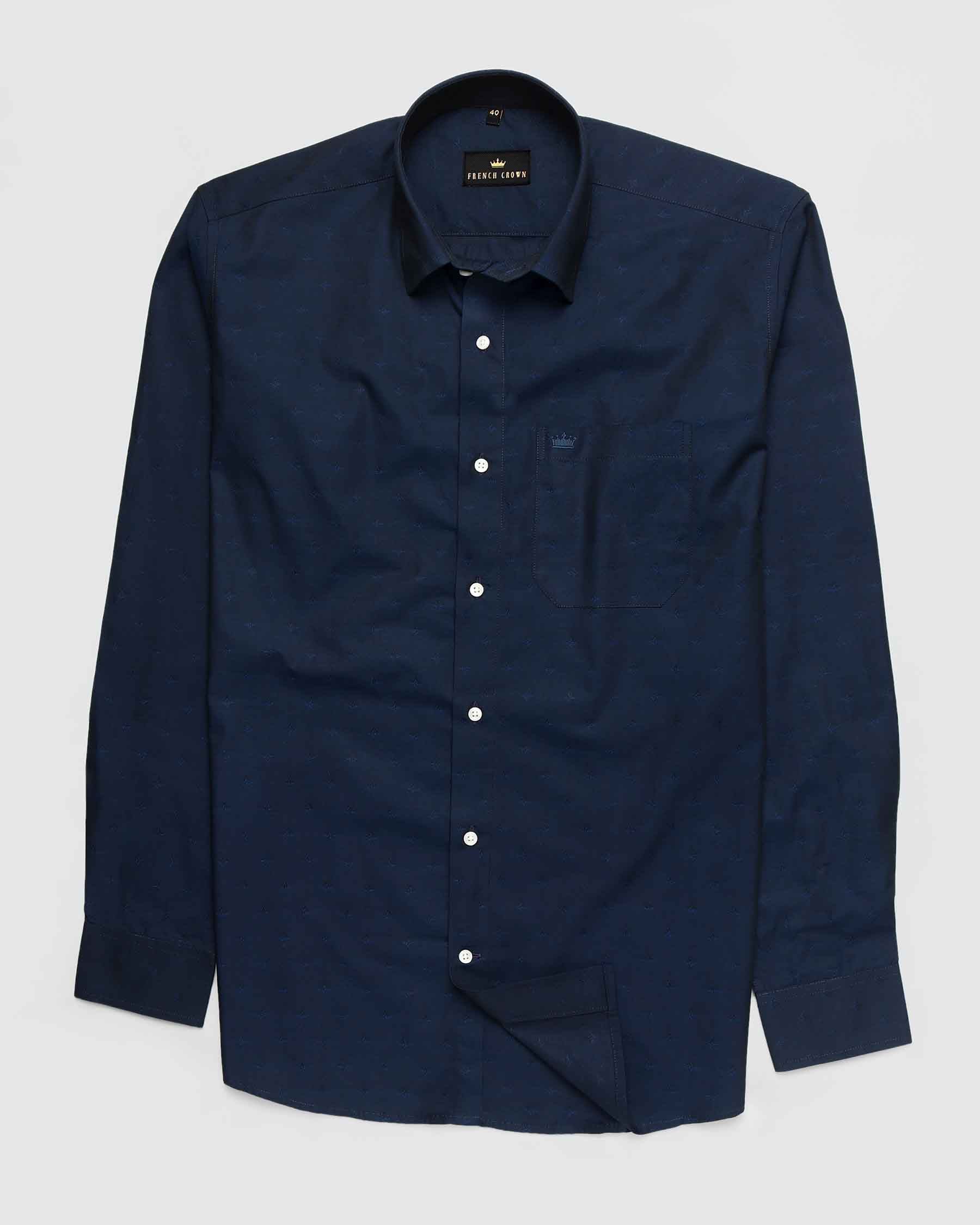 Blue Subtle Geometric Textured Giza Cotton shirt