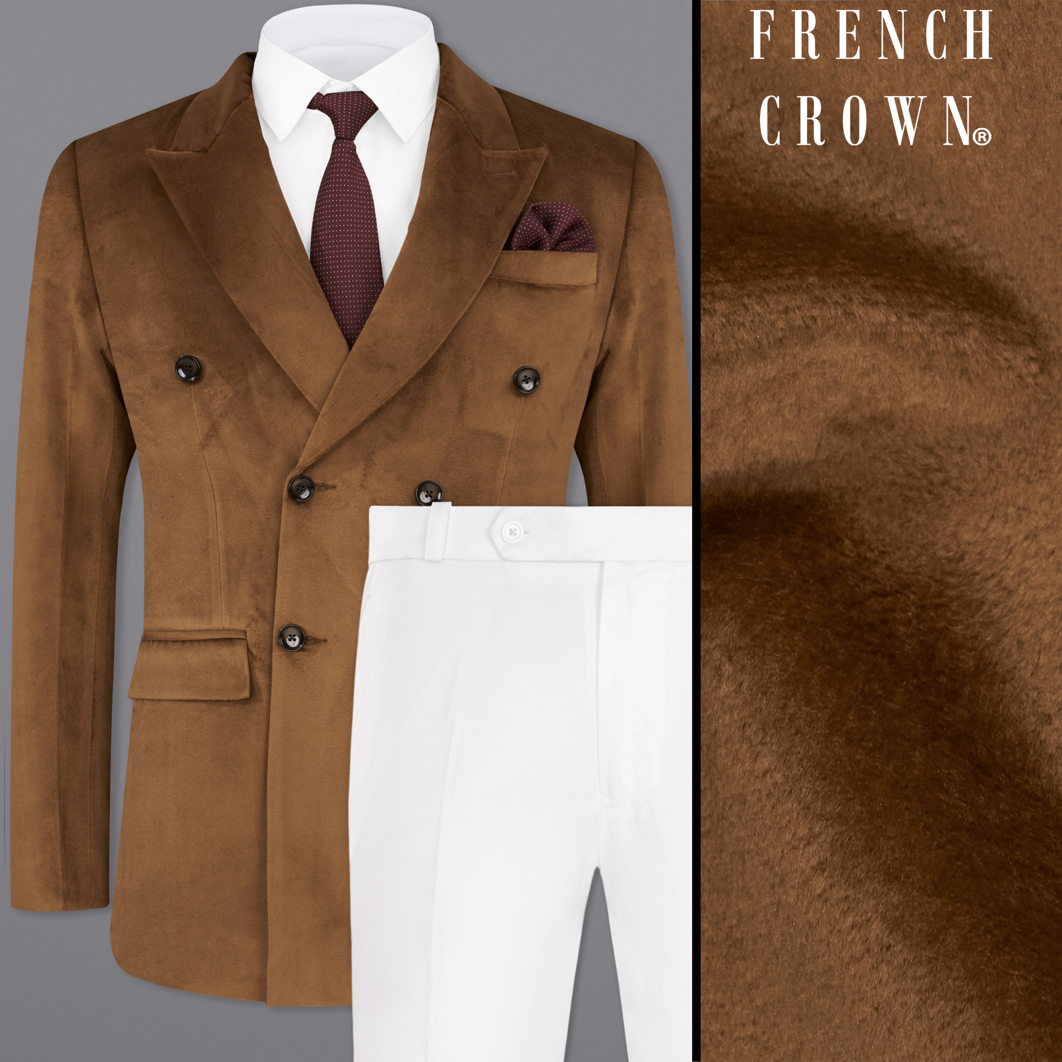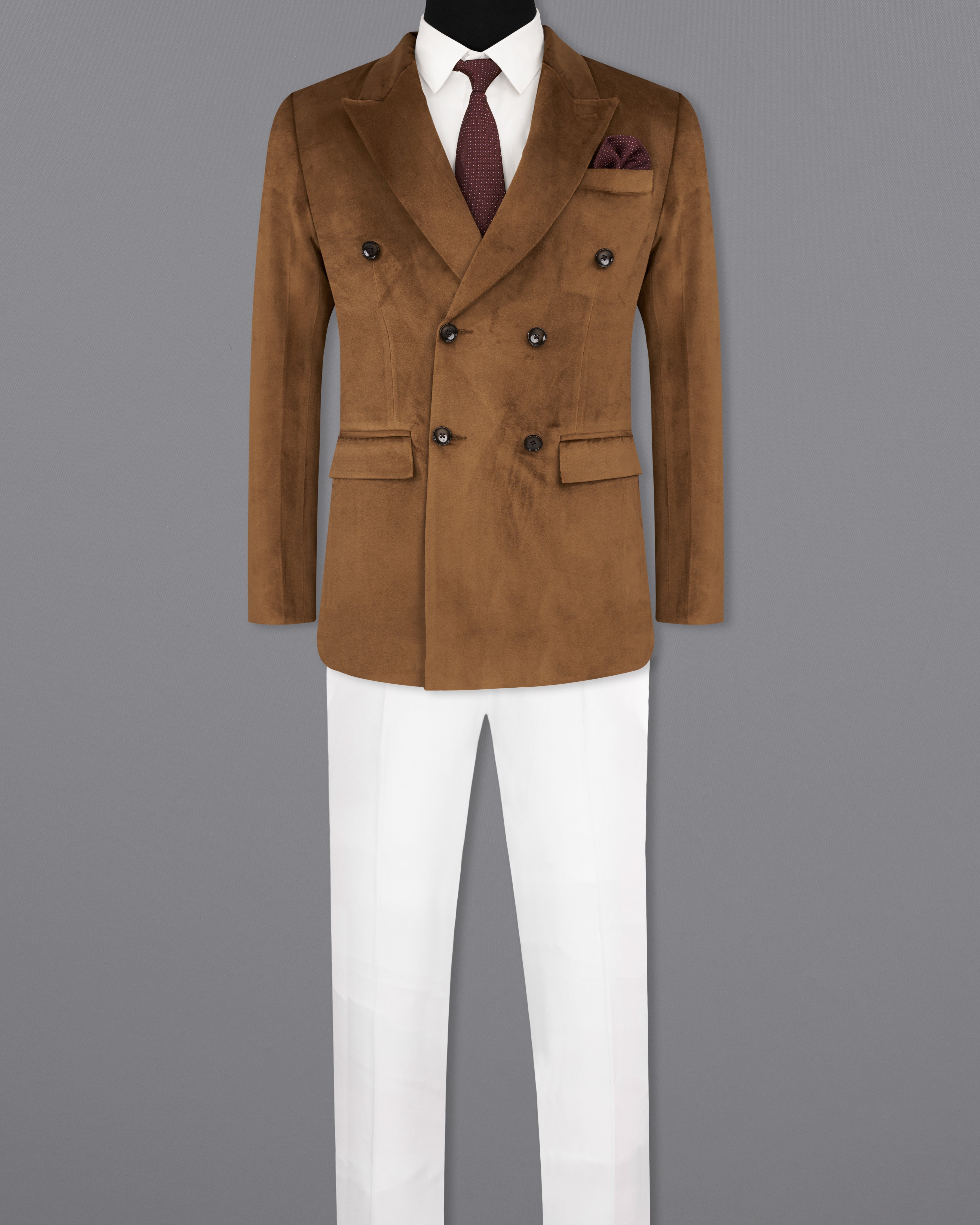 Nutmeg Brown Double Breasted Premium Velvet Designer Suit