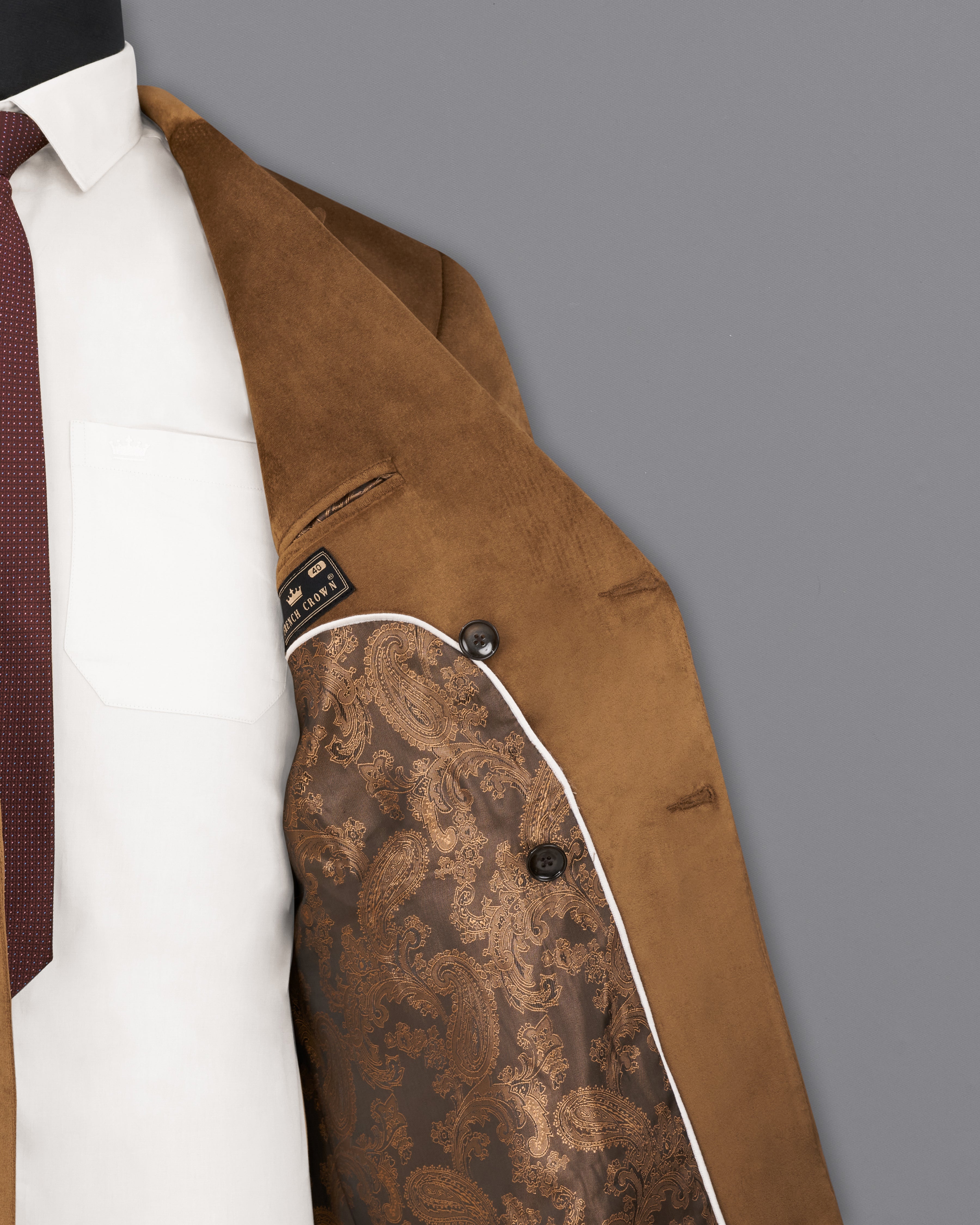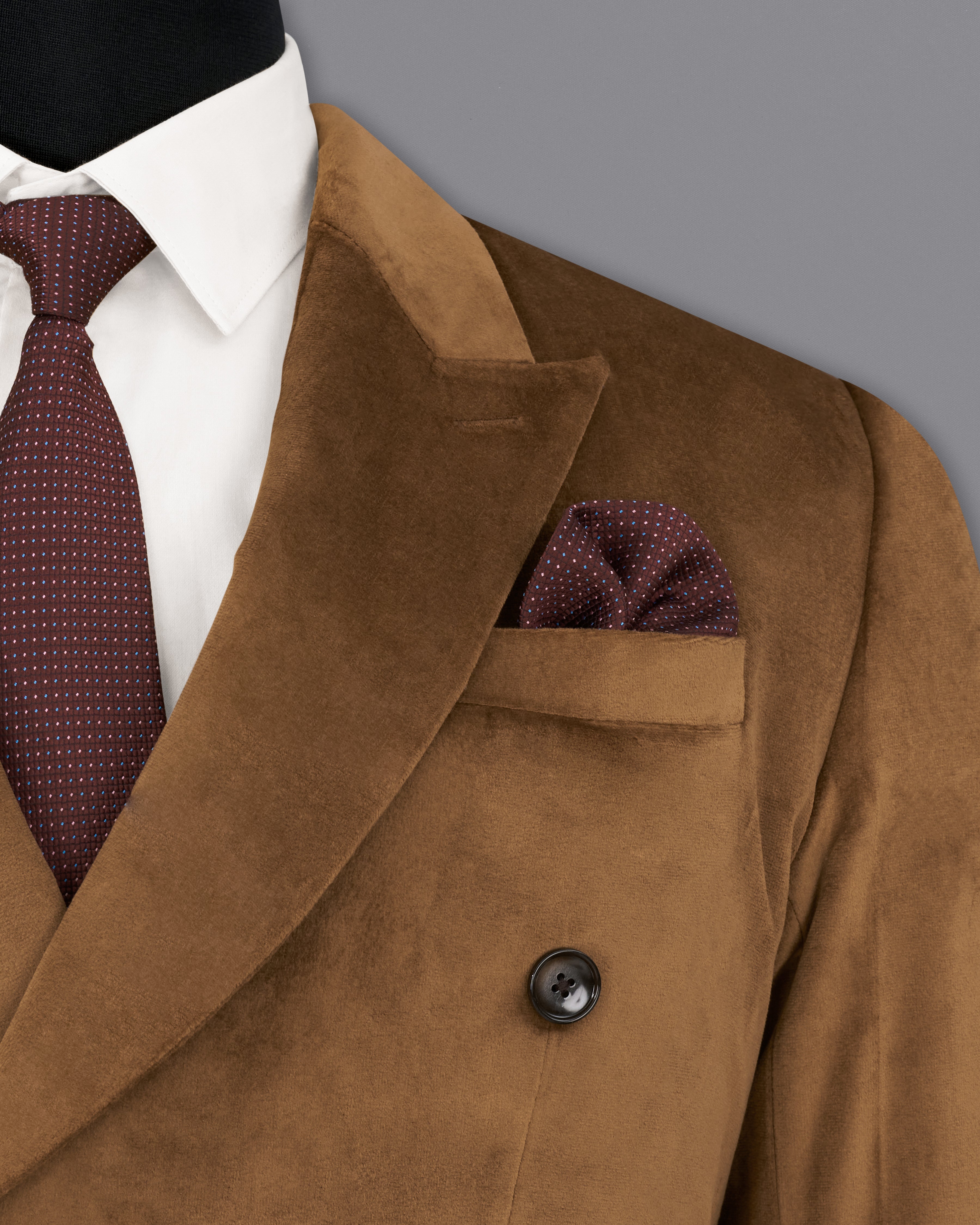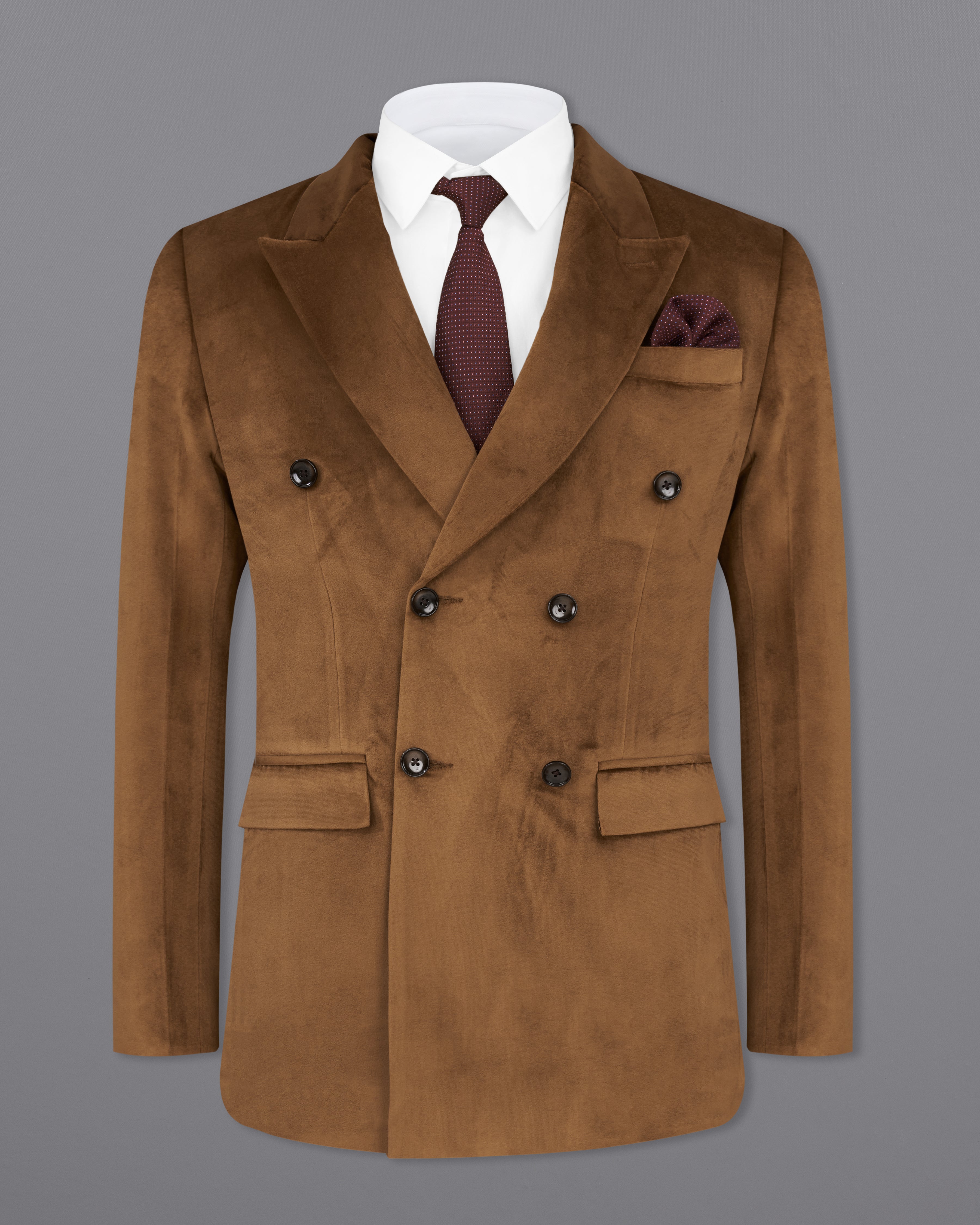 Nutmeg Brown Double Breasted Premium Velvet Designer Blazer