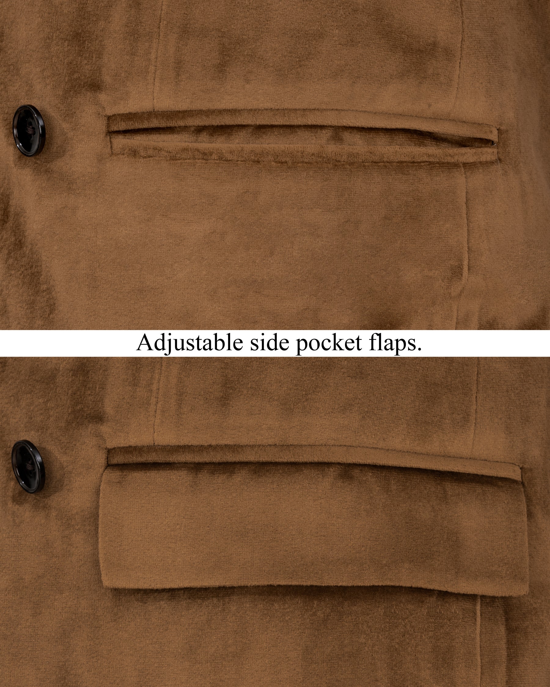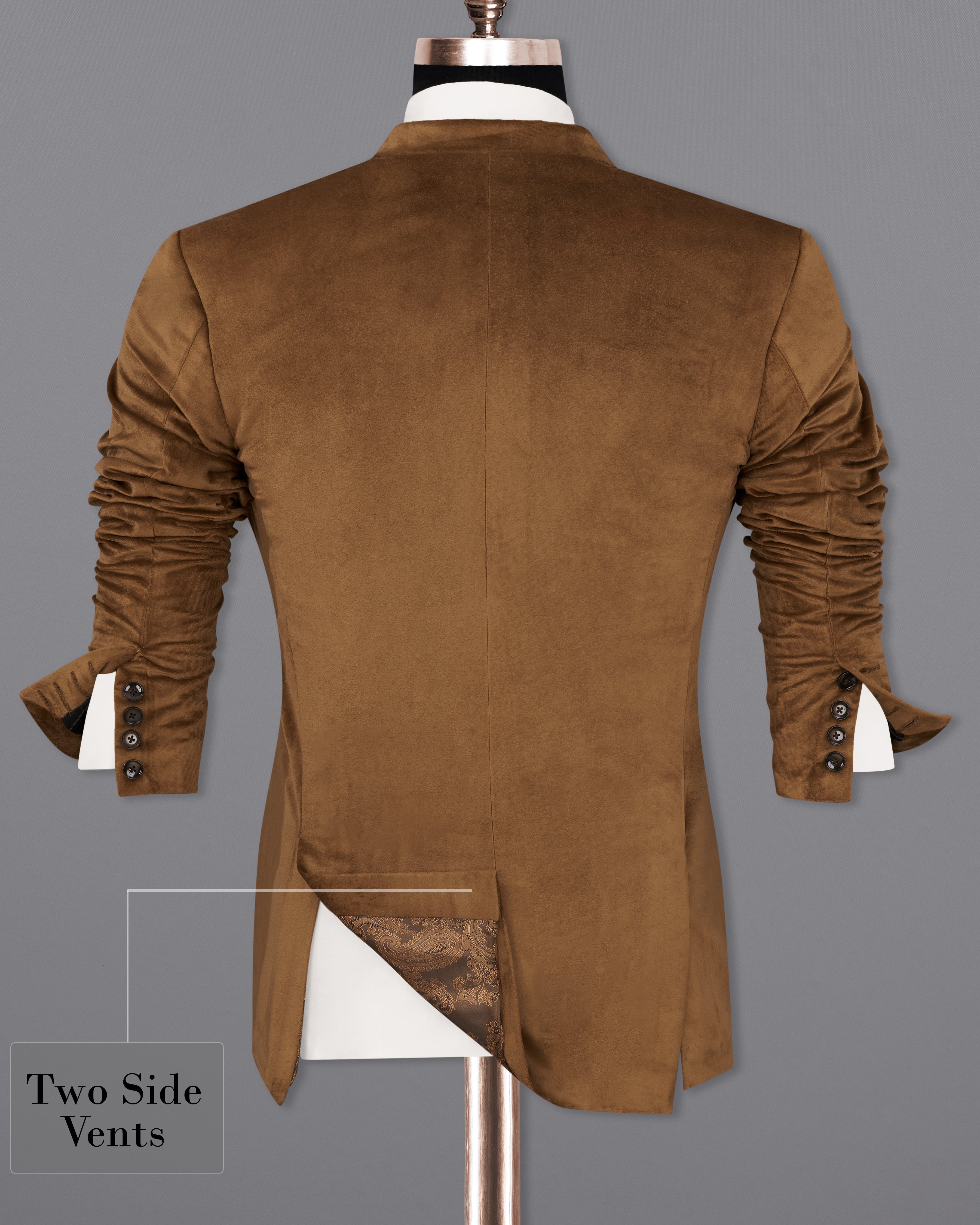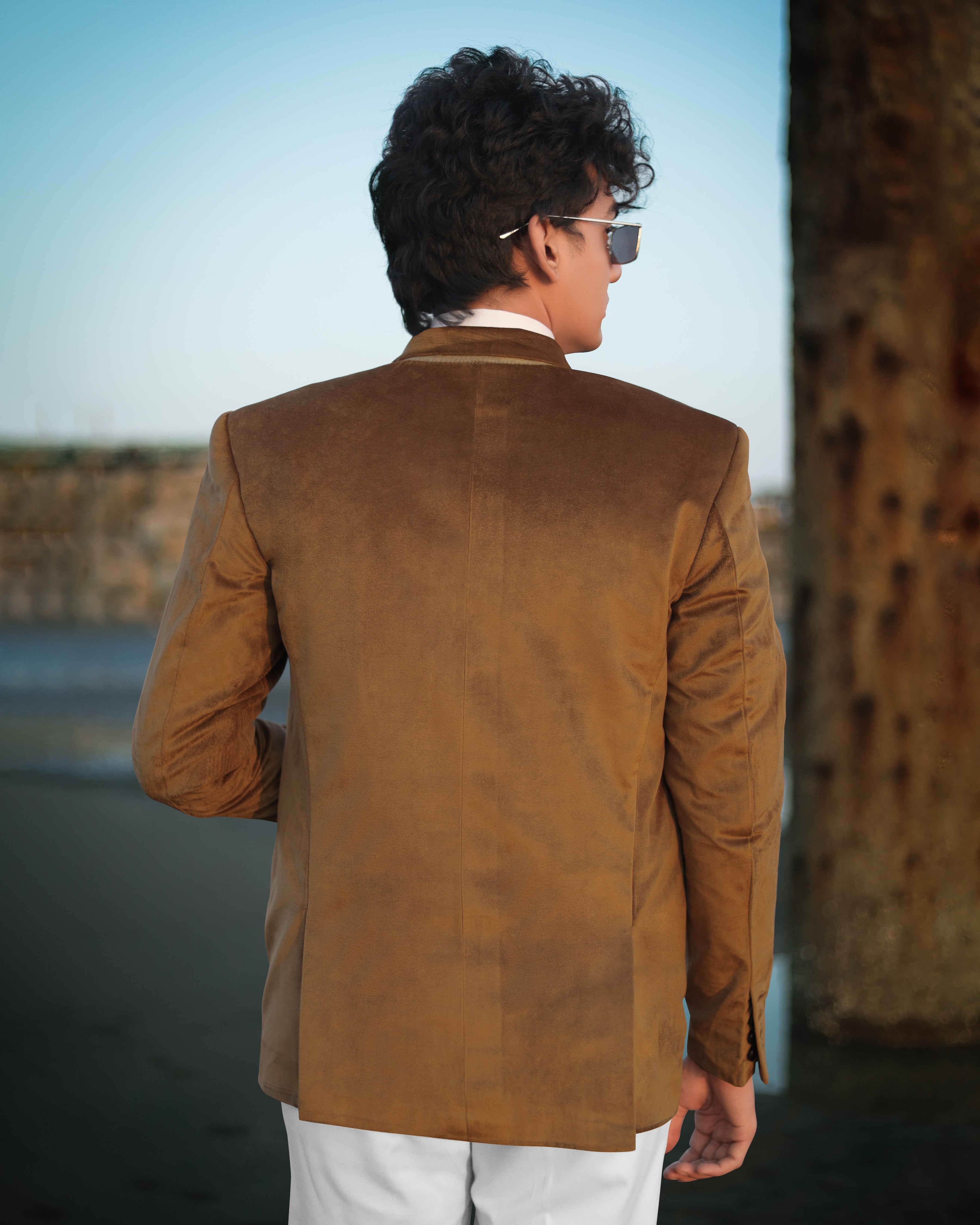 Nutmeg Brown Double Breasted Premium Velvet Designer Blazer