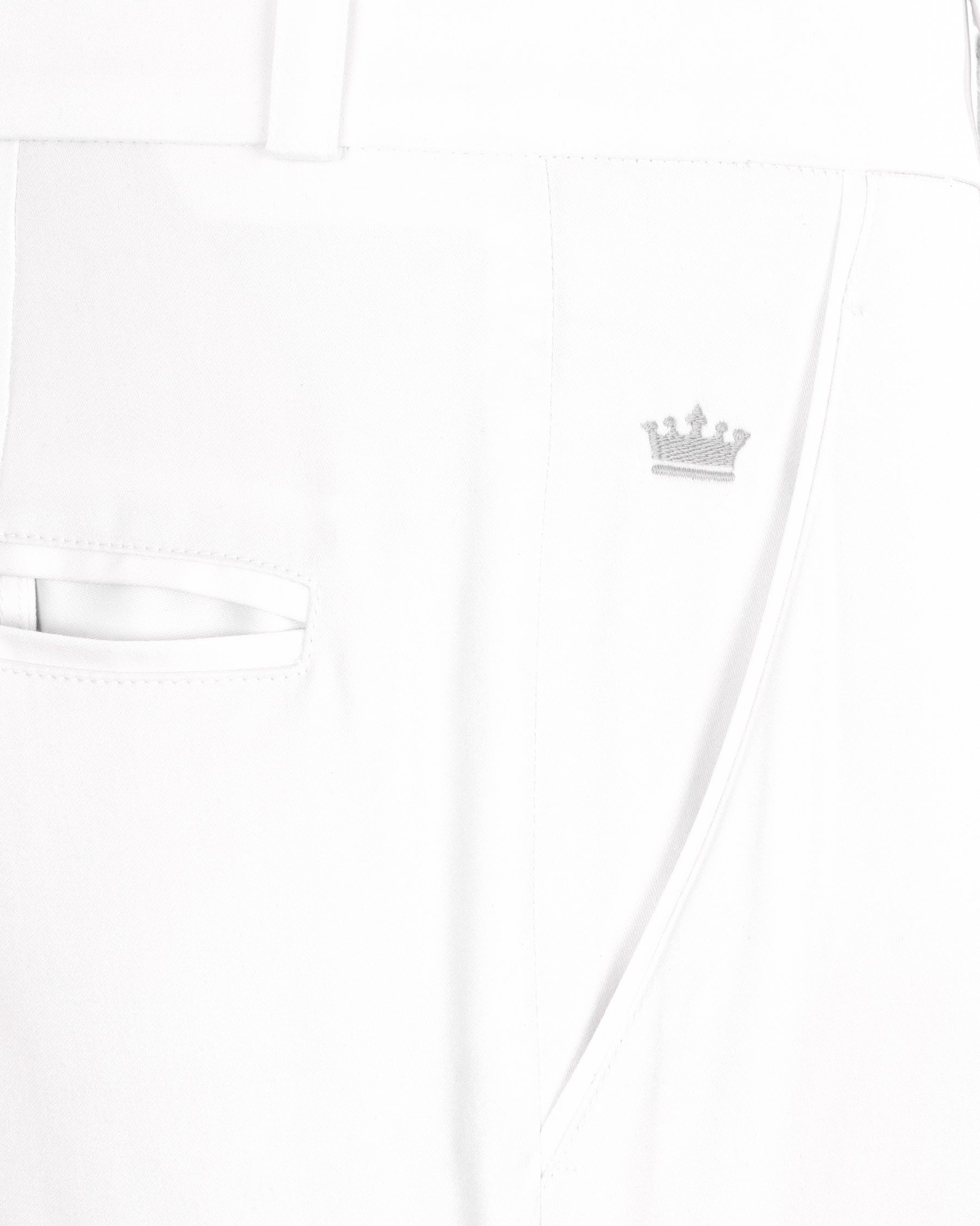 Bright White Stretchable Subtle Sheen Cross Placket Bandhgala/Mandarin SuitBright White Stretchable Subtle Sheen Cross Placket Bandhgala/Mandarin Suit