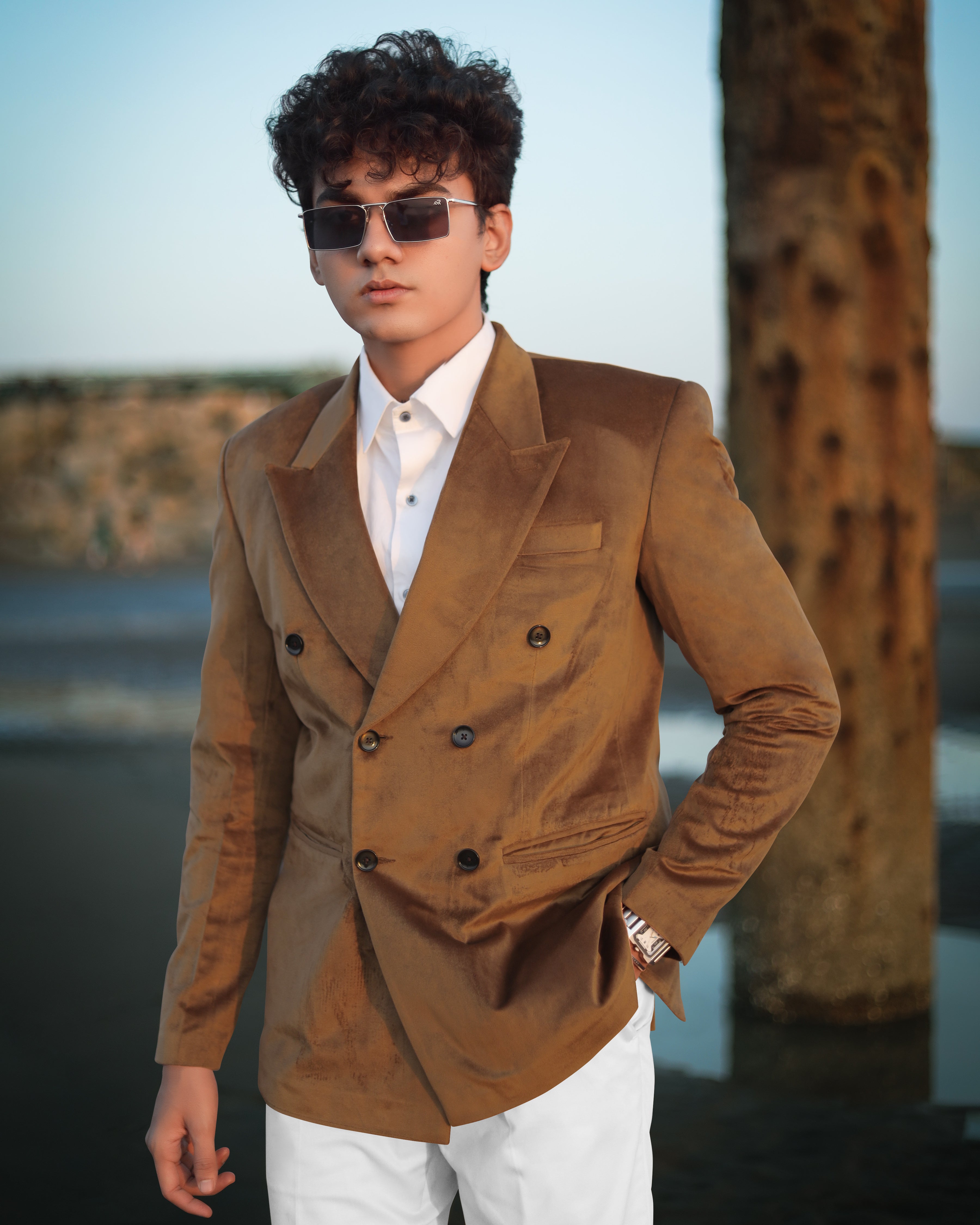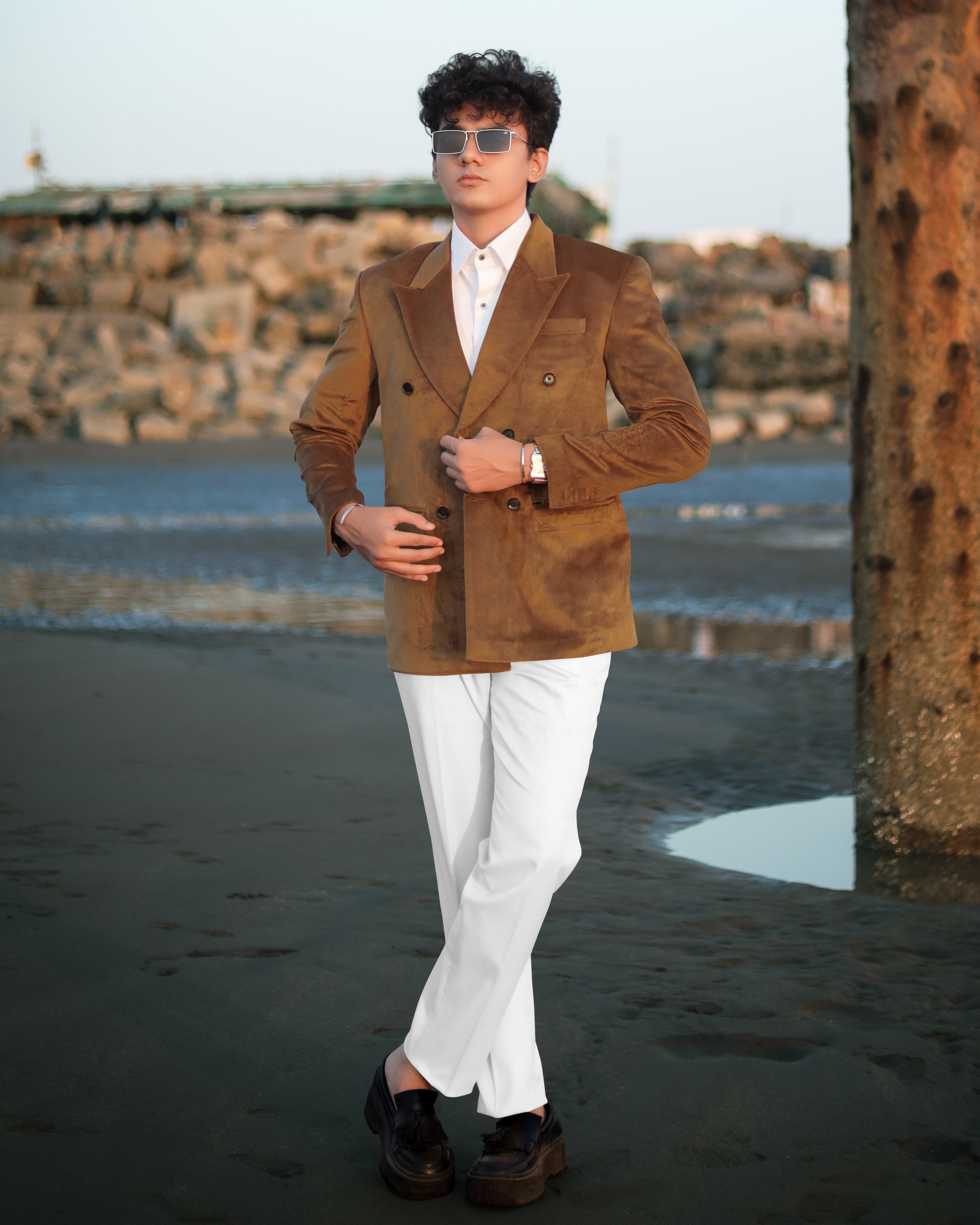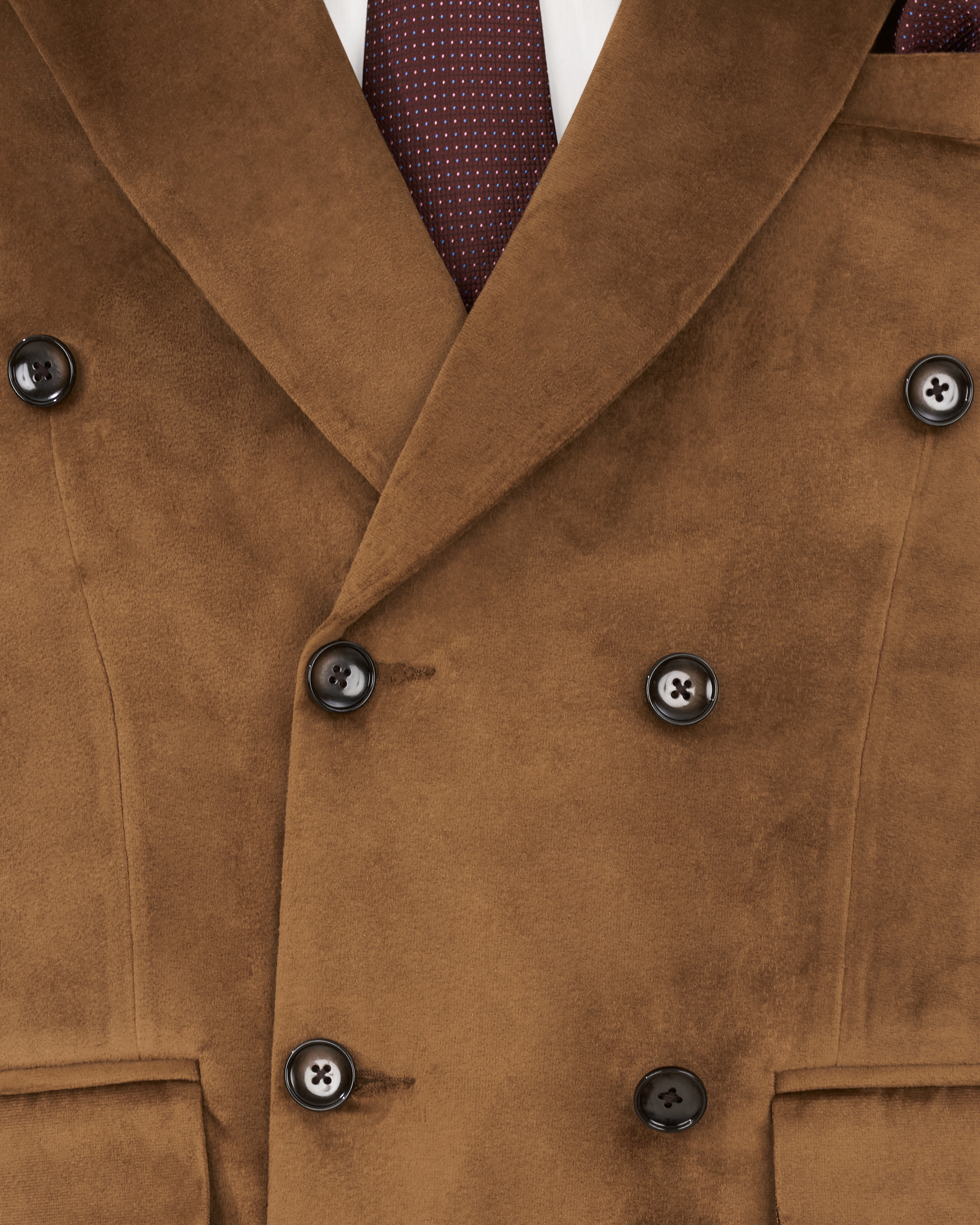 Nutmeg Brown Double Breasted Premium Velvet Designer BlazerNutmeg Brown Double Breasted Premium Velvet Designer Blazer
