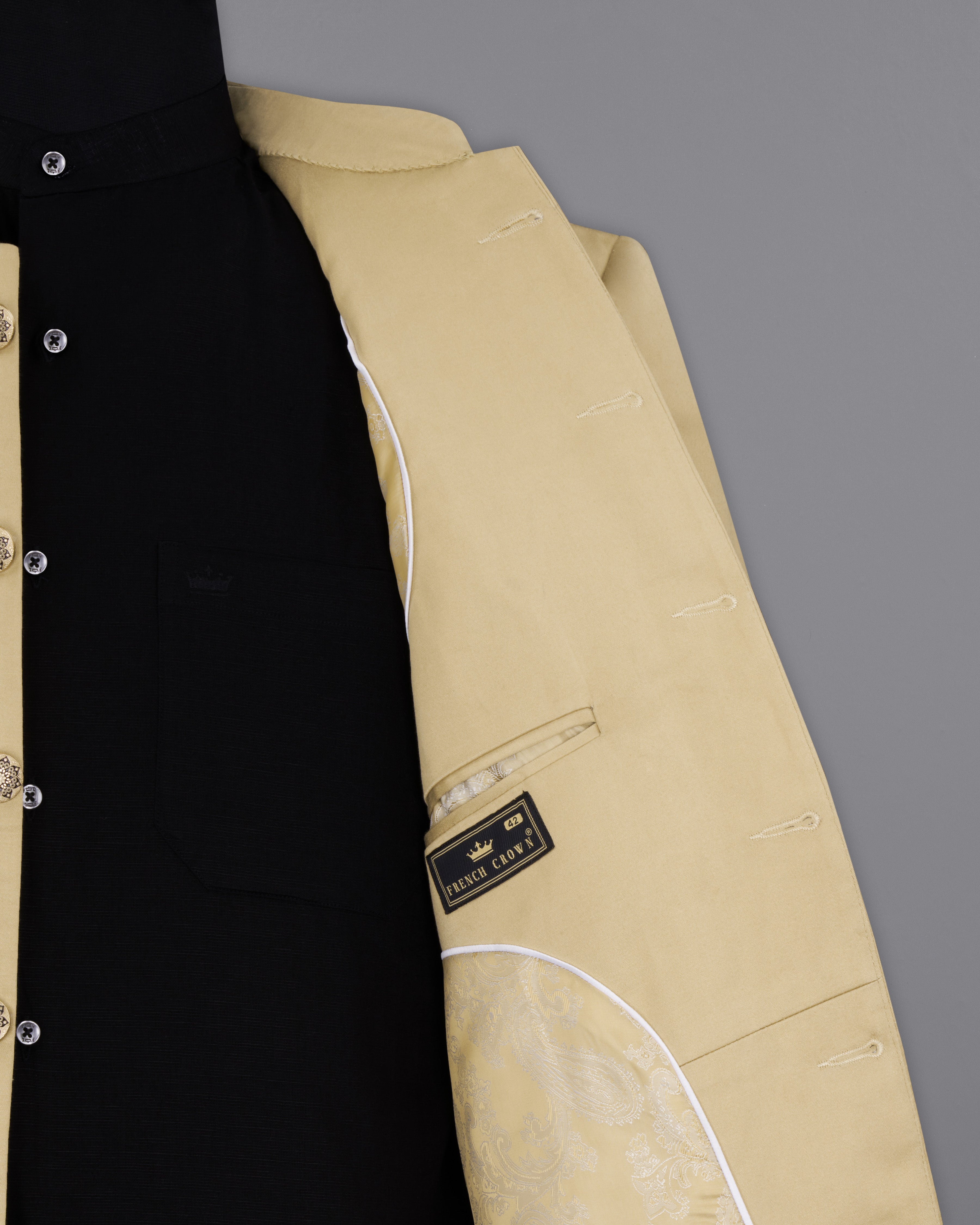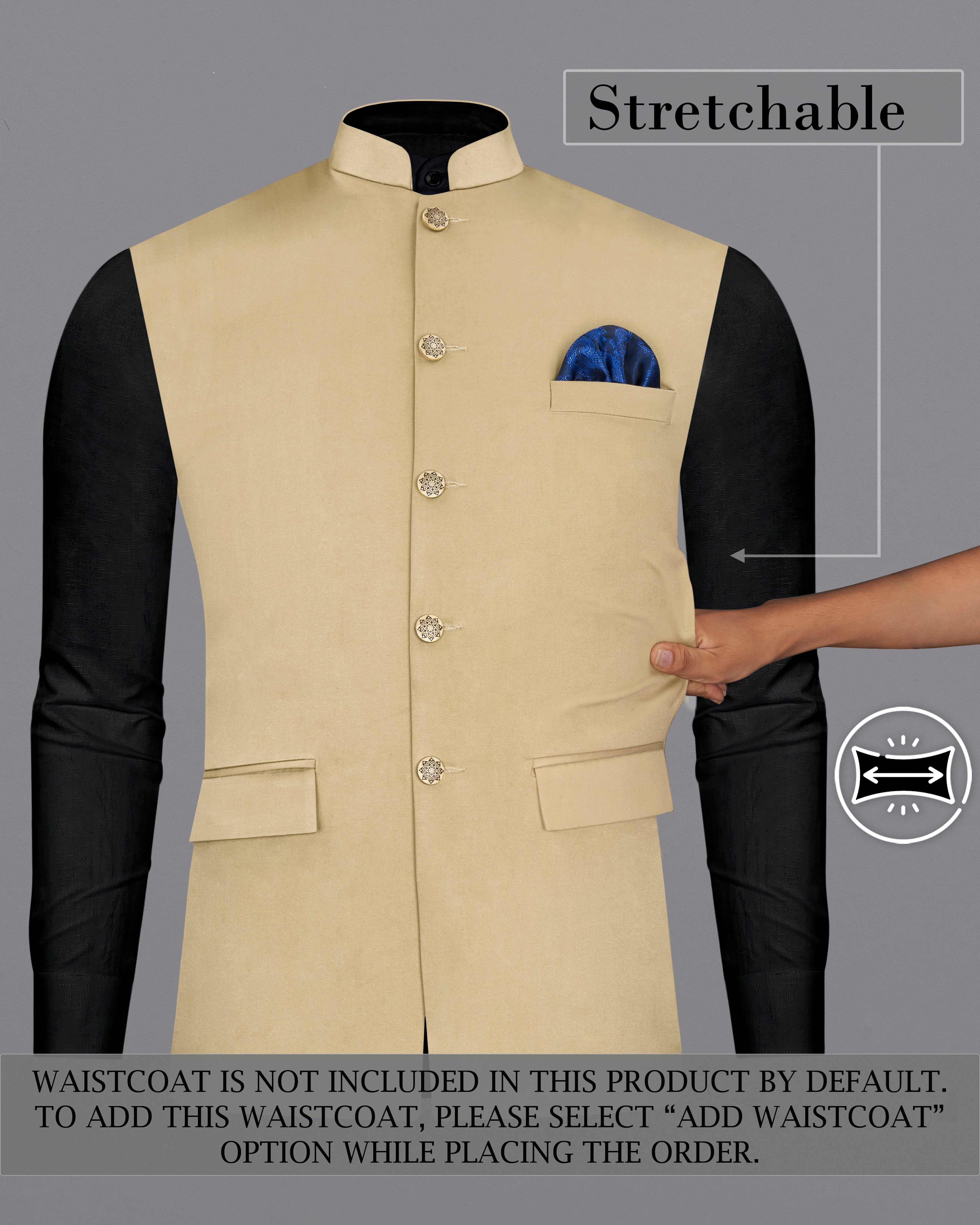 Pavlova Cream Solid Stretchable Premium Cotton Bandhgala traveler Suit Sale price$149.10 USD Regular price$375 USD60%