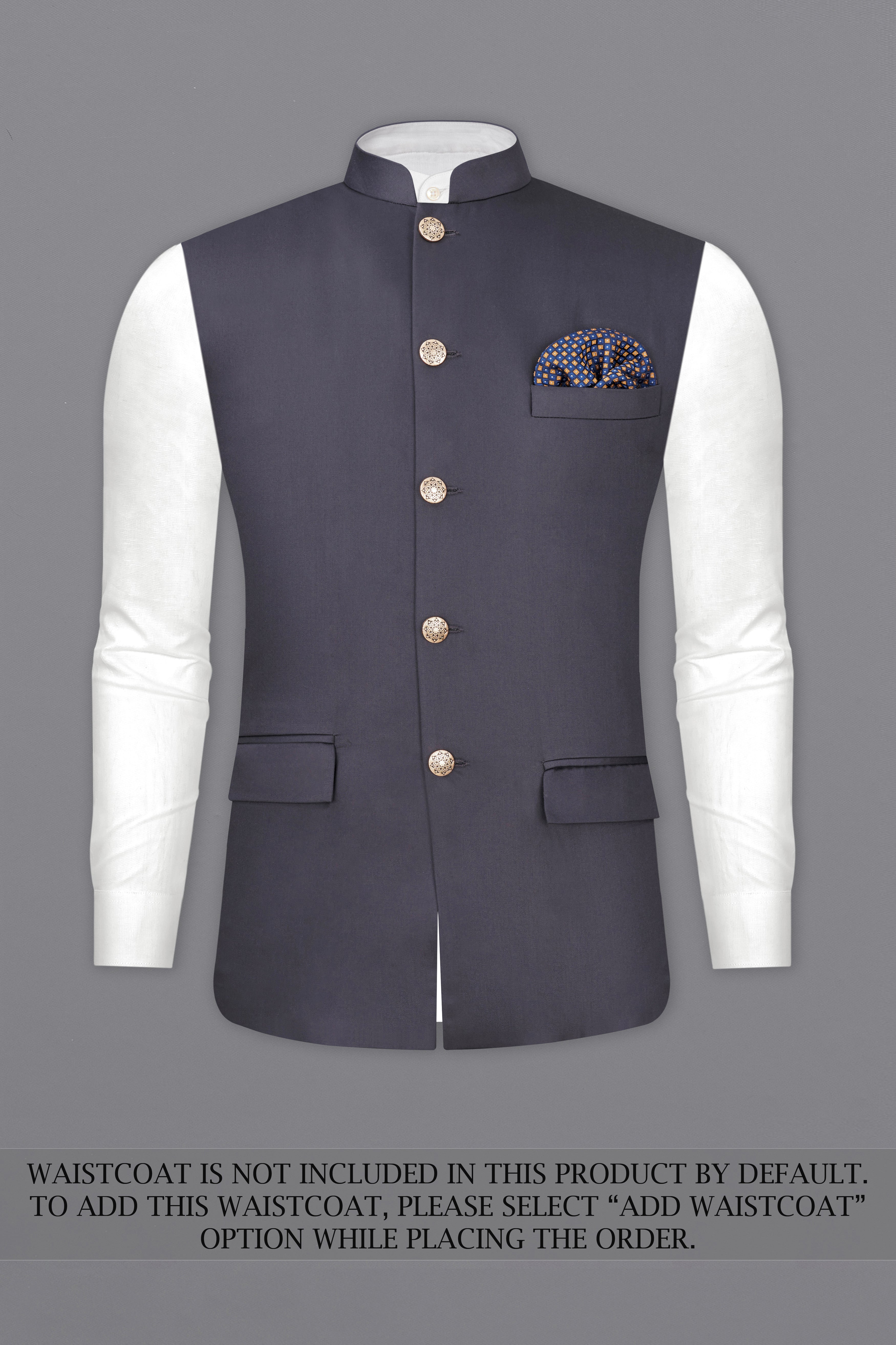 Make a bold statement on your next premium occasion with this Bandhgala Suit from French Crown. This trendy suit features a sleek metallic button closure and a stylish design that's sure to turn heads. Perfect for weddings and other special occasions, this suit is a must-have for any fashion-forward gentleman looking to elevate his style. So don't settle for ordinary, stand out in the crowd with this solid Bandhgala Suit.
