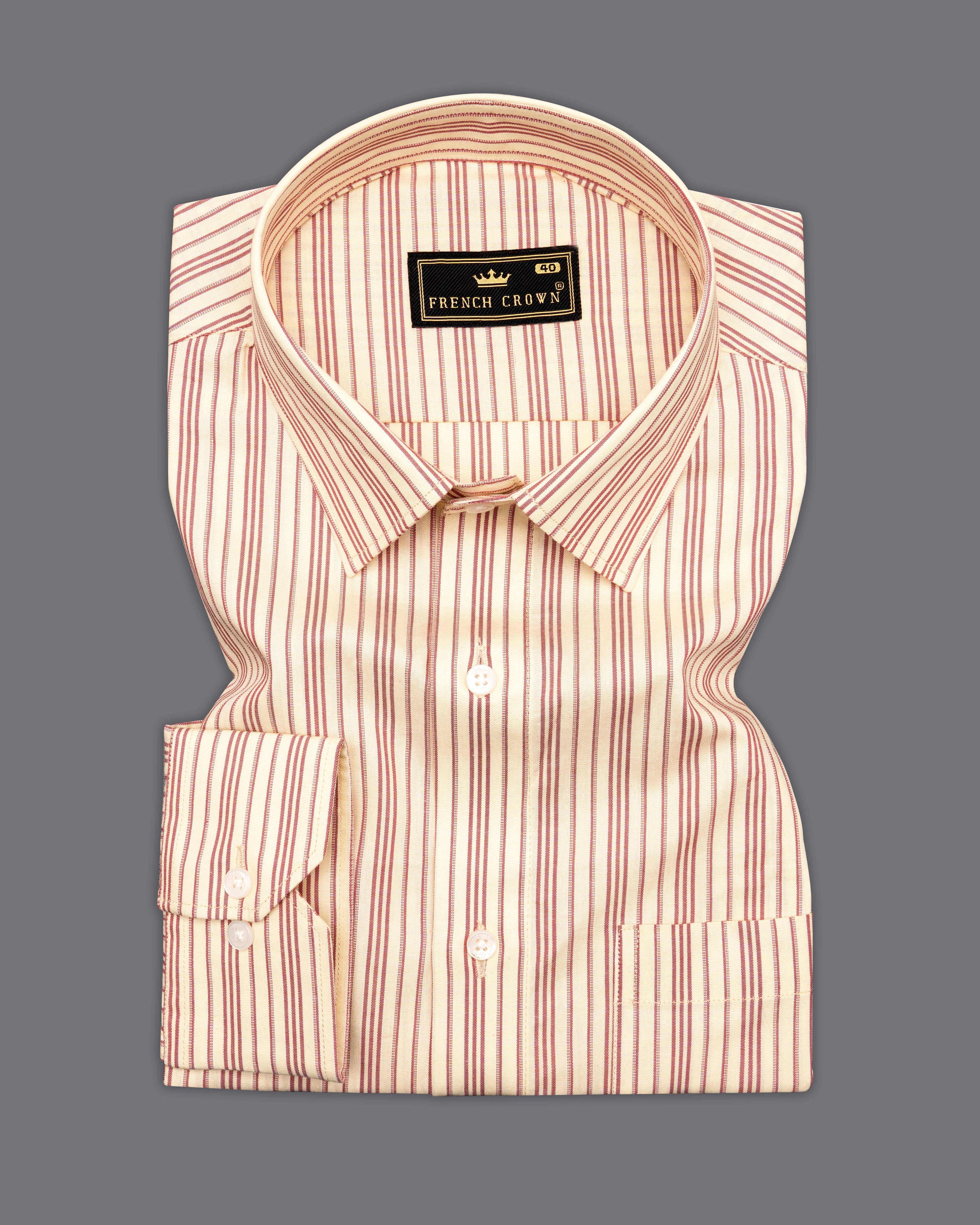 Tequila Cream with Sanguine Red Striped Premium Cotton Shirt
